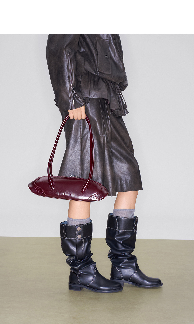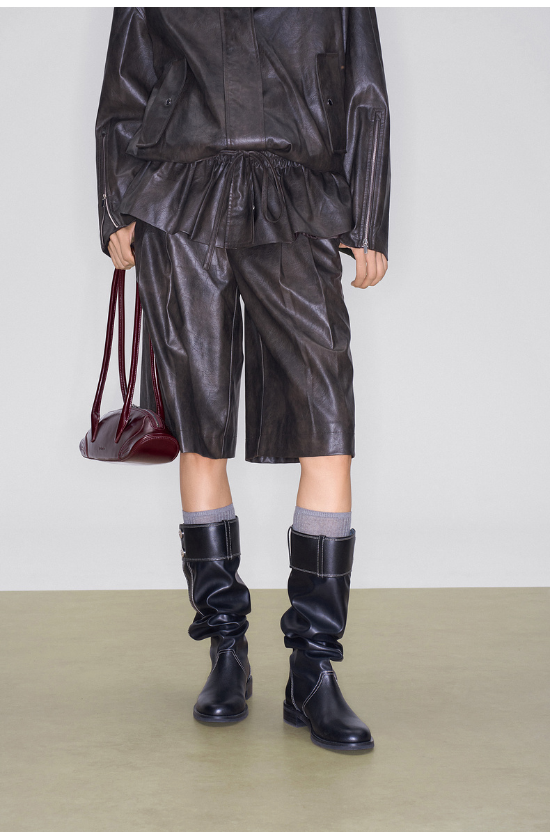 [捡漏价]lost in echo 设计师品牌尖头假两件拼接中筒靴骑士靴长靴膝下靴