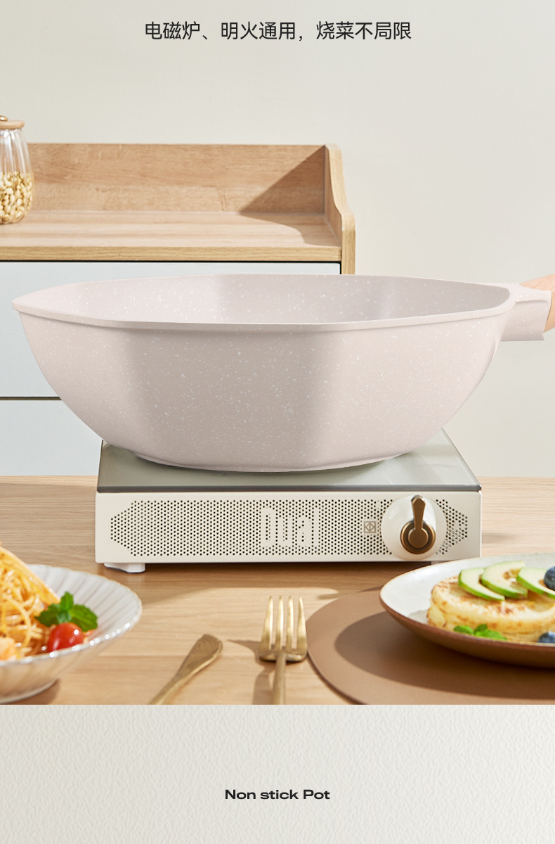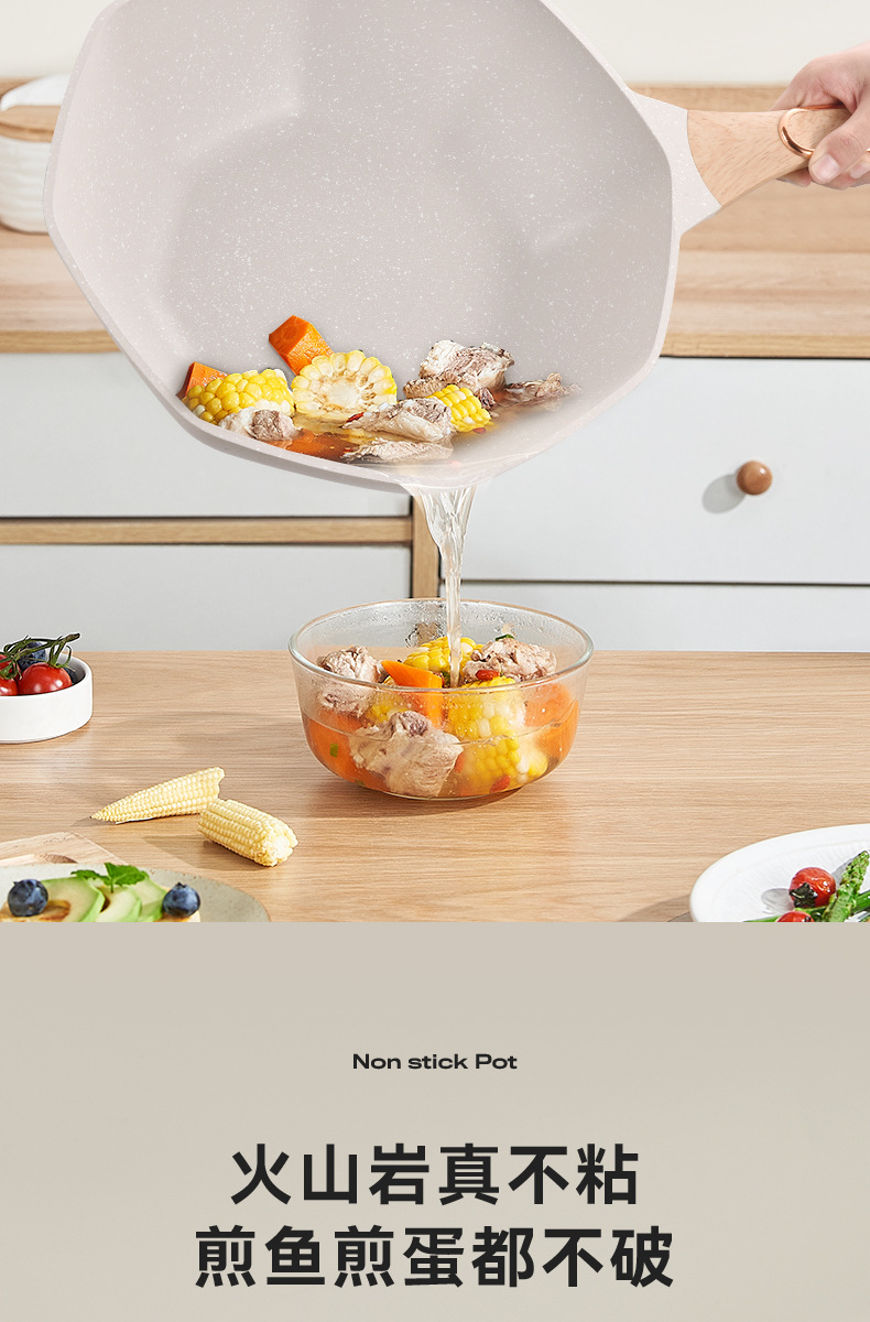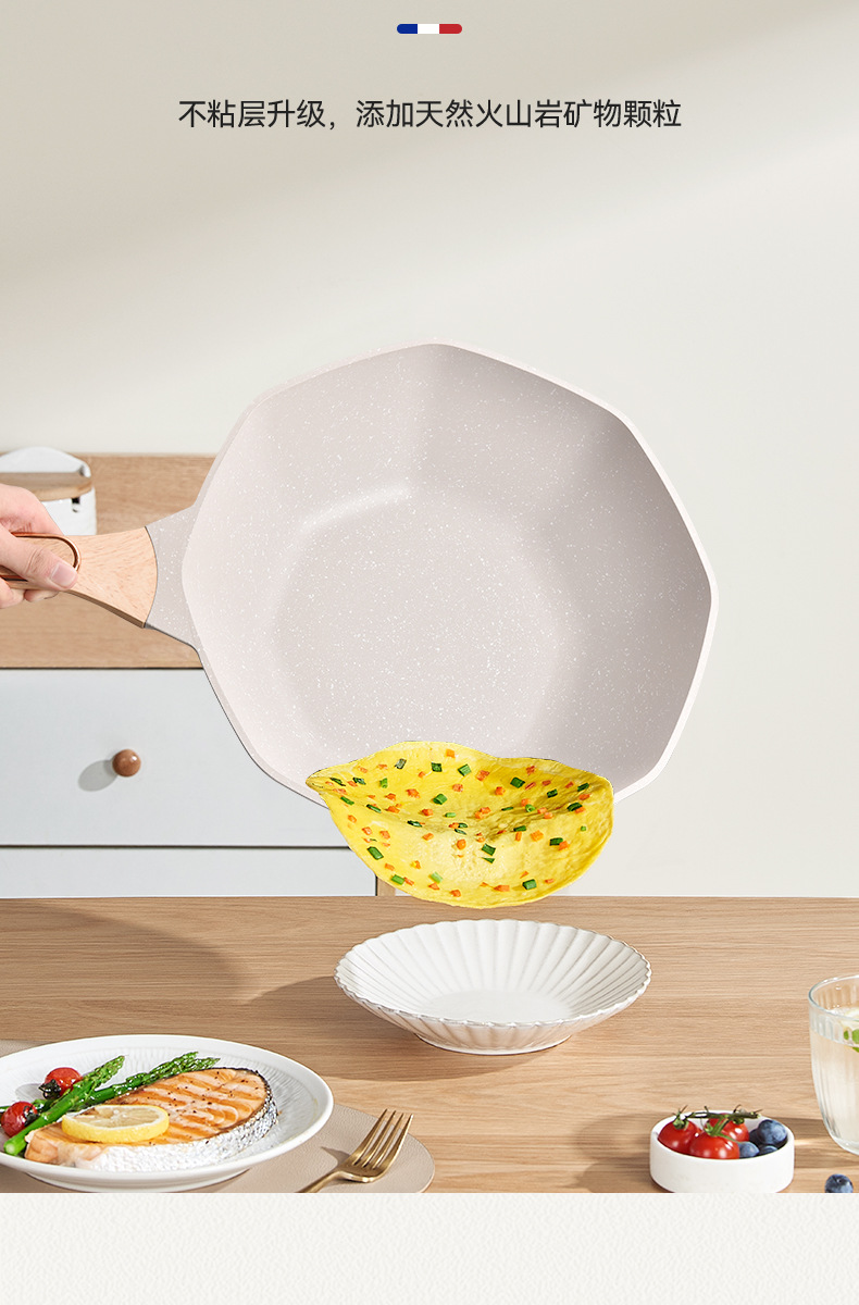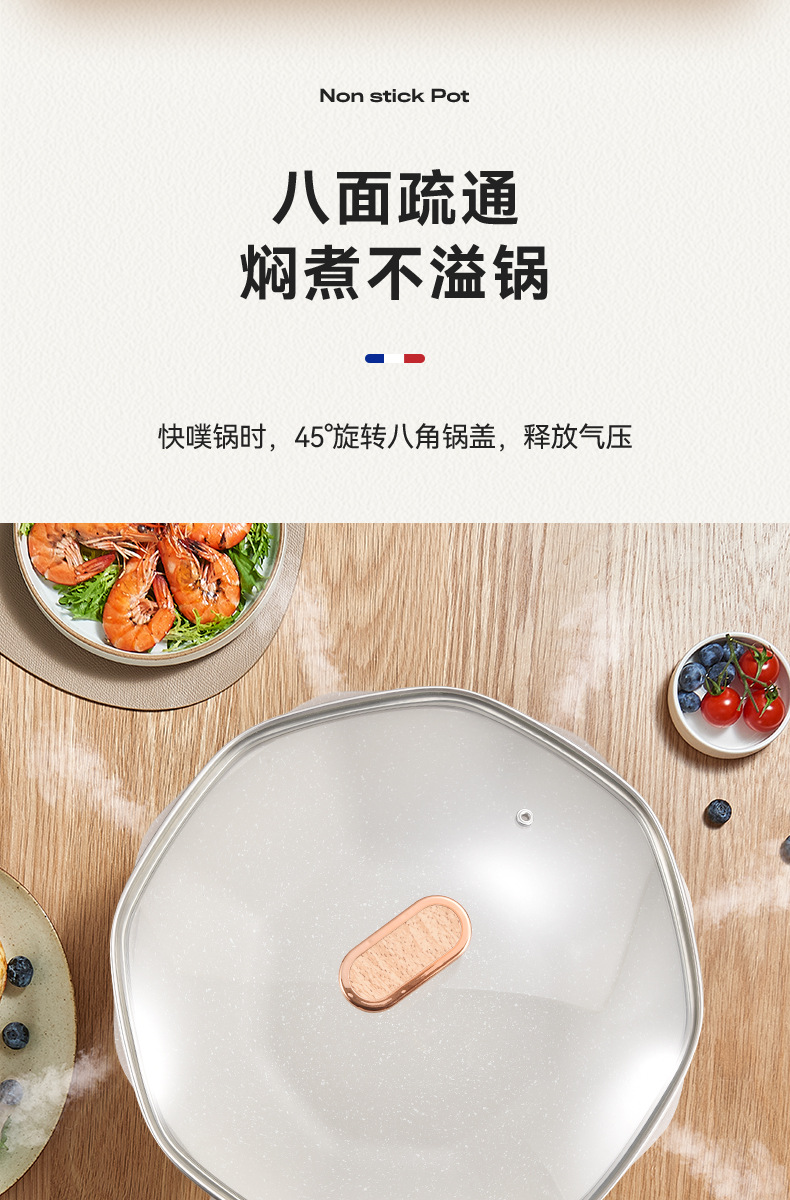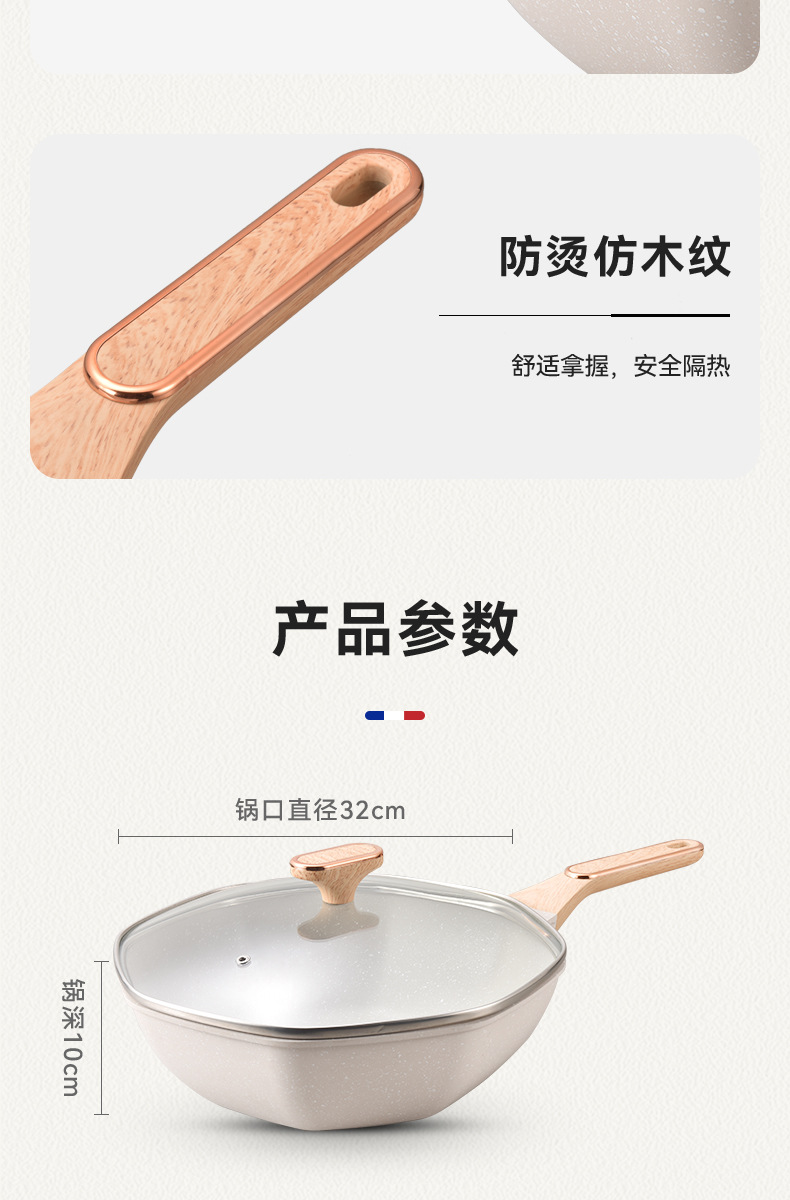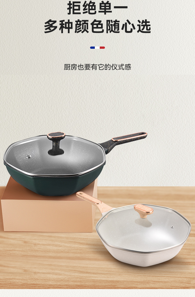 不粘锅麦饭石八角锅 家用厨房炒菜锅平底锅电磁炉、明火通用炒锅