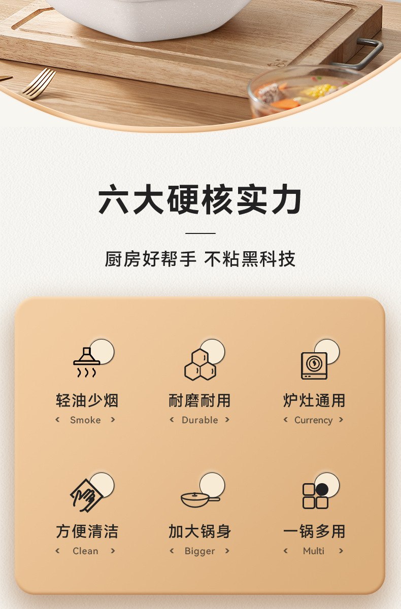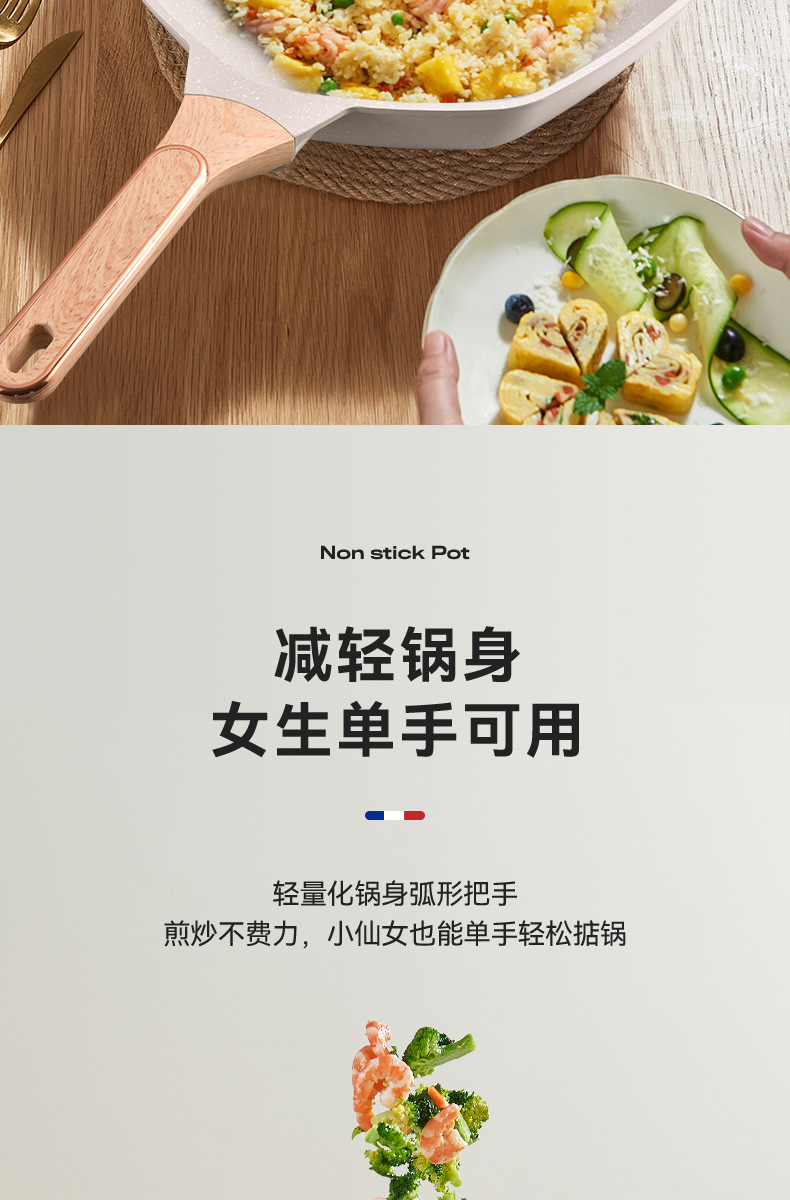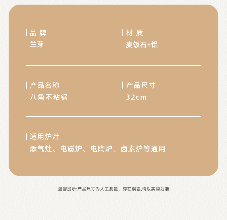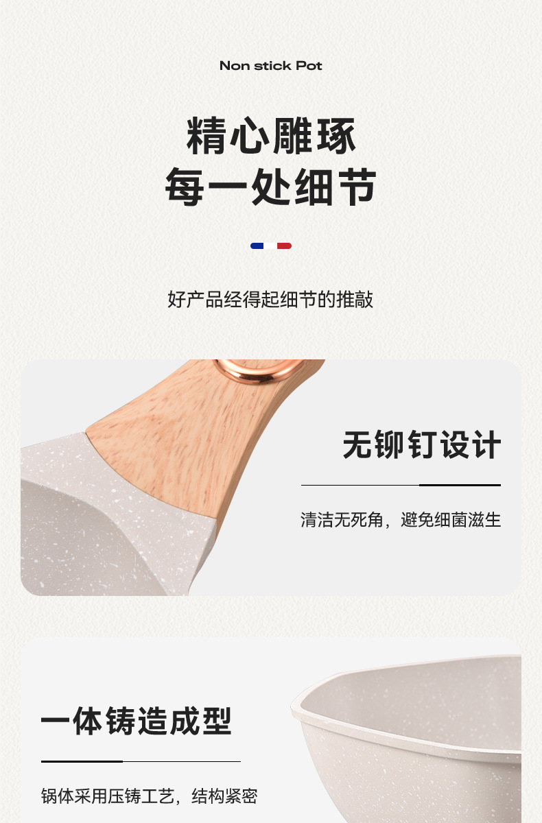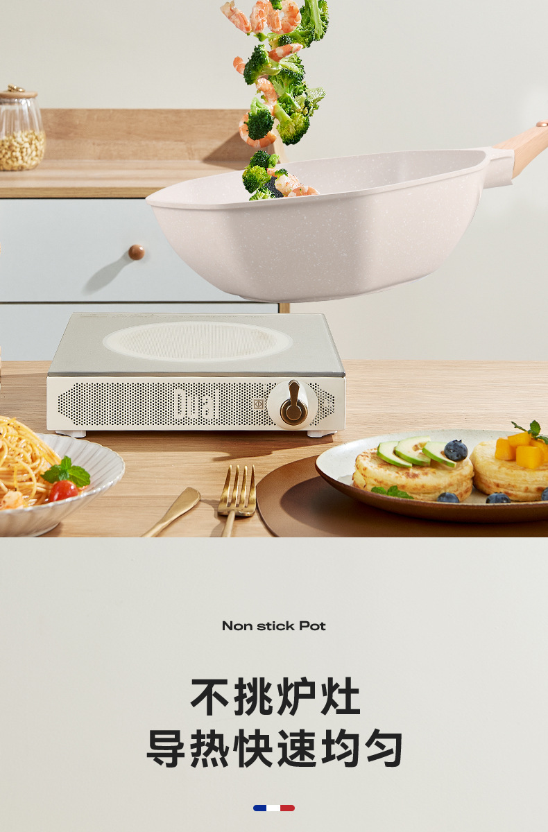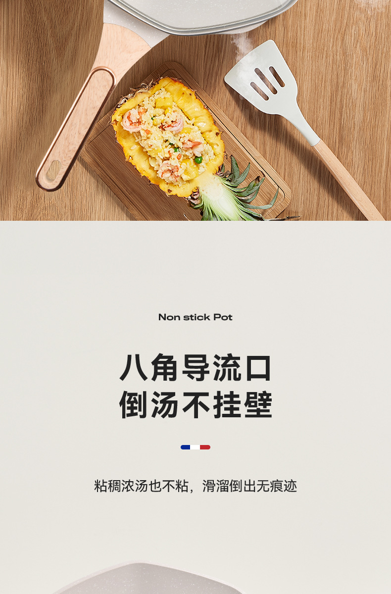 不粘锅麦饭石八角锅 家用厨房炒菜锅平底锅电磁炉、明火通用炒锅