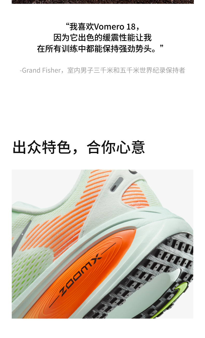 耐克小迈柔公路专业跑步鞋【Nike vomero18代跑鞋男女同款】轻量缓震 所有跑者都适合的鞋