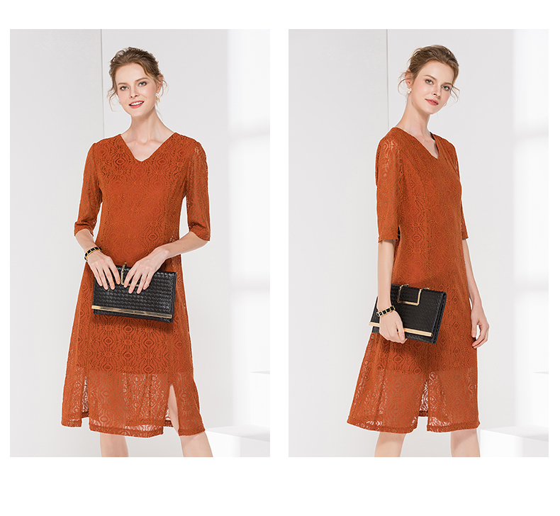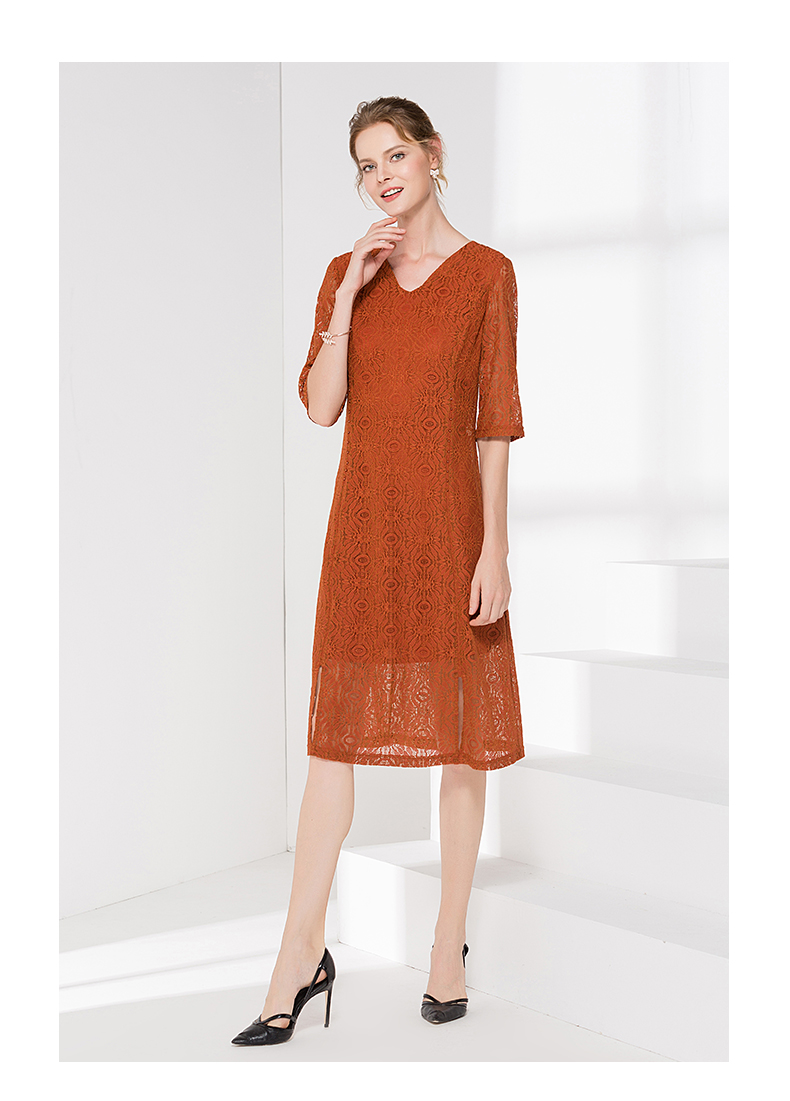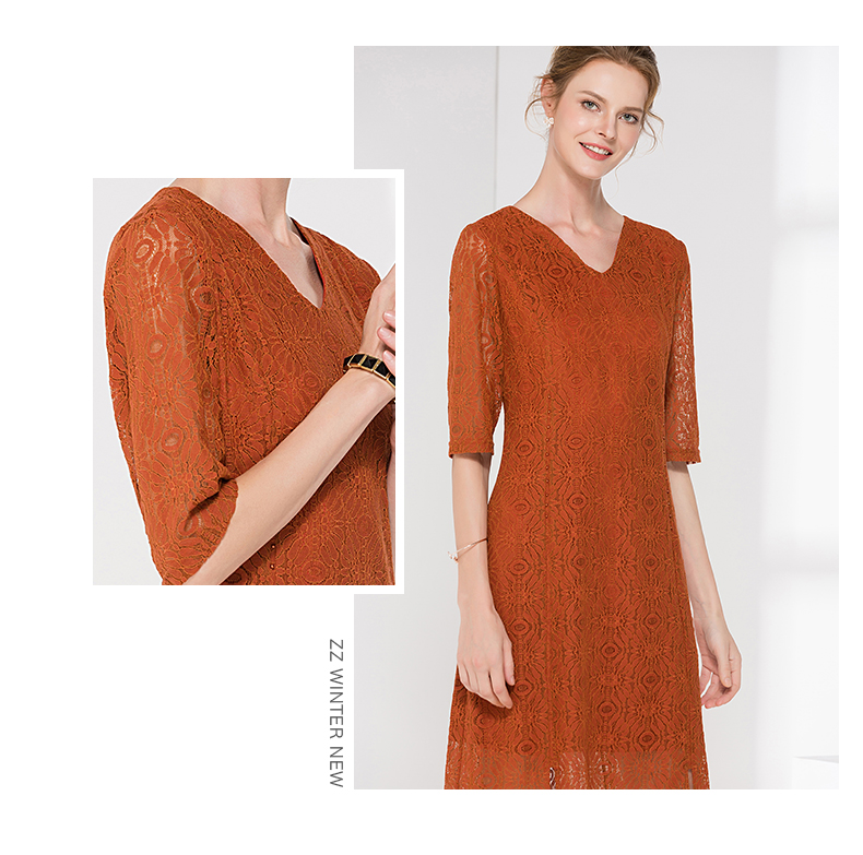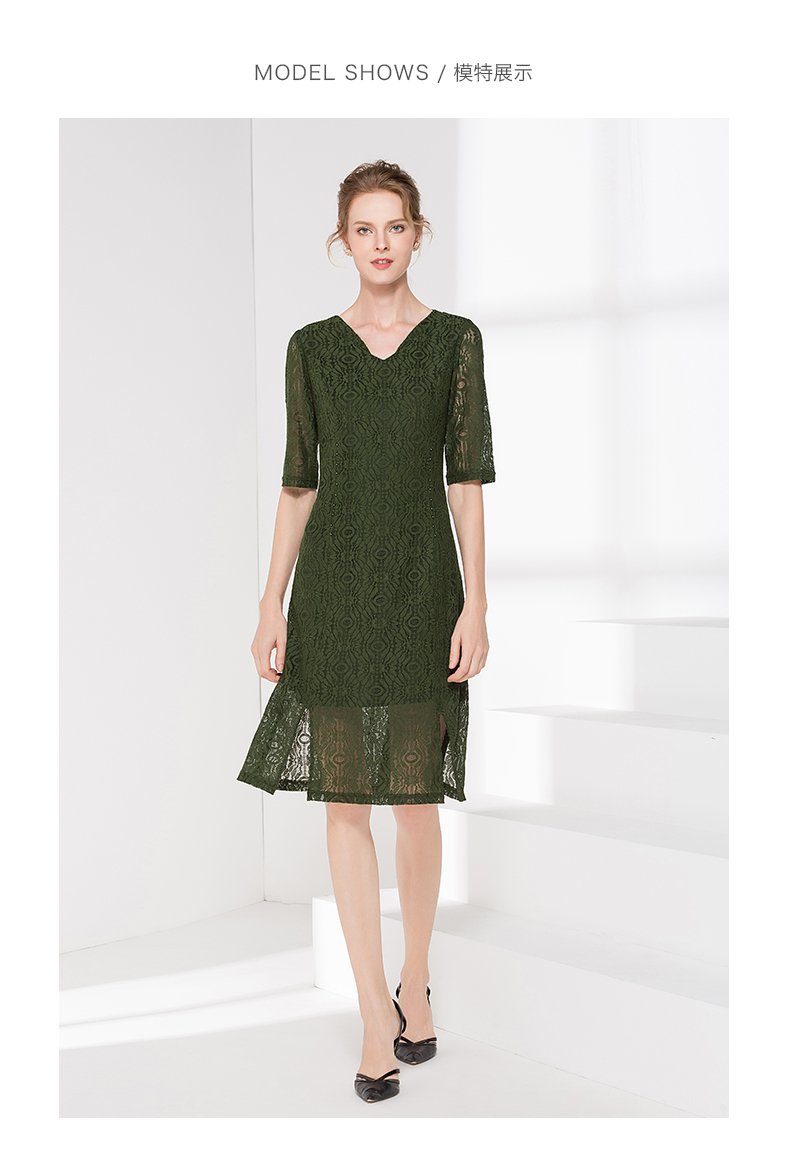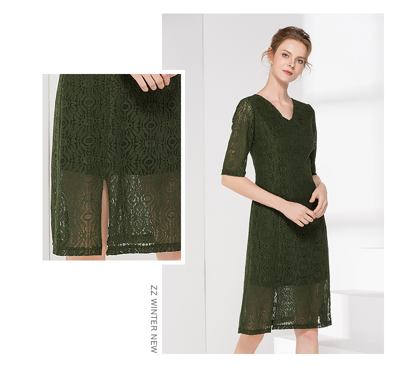 佐尔美新品秋季上新女士修身显瘦纯色气质镂空连衣裙E81LL06