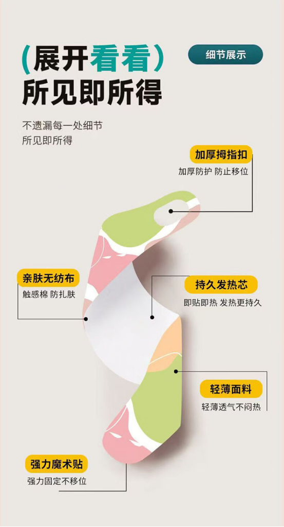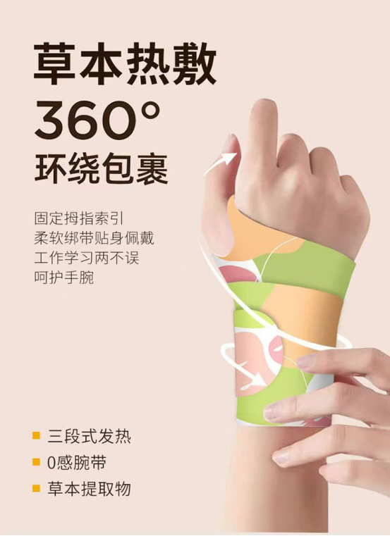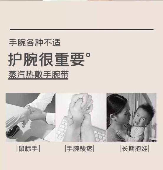 只要出现了手腕疼痛都需要及时养护 它采用先进的蒸汽热敷技术,打开包装 轻轻一贴 就能感受到温暖的蒸汽包围着手腕 仿佛有一双温暖的手在呵护着