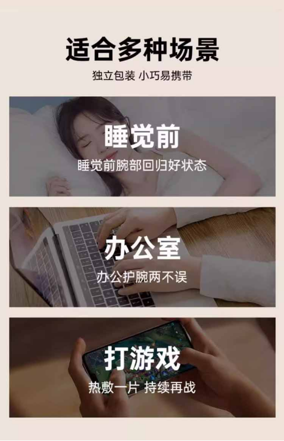 不仅功能强大,使用场景也很多! 无论长时间打字工作,还是游戏、运动健身都能使用。 对于咱们这种频繁、持久使用手腕的人来说,简直就是救命稻草!!