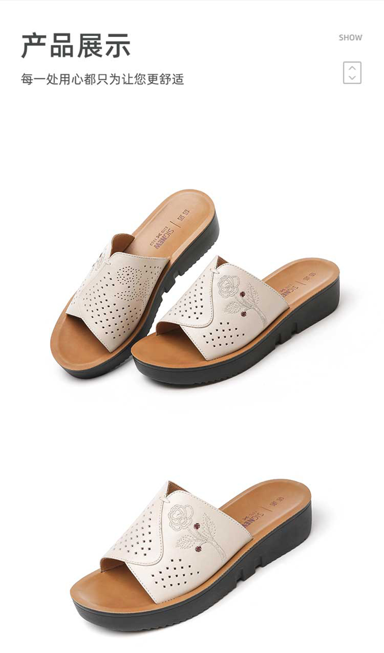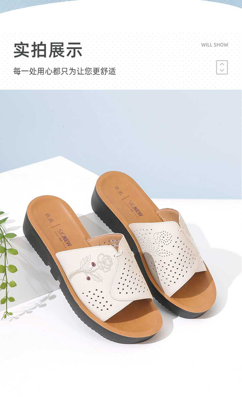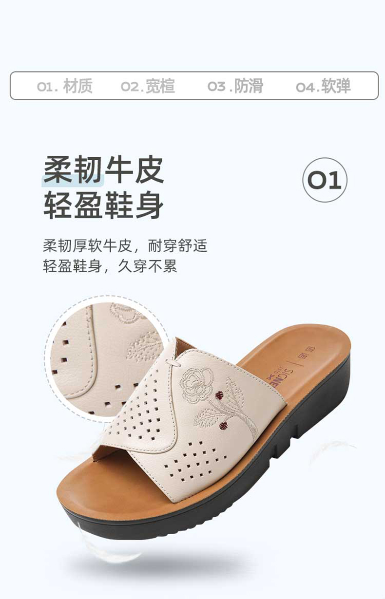 信诺真皮坡跟单鞋2025新款春季软底女鞋中老年通勤妈妈鞋大码皮鞋5C7832-82