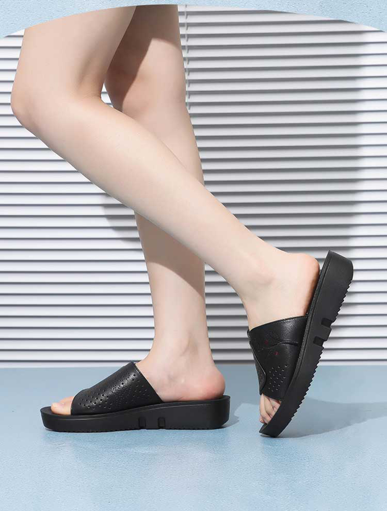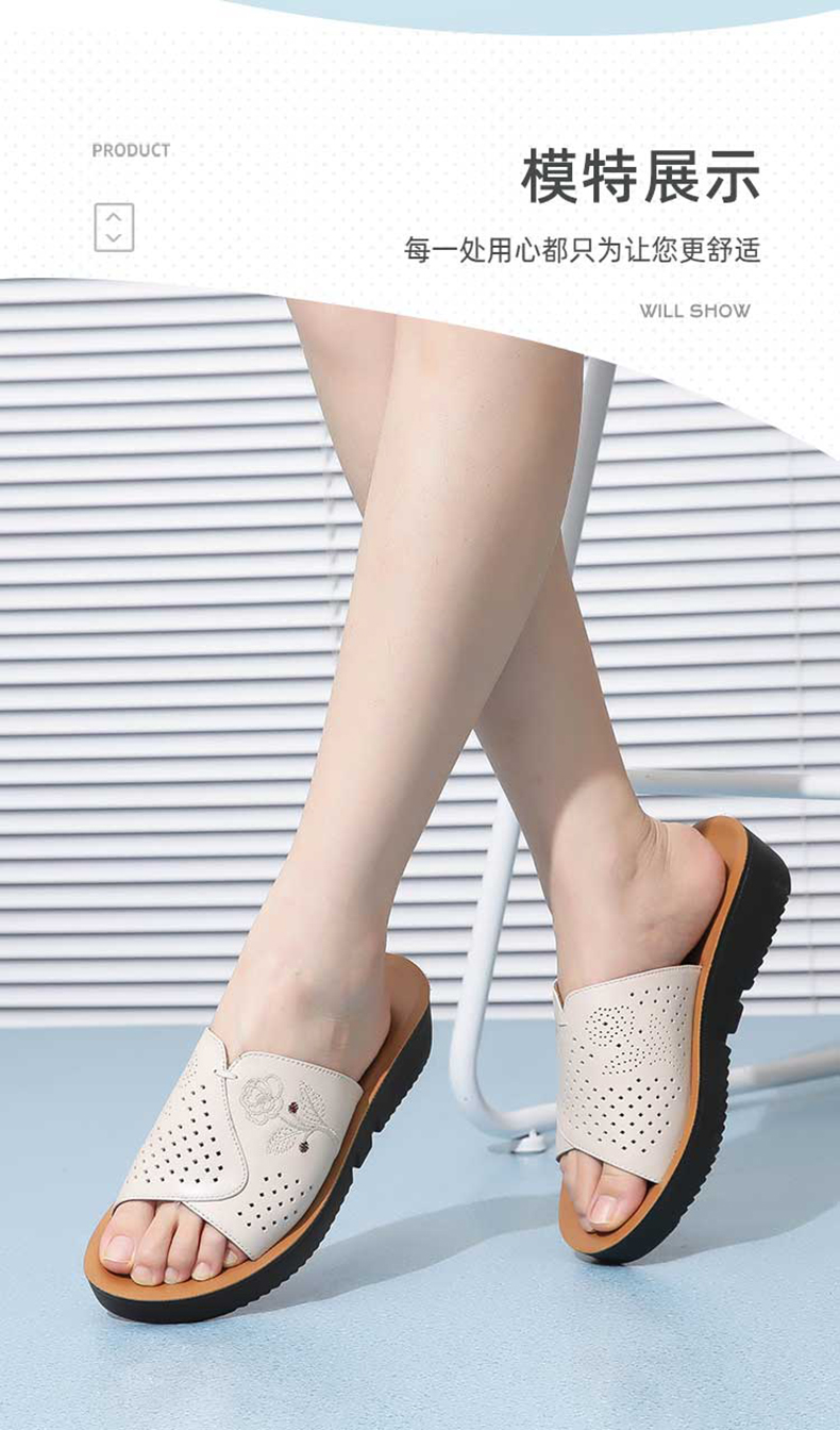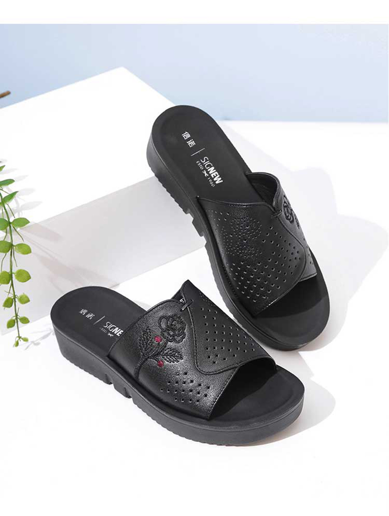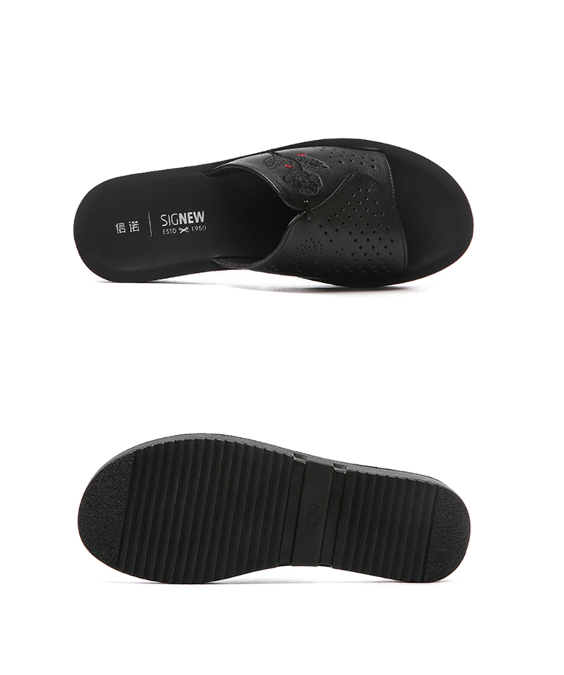 信诺真皮坡跟单鞋2025新款春季软底女鞋中老年通勤妈妈鞋大码皮鞋5C7832-82