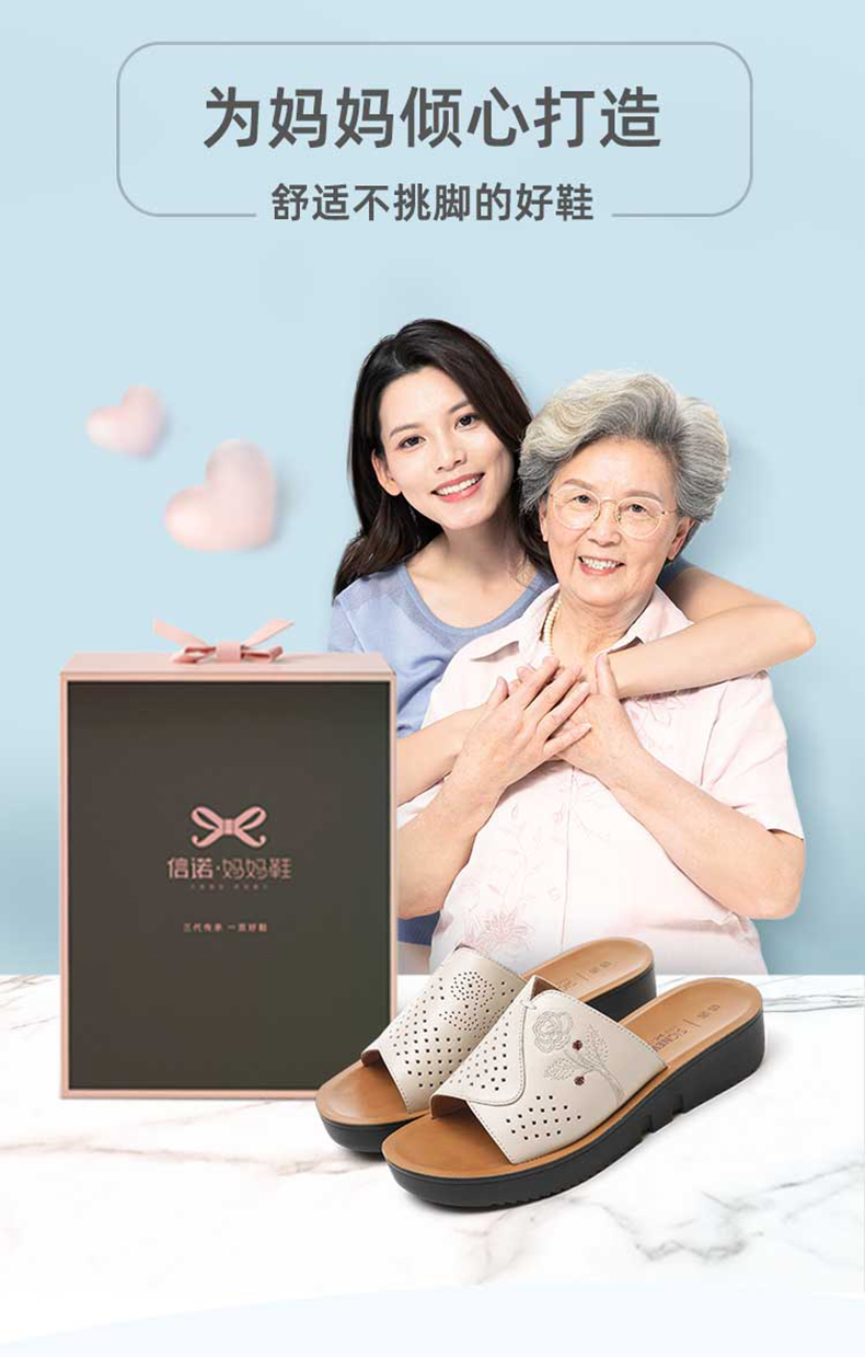 信诺真皮舒适老人单鞋女2025春季新款妈妈鞋软底奶奶鞋中老年皮鞋5C9811-119