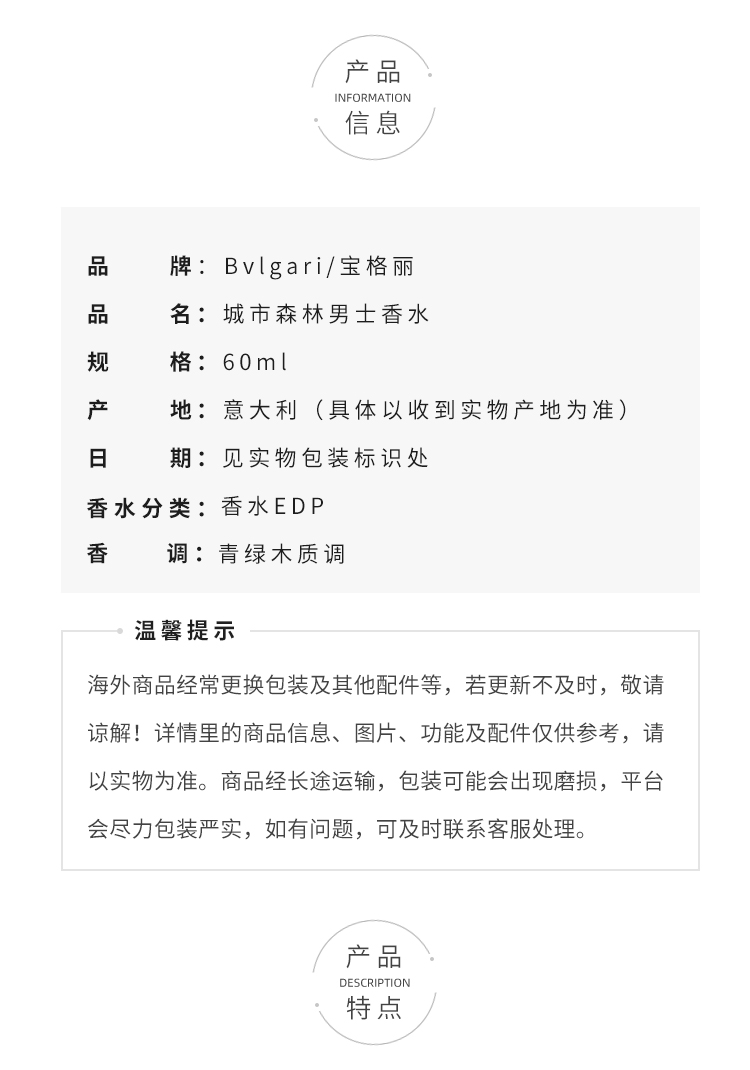 BVLGARI宝格丽城市森林绿意男士淡香EDP香水木质调持久60ml【CDF】