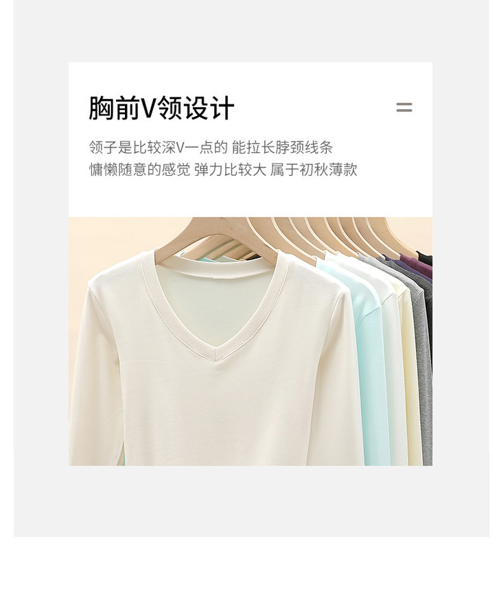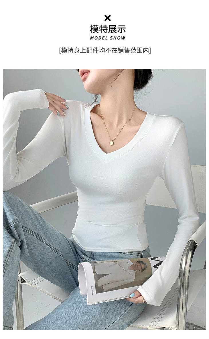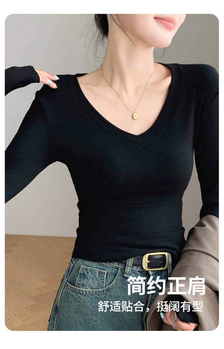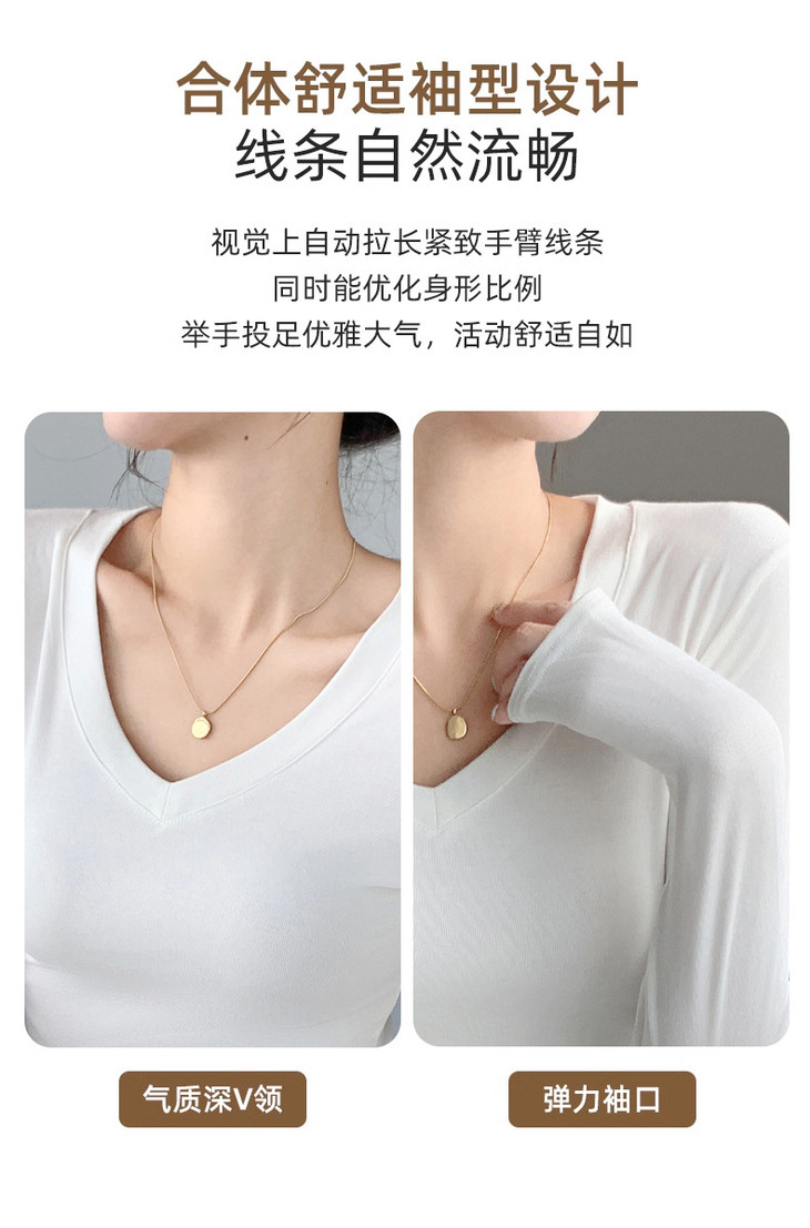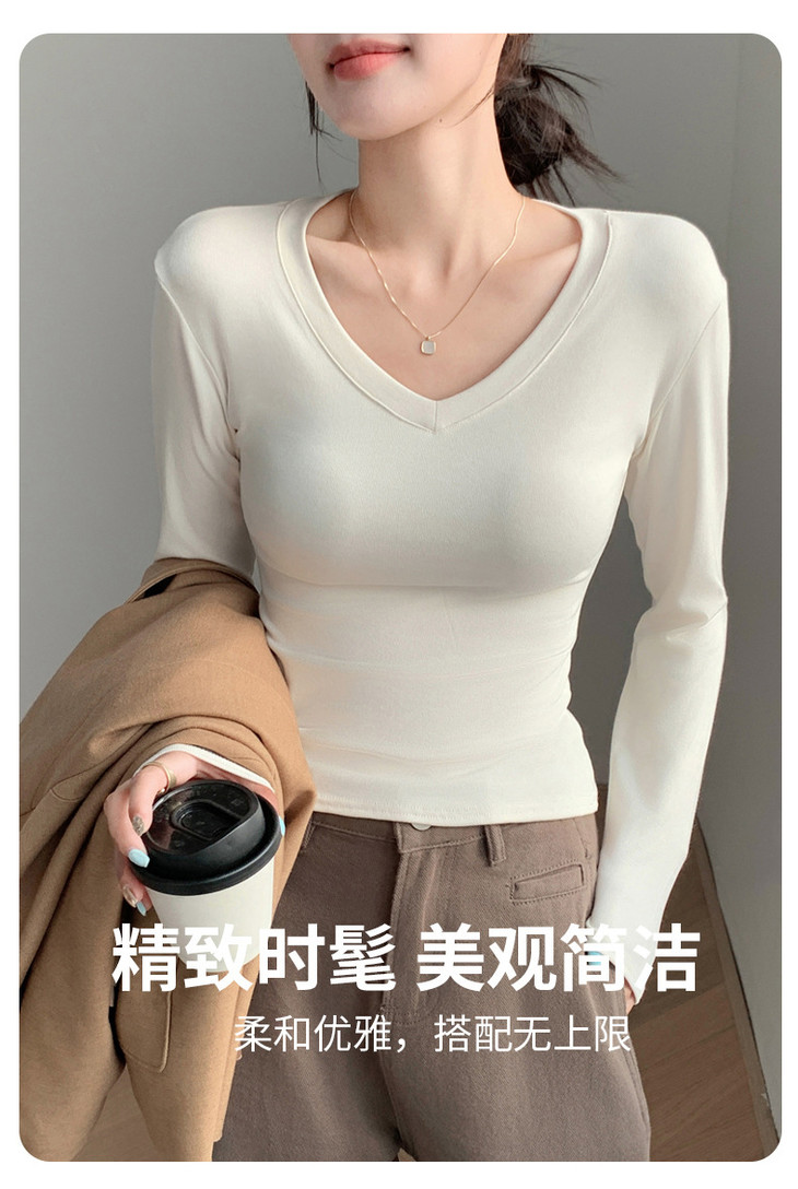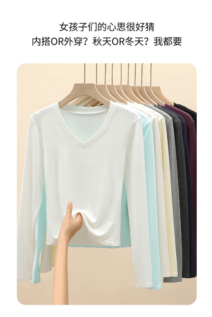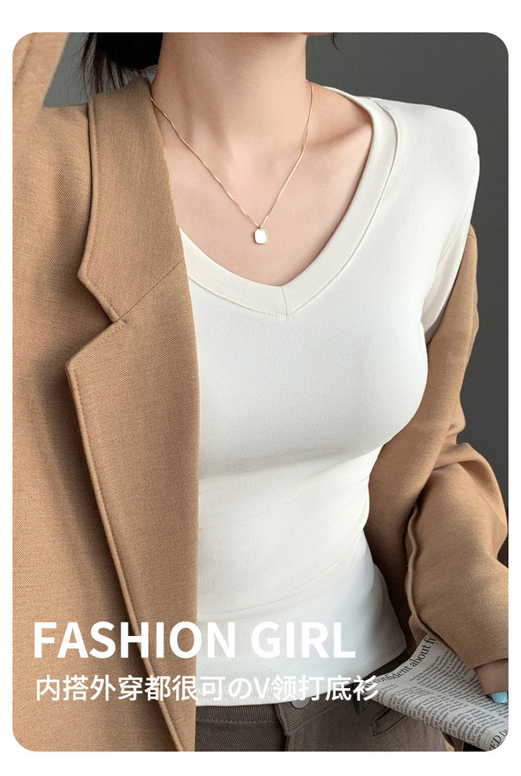 买1送1 严选爱心领内搭外穿设计感上衣白色长袖t恤正肩V领打底衫