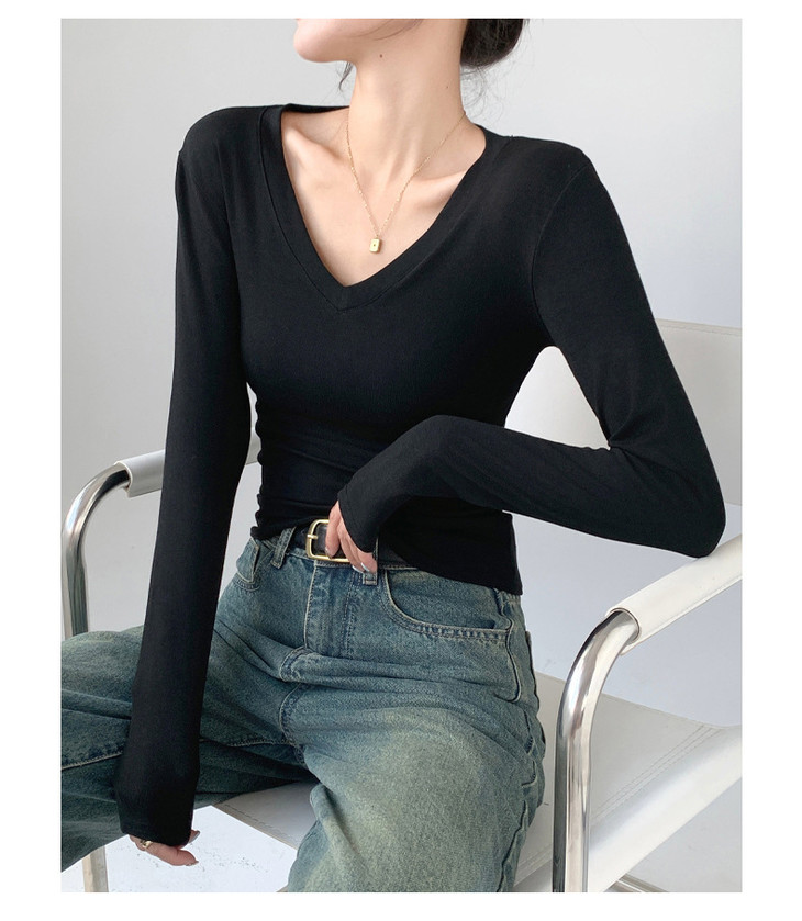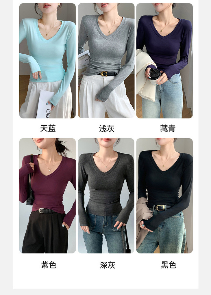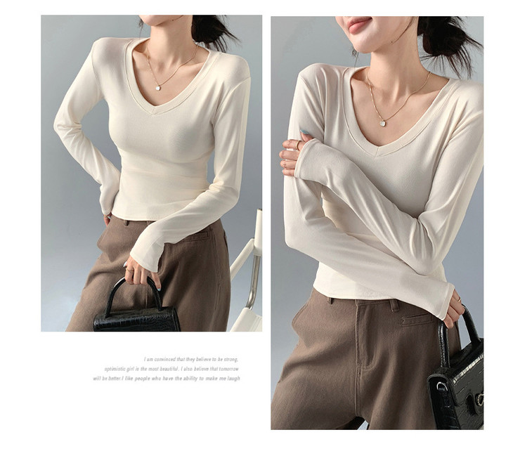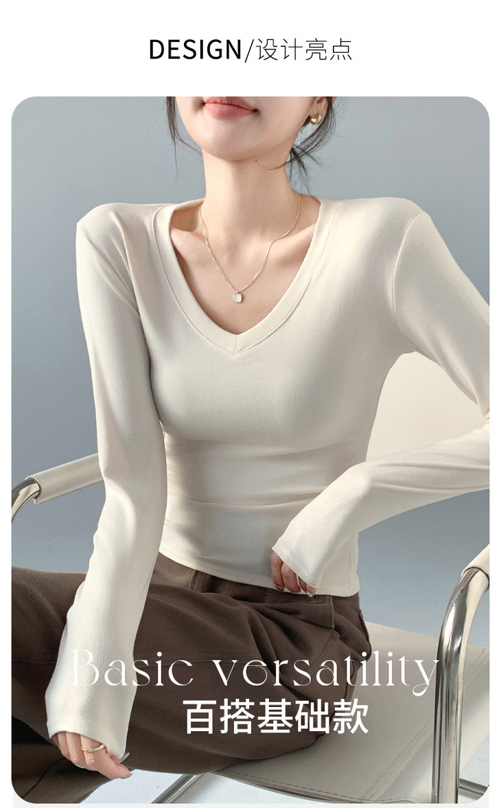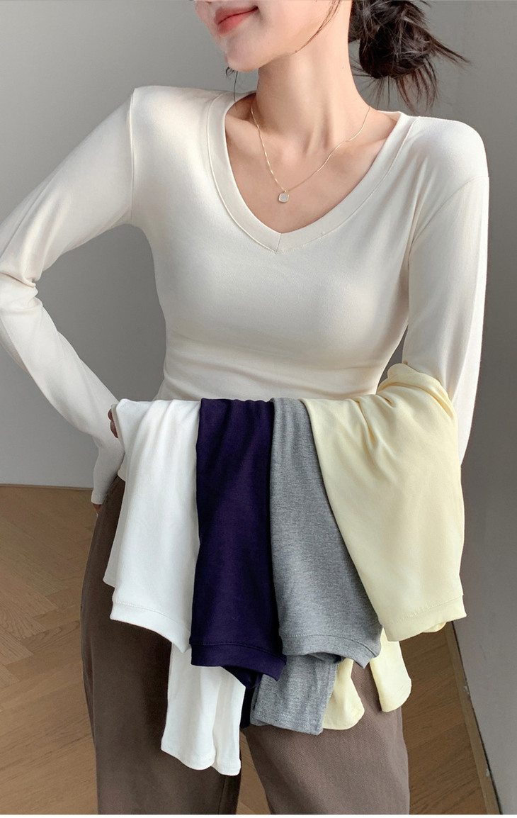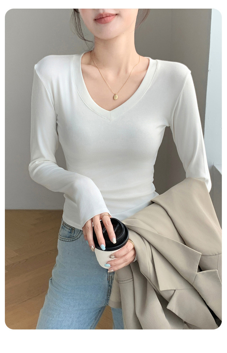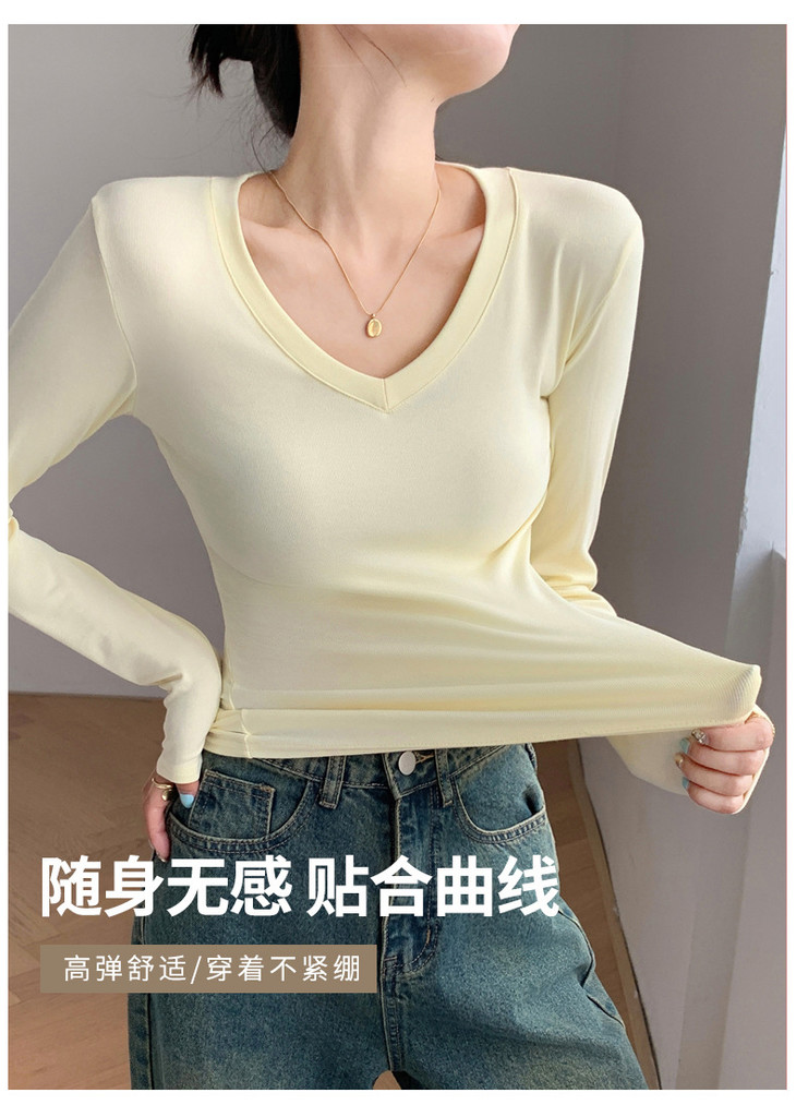 买1送1 严选爱心领内搭外穿设计感上衣白色长袖t恤正肩V领打底衫