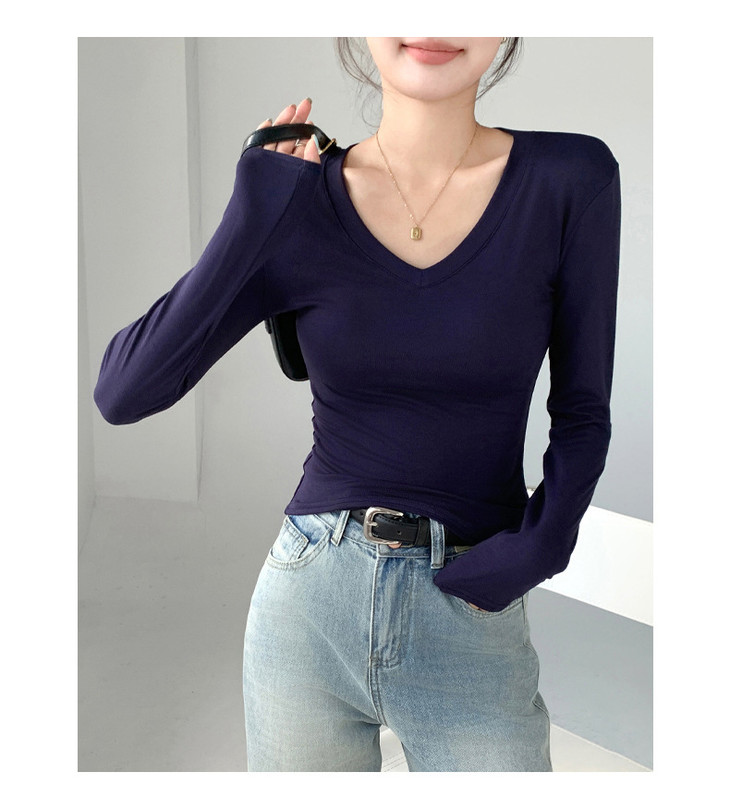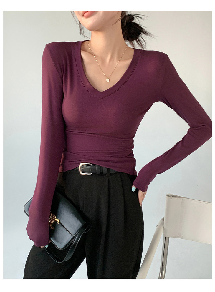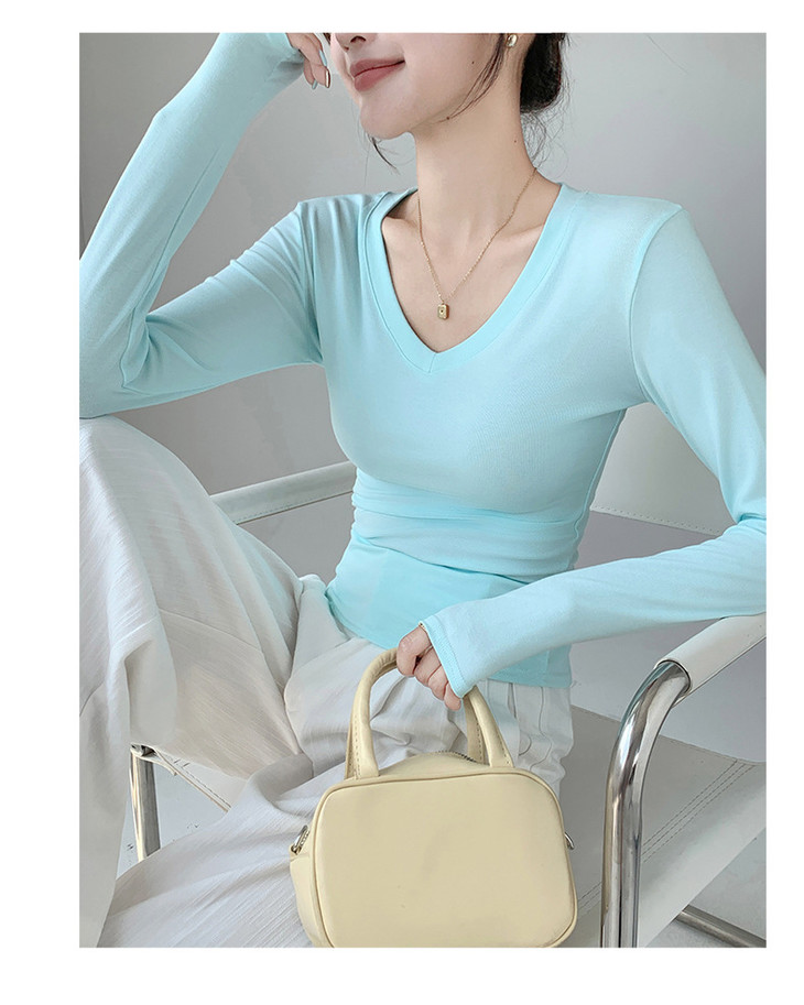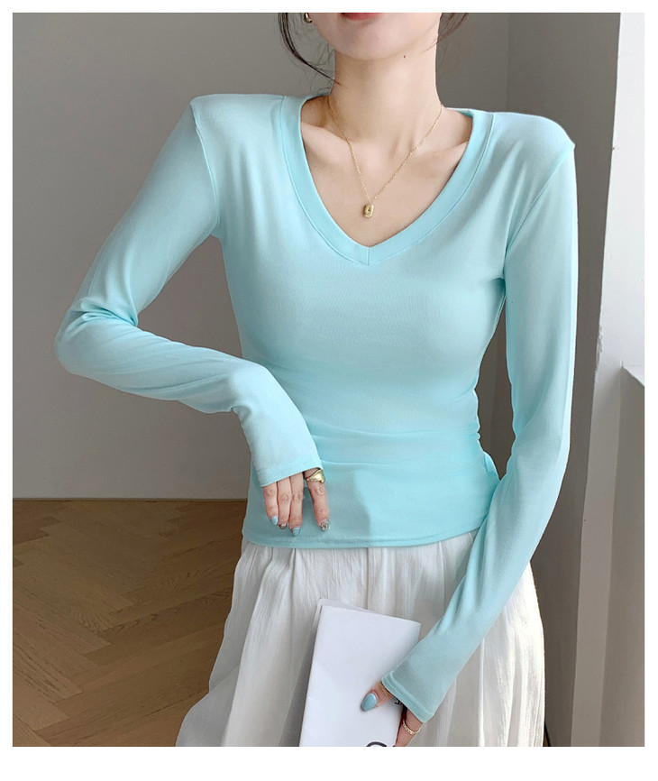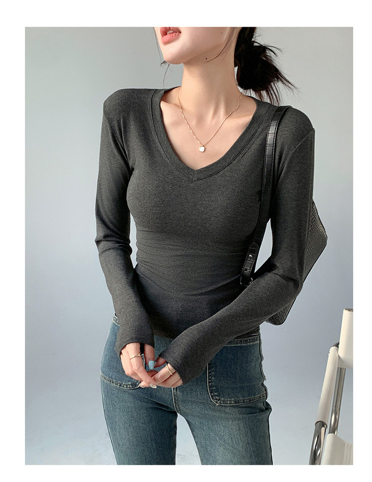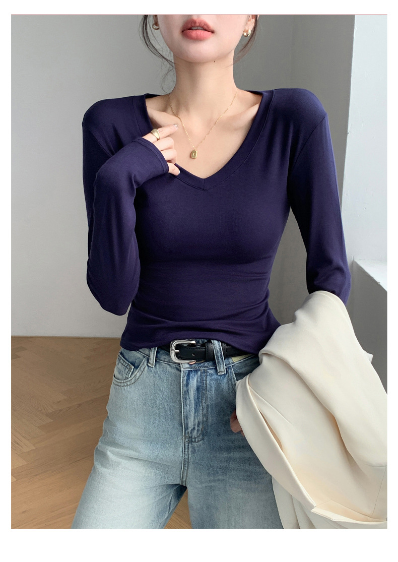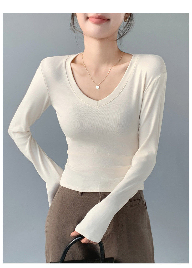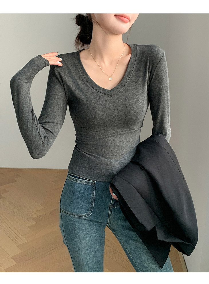 买1送1 严选爱心领内搭外穿设计感上衣白色长袖t恤正肩V领打底衫