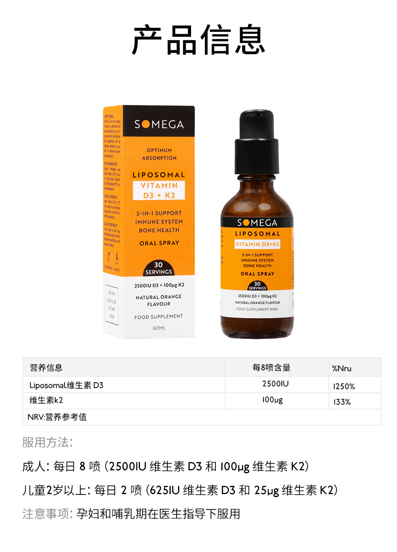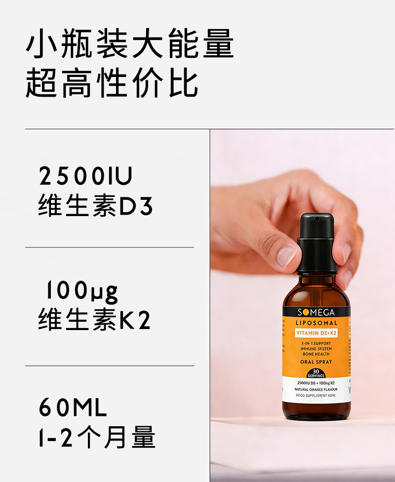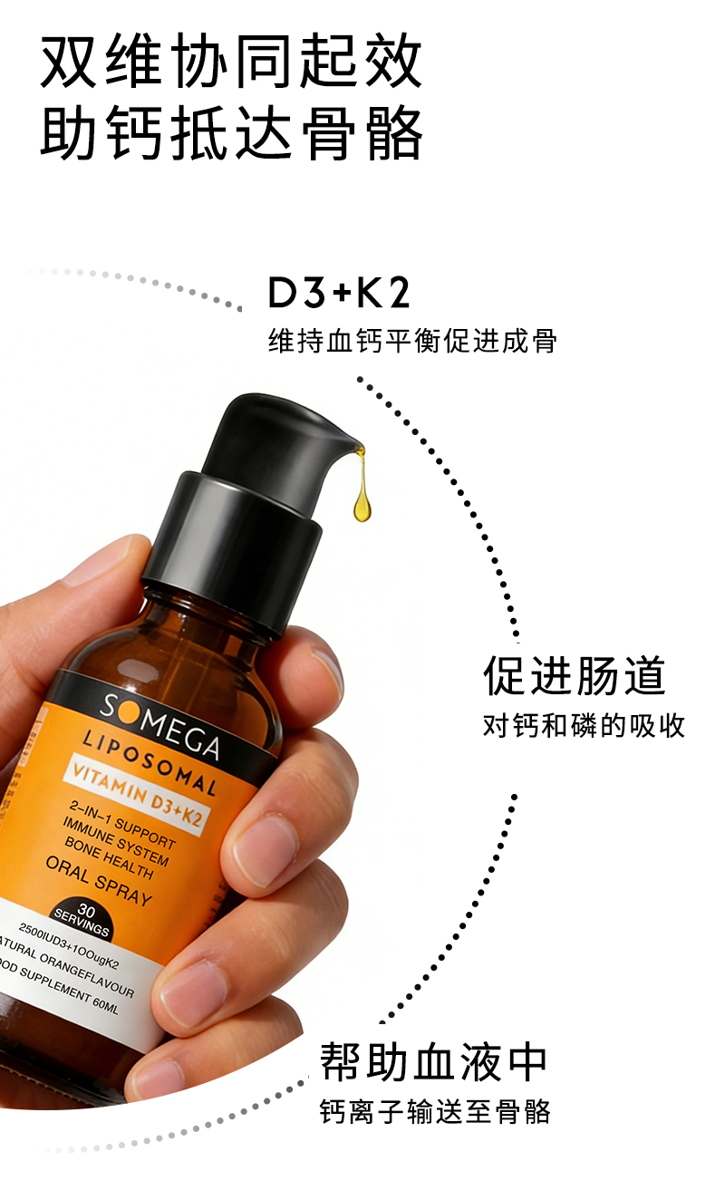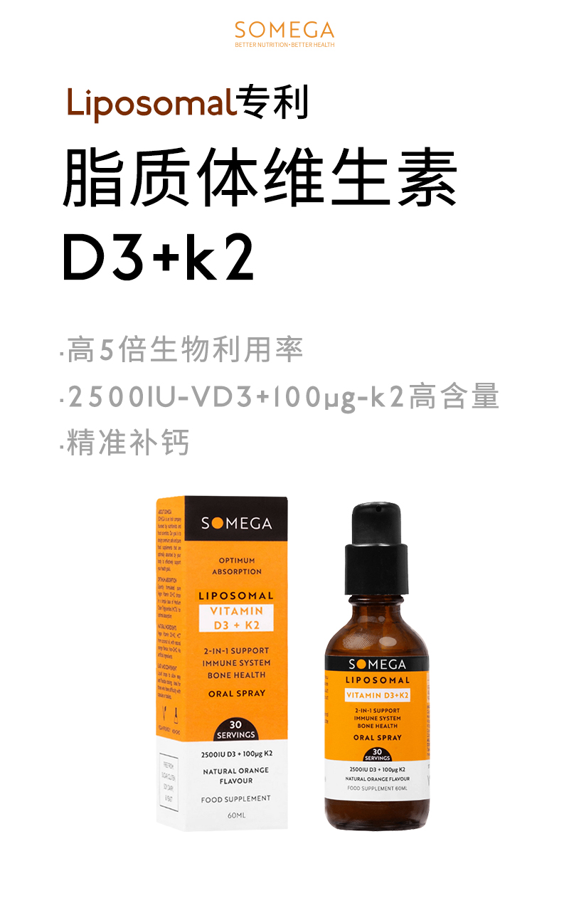 SOMEGA索美嘉 脂质体VD3维生素D3+K2 5X 高生物利用率 60毫升/瓶