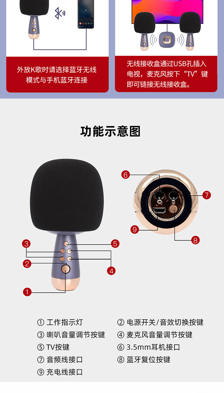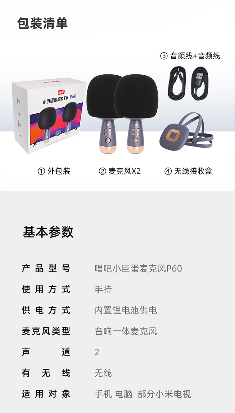 唱吧小巨蛋 P60家庭KTV话筒音响一体麦克风