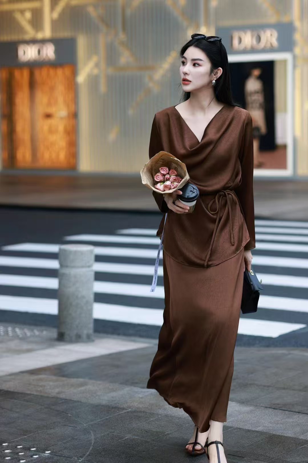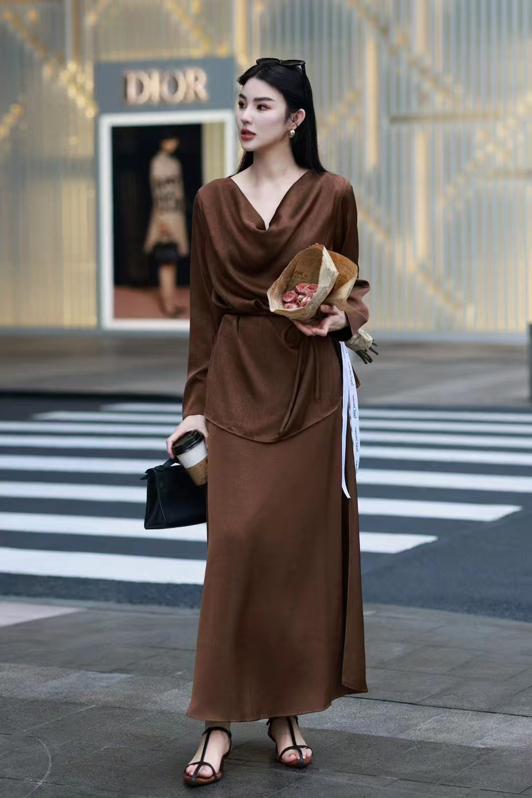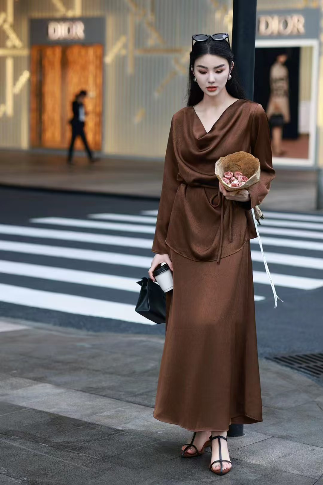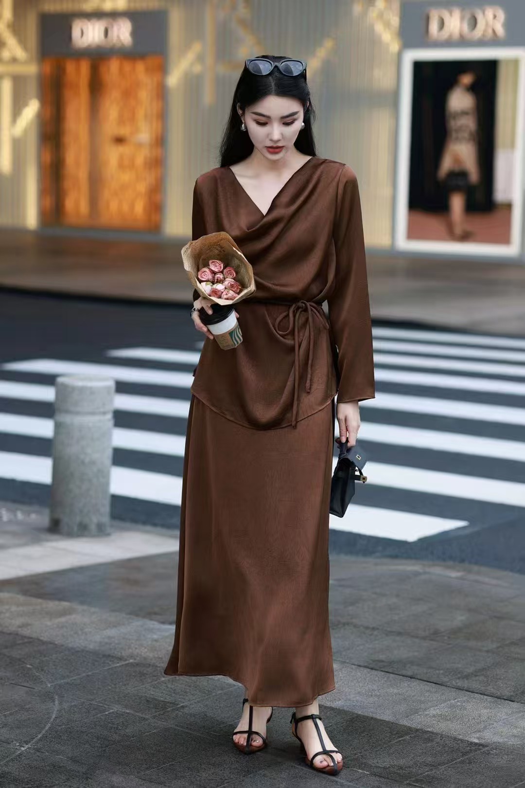 QG0827#冷素雅高级感·醋酸荡领套裙