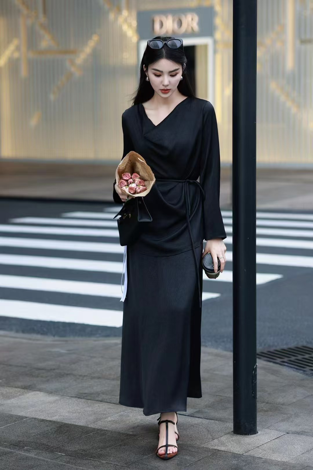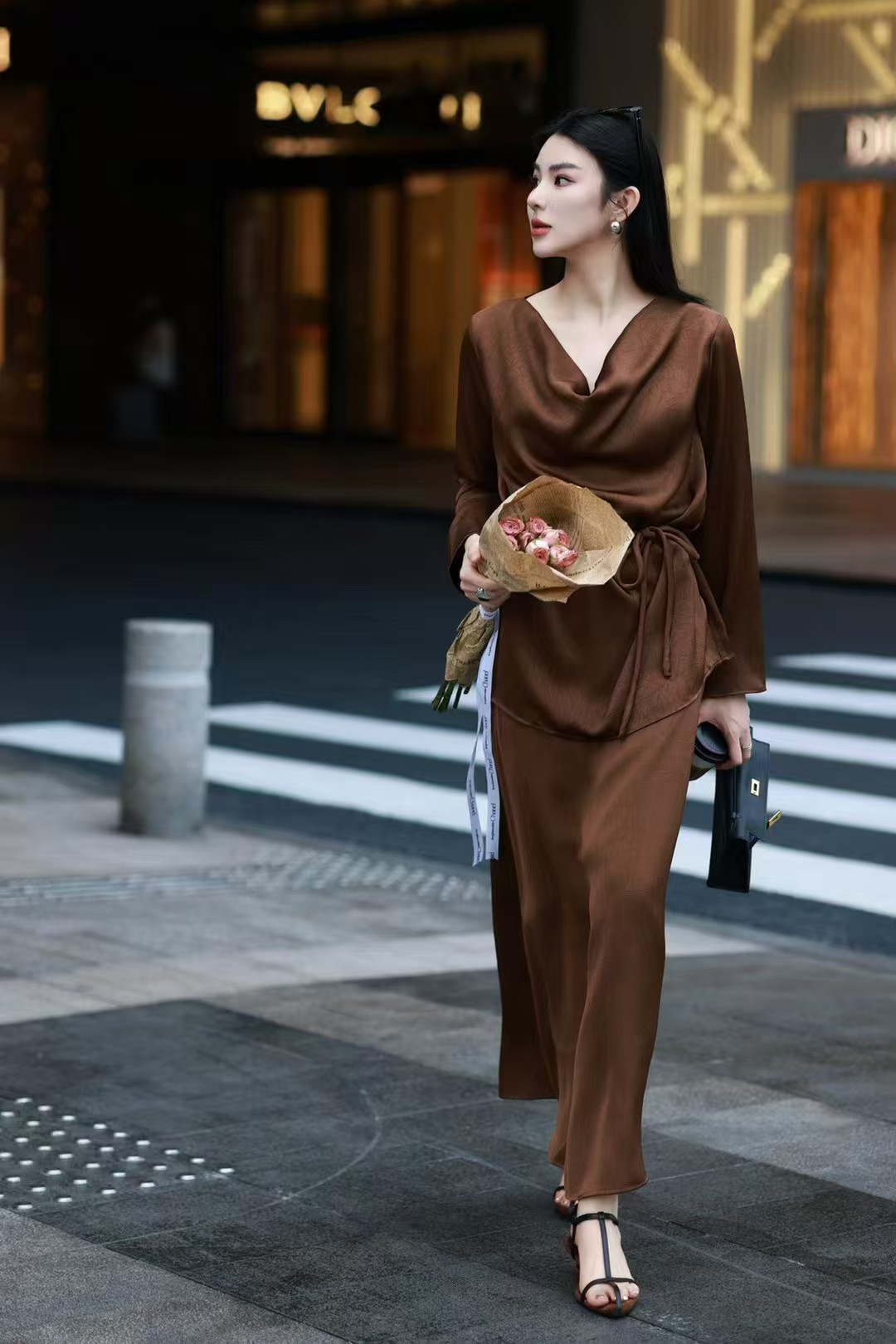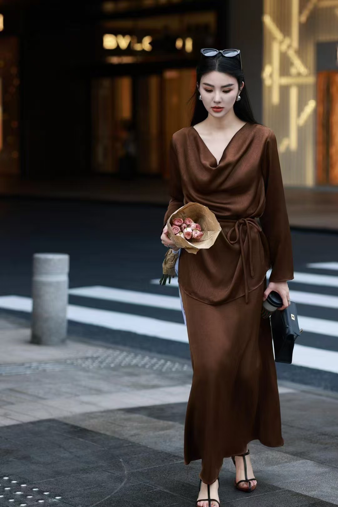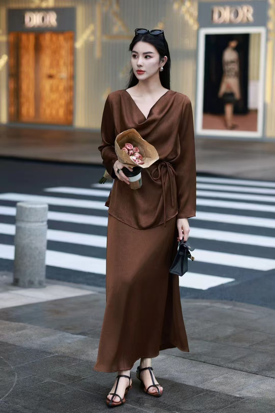 QG0827#冷素雅高级感·醋酸荡领套裙