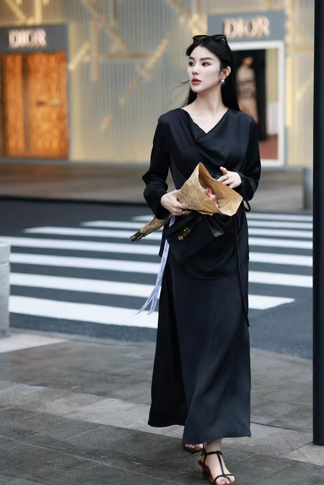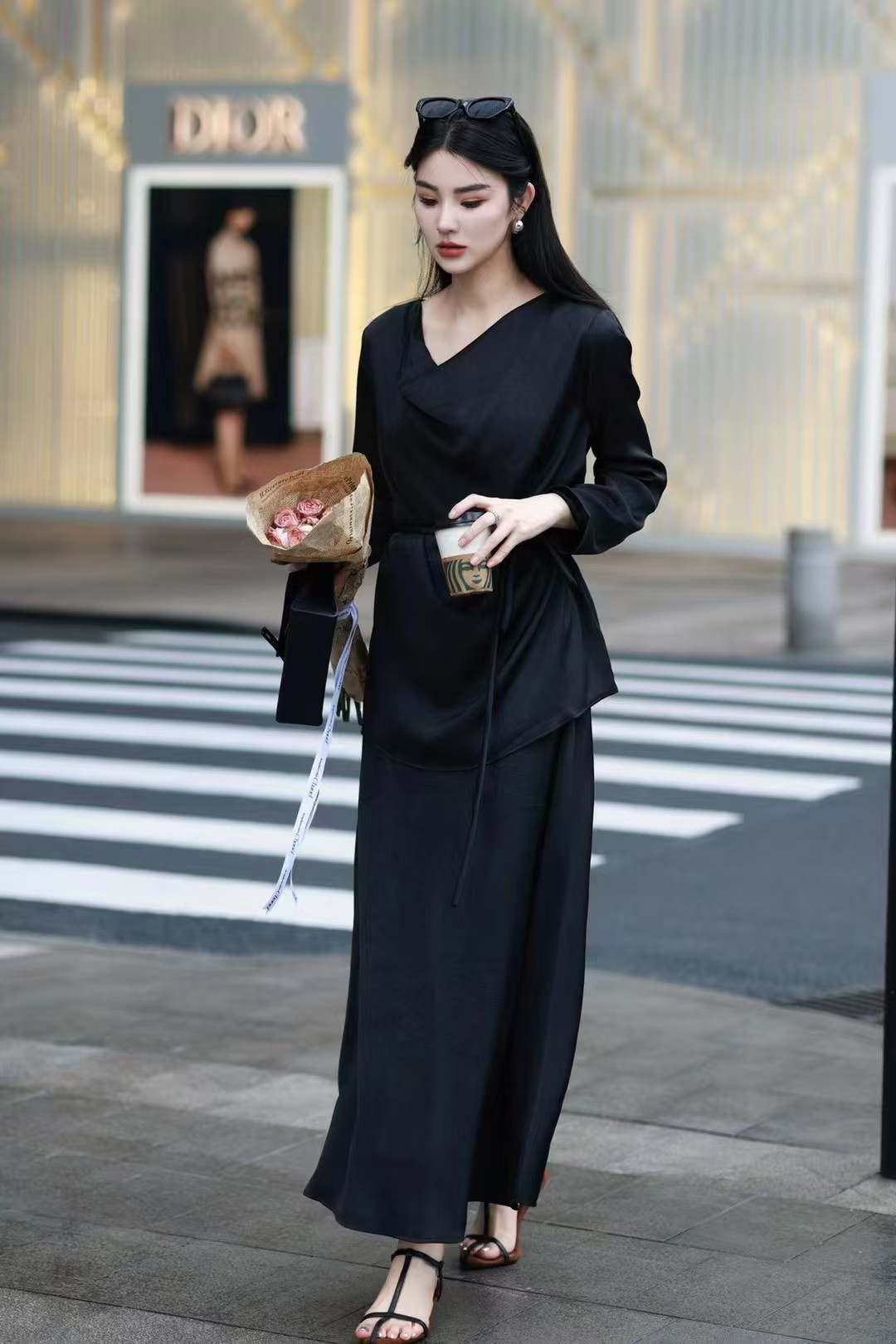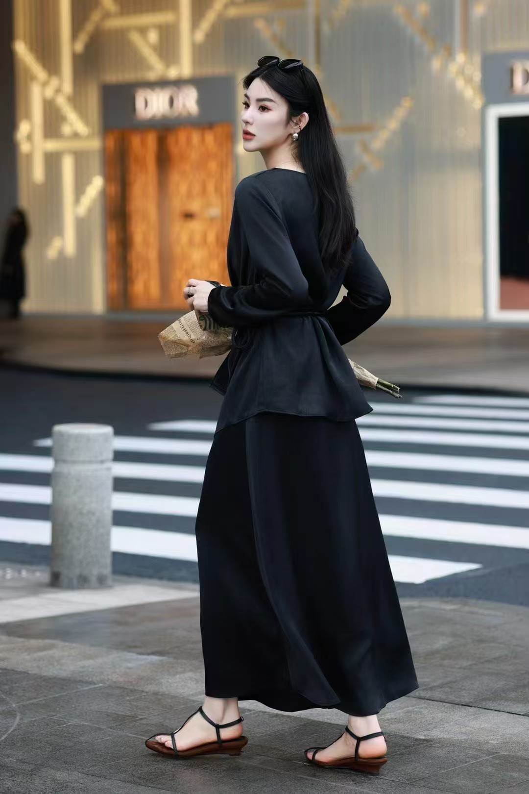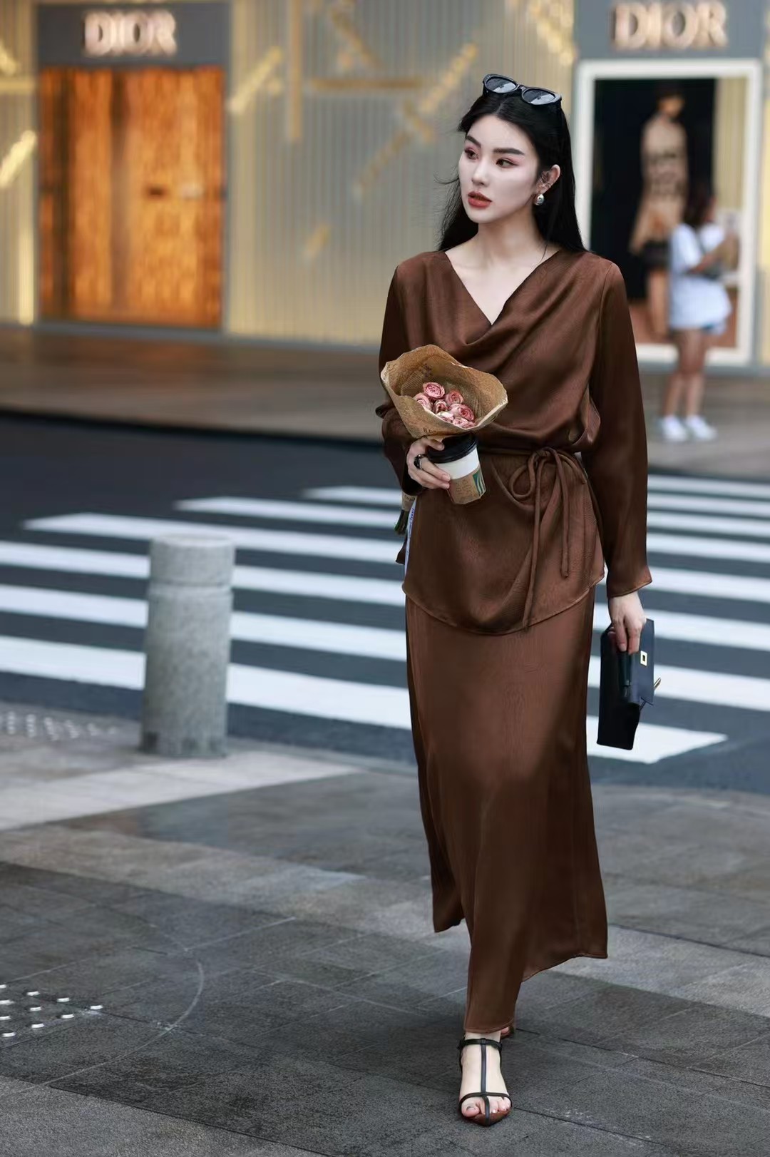 QG0827#冷素雅高级感·醋酸荡领套裙