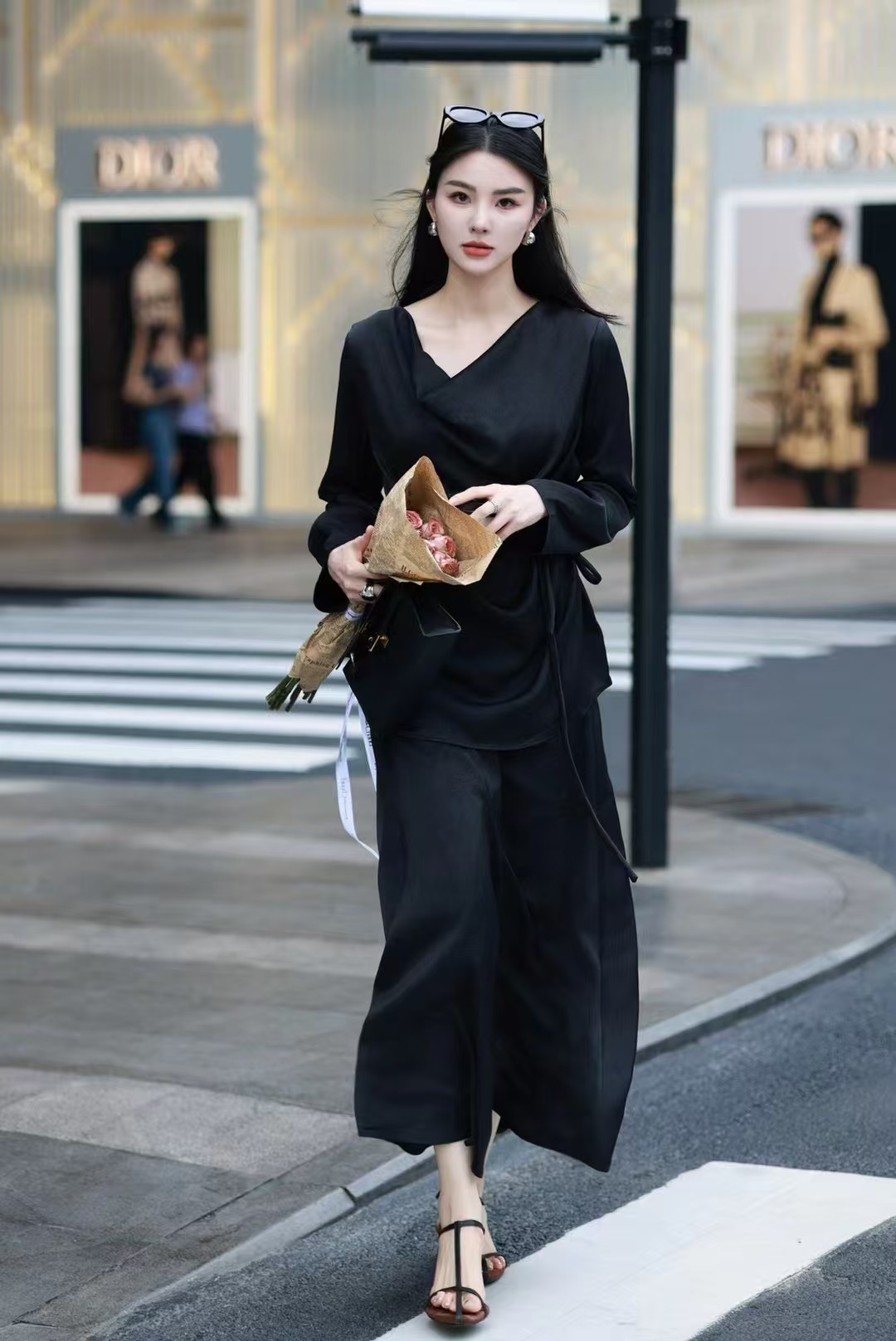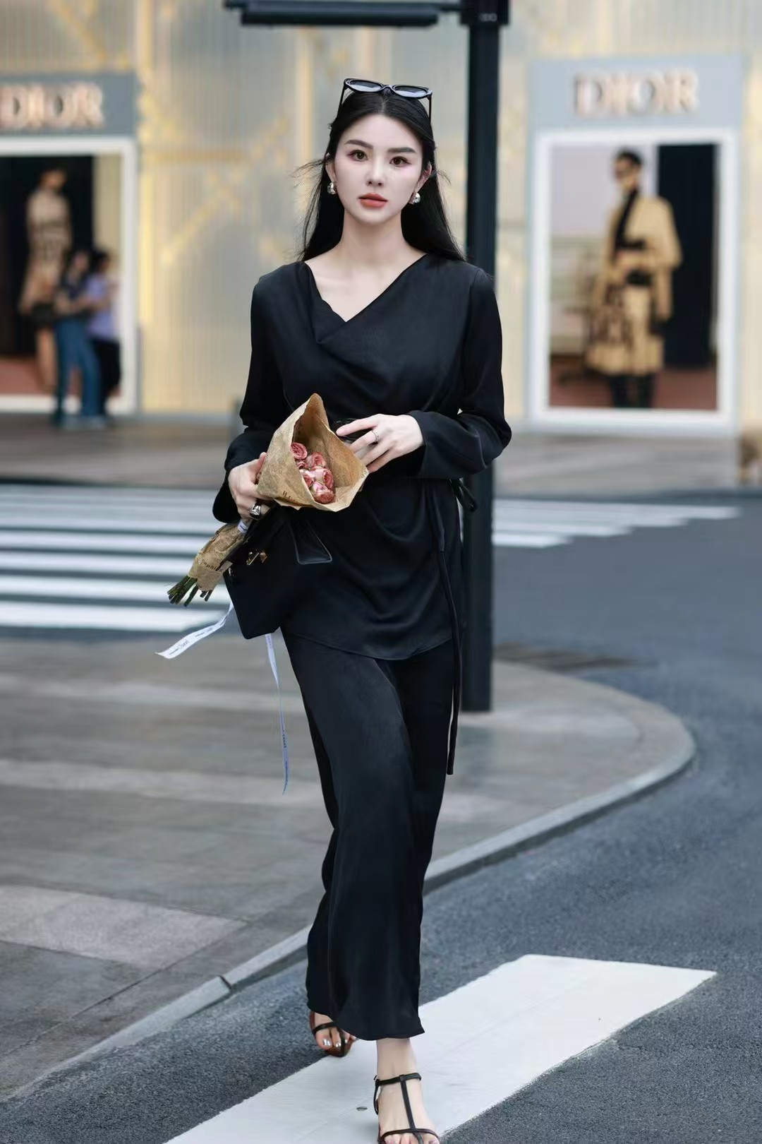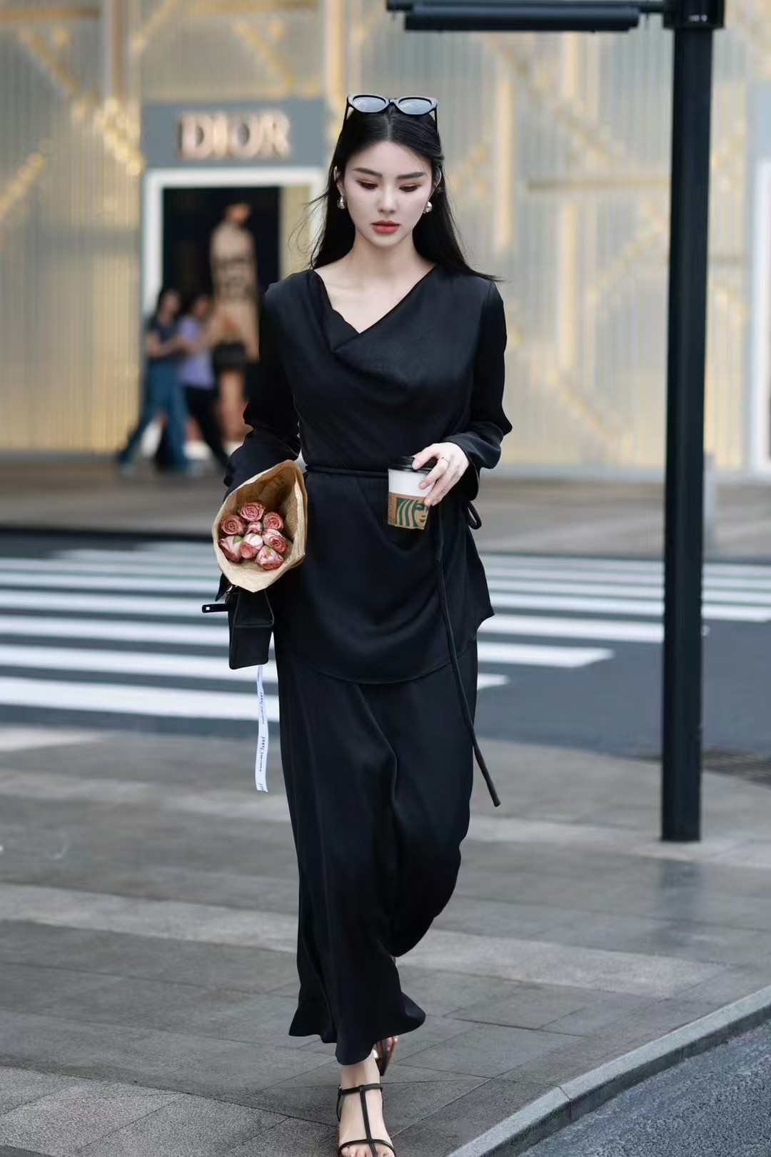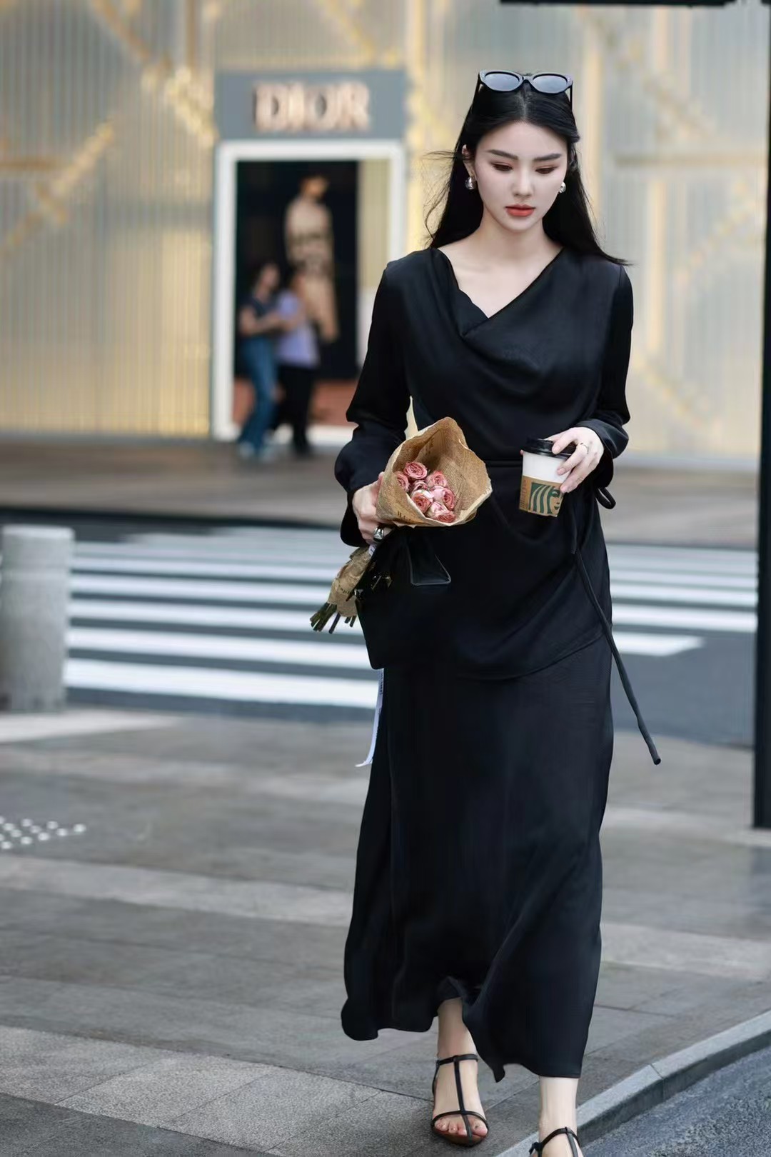 QG0827#冷素雅高级感·醋酸荡领套裙