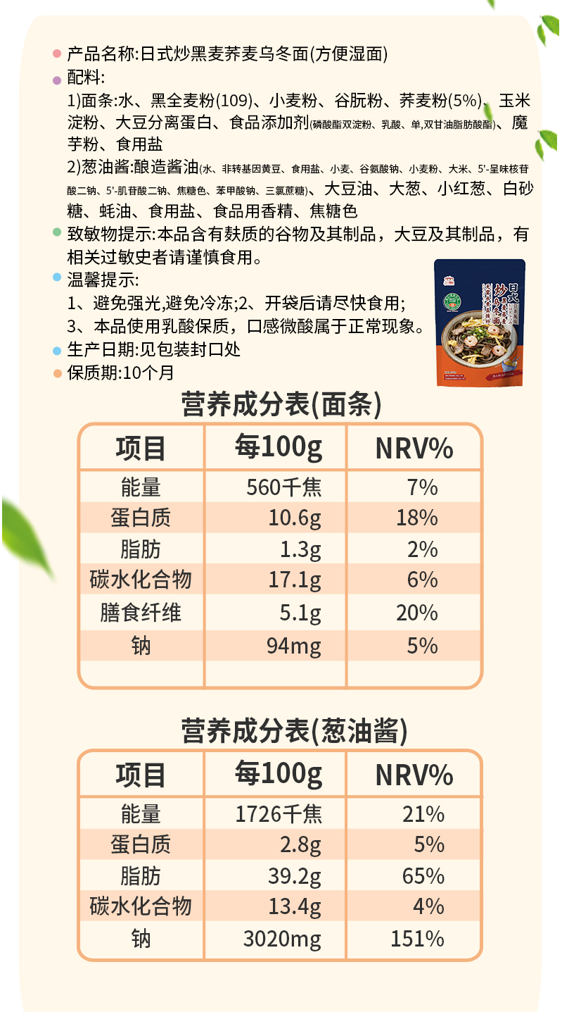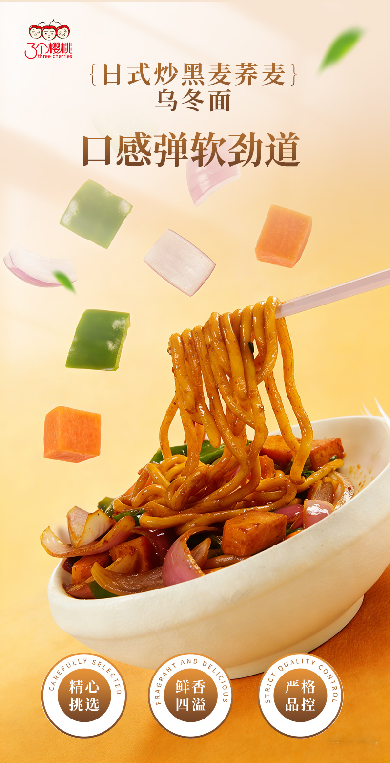 【低GI拉面方便湿面拌面速食】日式炒黑麦荞麦乌冬面420g*3袋
