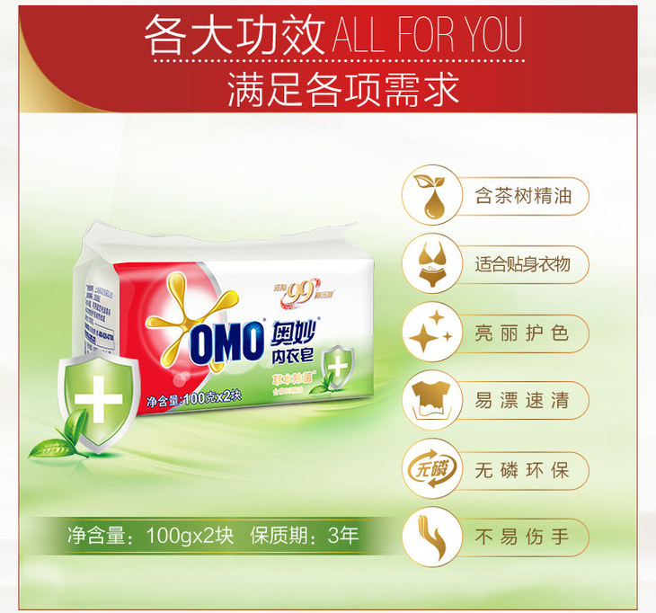 【亚欧超市】奥妙洗衣皂 草本内衣皂 100G*2块