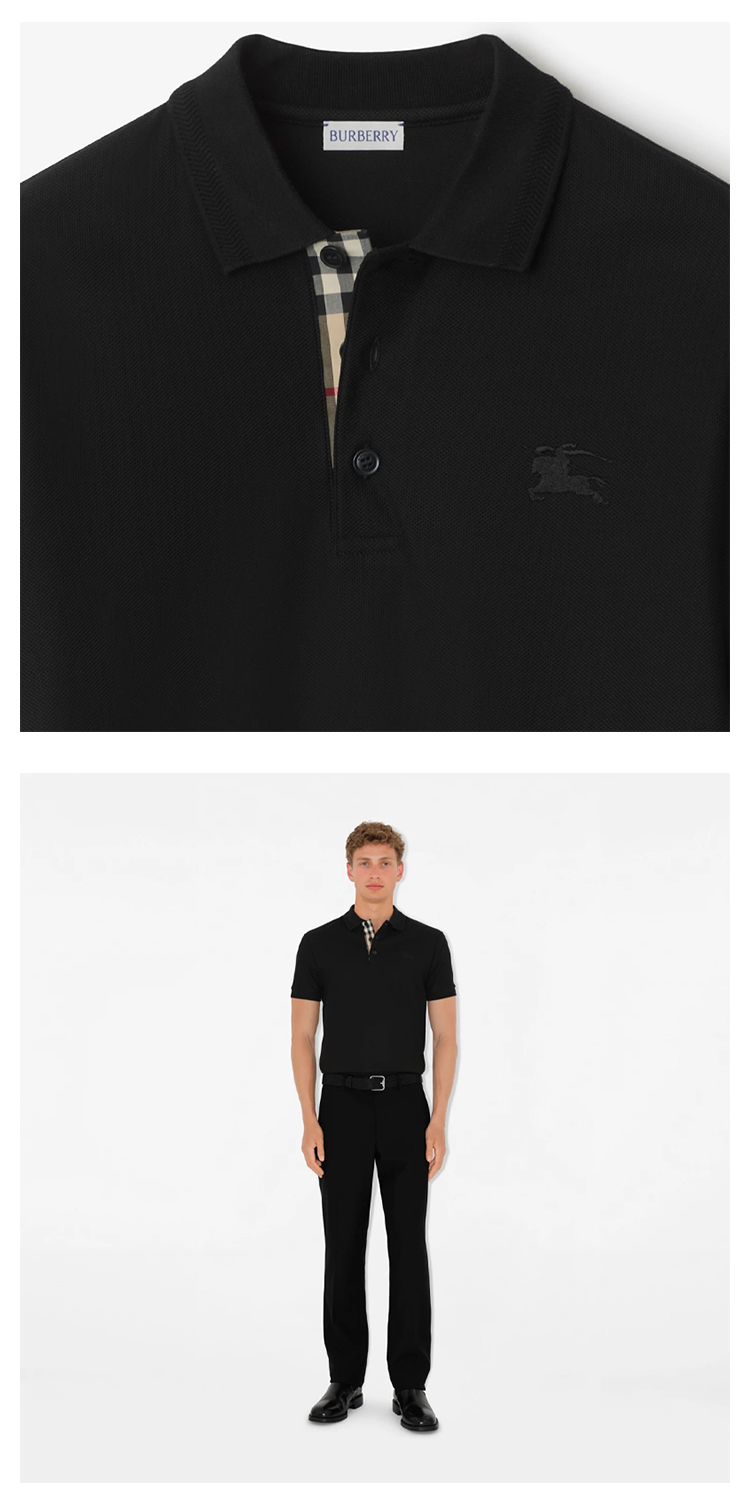 【二】BURBERRY 巴宝莉 男士马术骑士徽标刺绣棉质短袖 Polo 衫 黑色 8096425 A1189