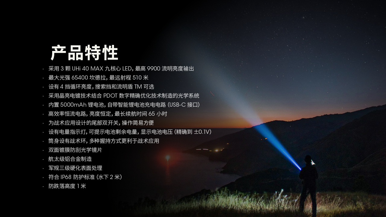 NITECORE奈特科尔TM9K PRO强光9900流明高亮Type-C充电21700电池手电