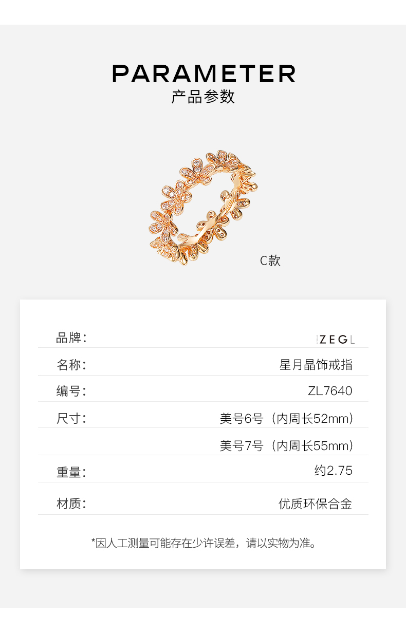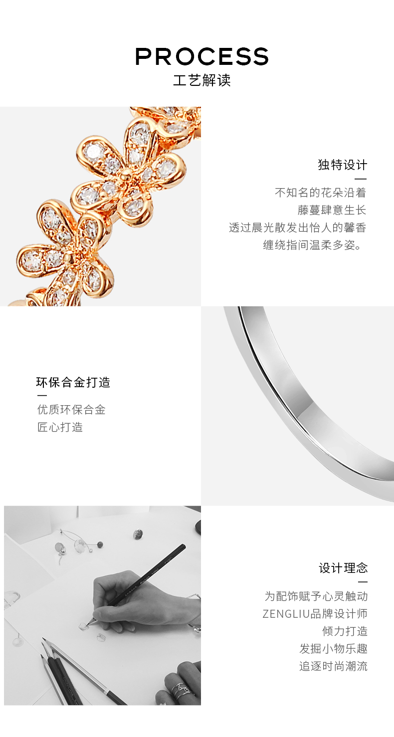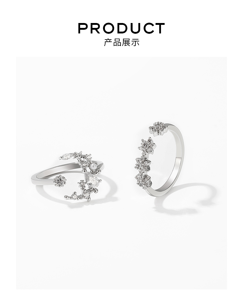 ZENGLIU轻奢星月小花朵戒指女ins潮韩国复古开口戒冷淡风食指戒指
