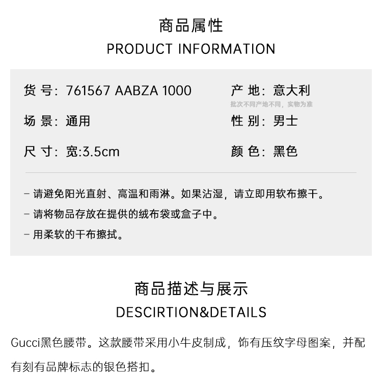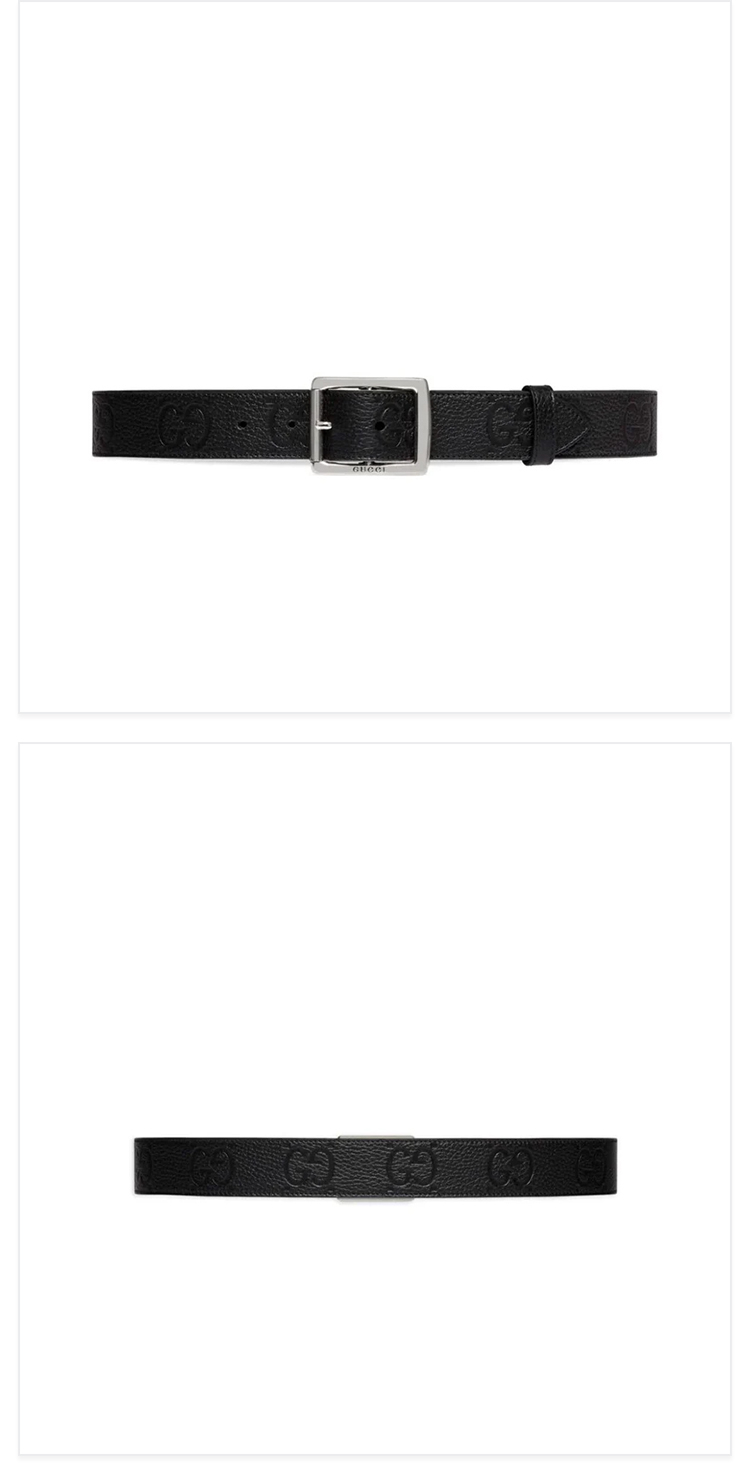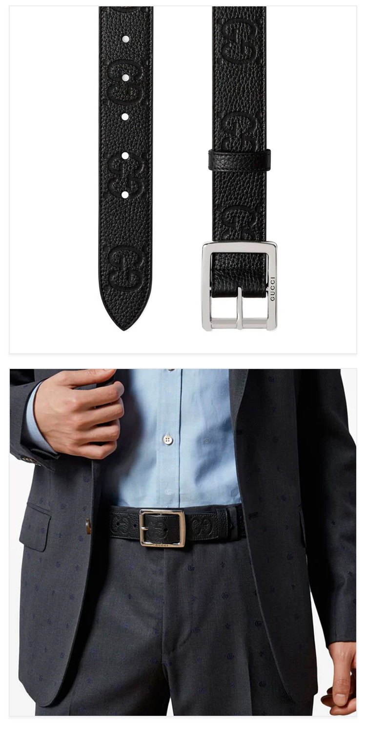 【一】GUCCI 古驰 男士 GG 皮革方形钯色带扣腰带 黑色 761567 AABZA 1000
