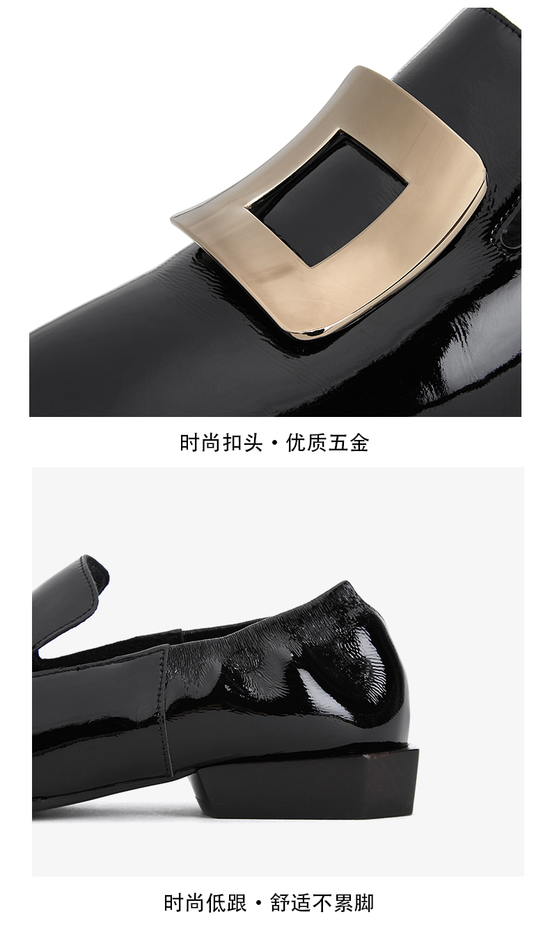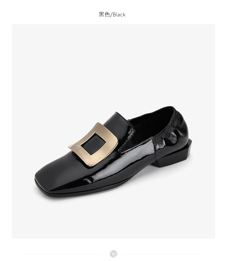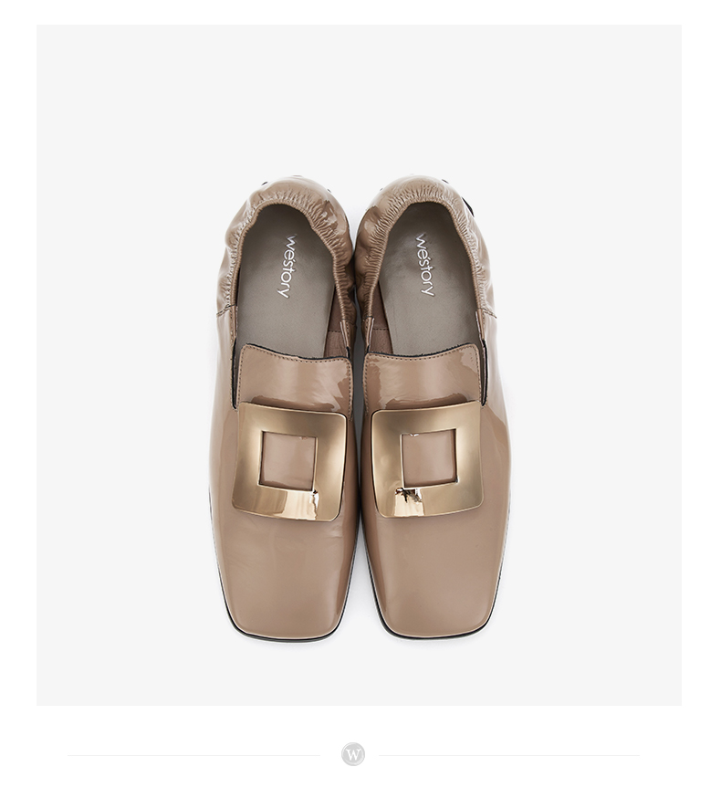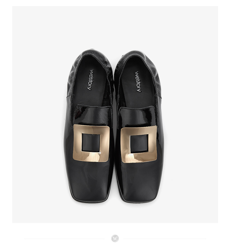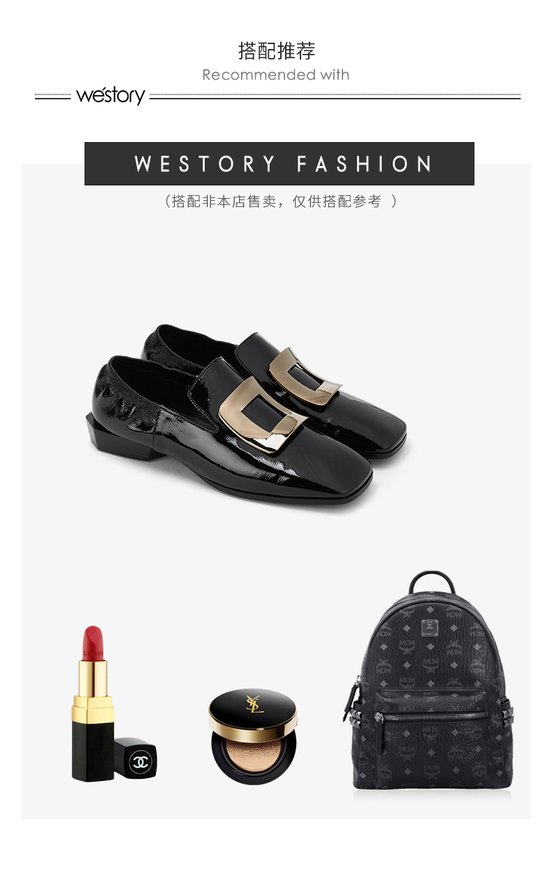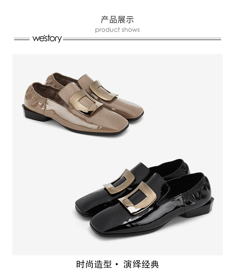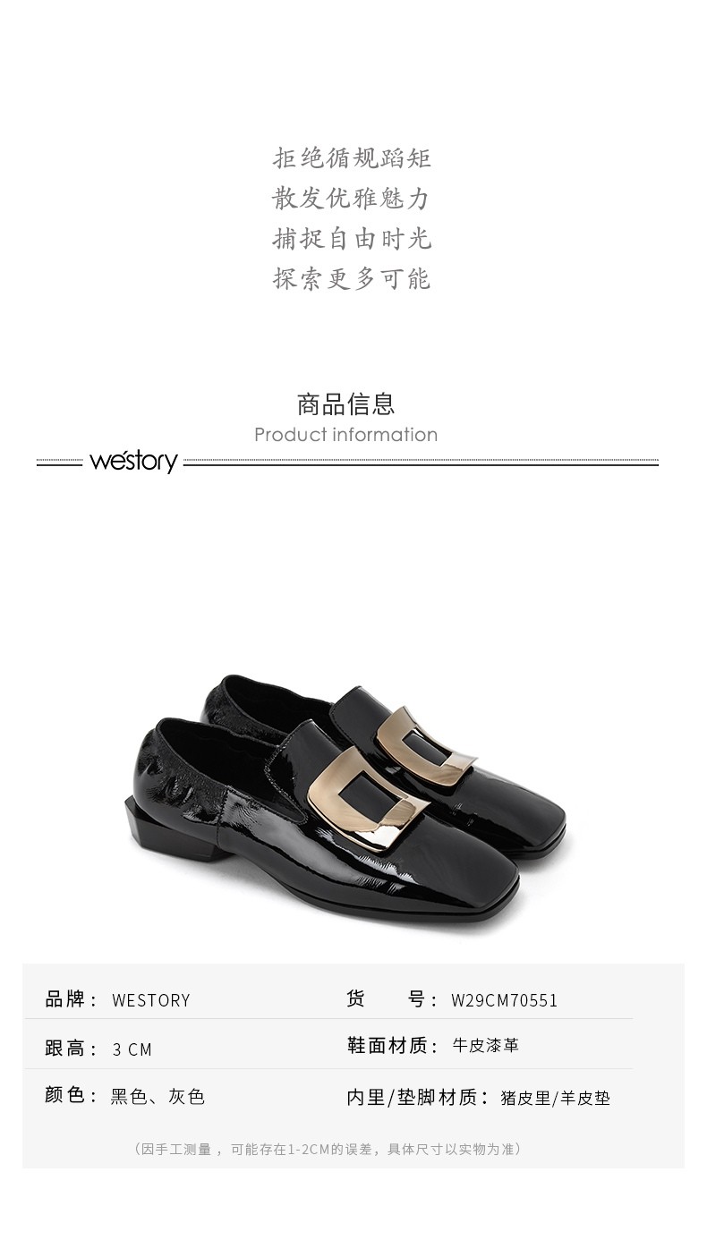 westory商场同款方扣懒人鞋异形粗跟低跟通勤松紧鞋口女单鞋W29CM70551