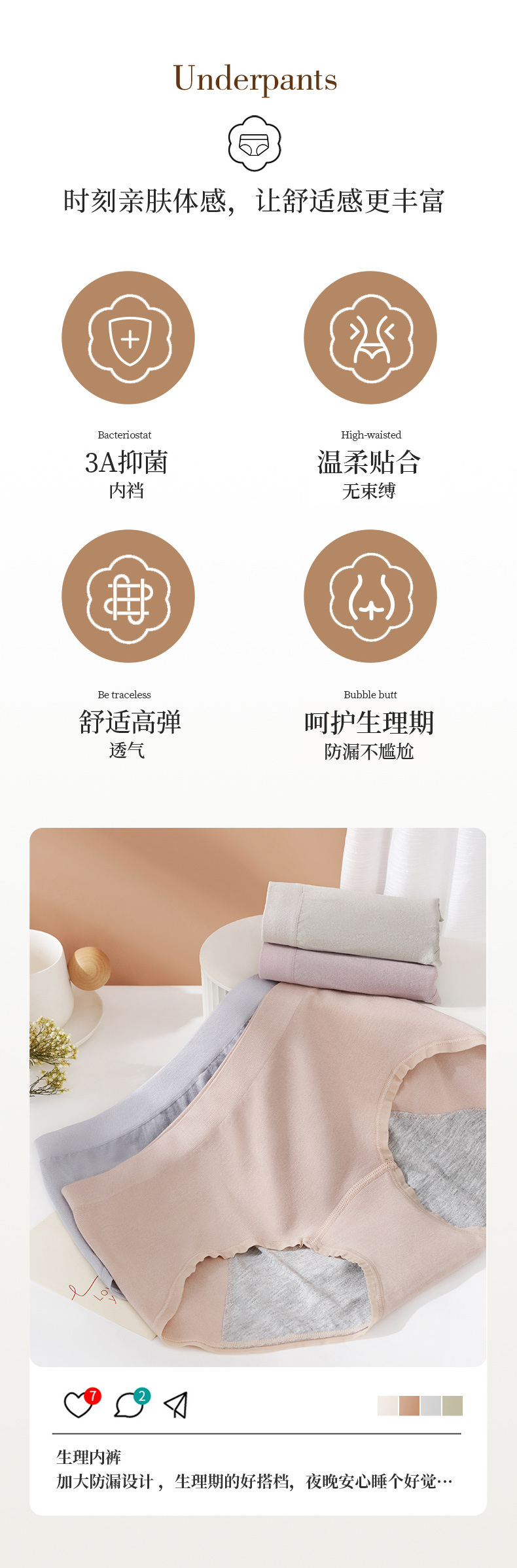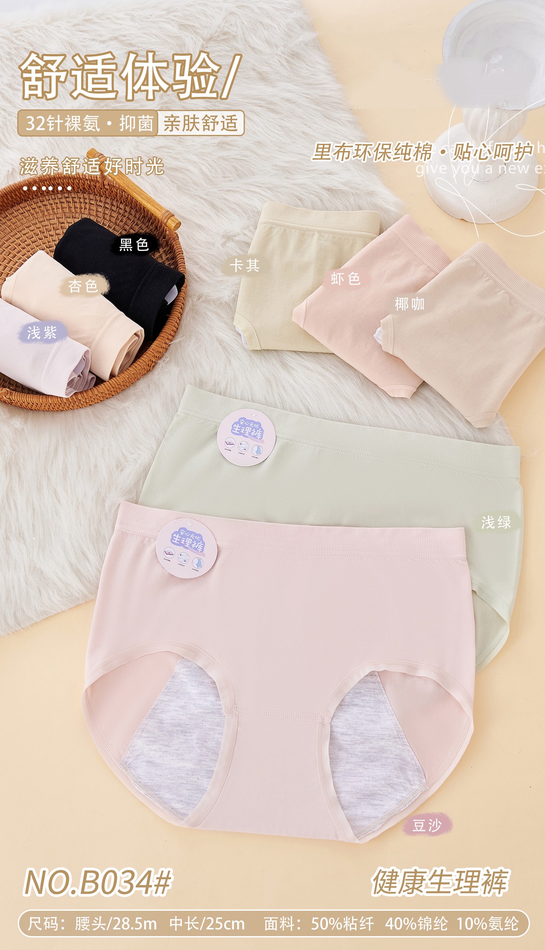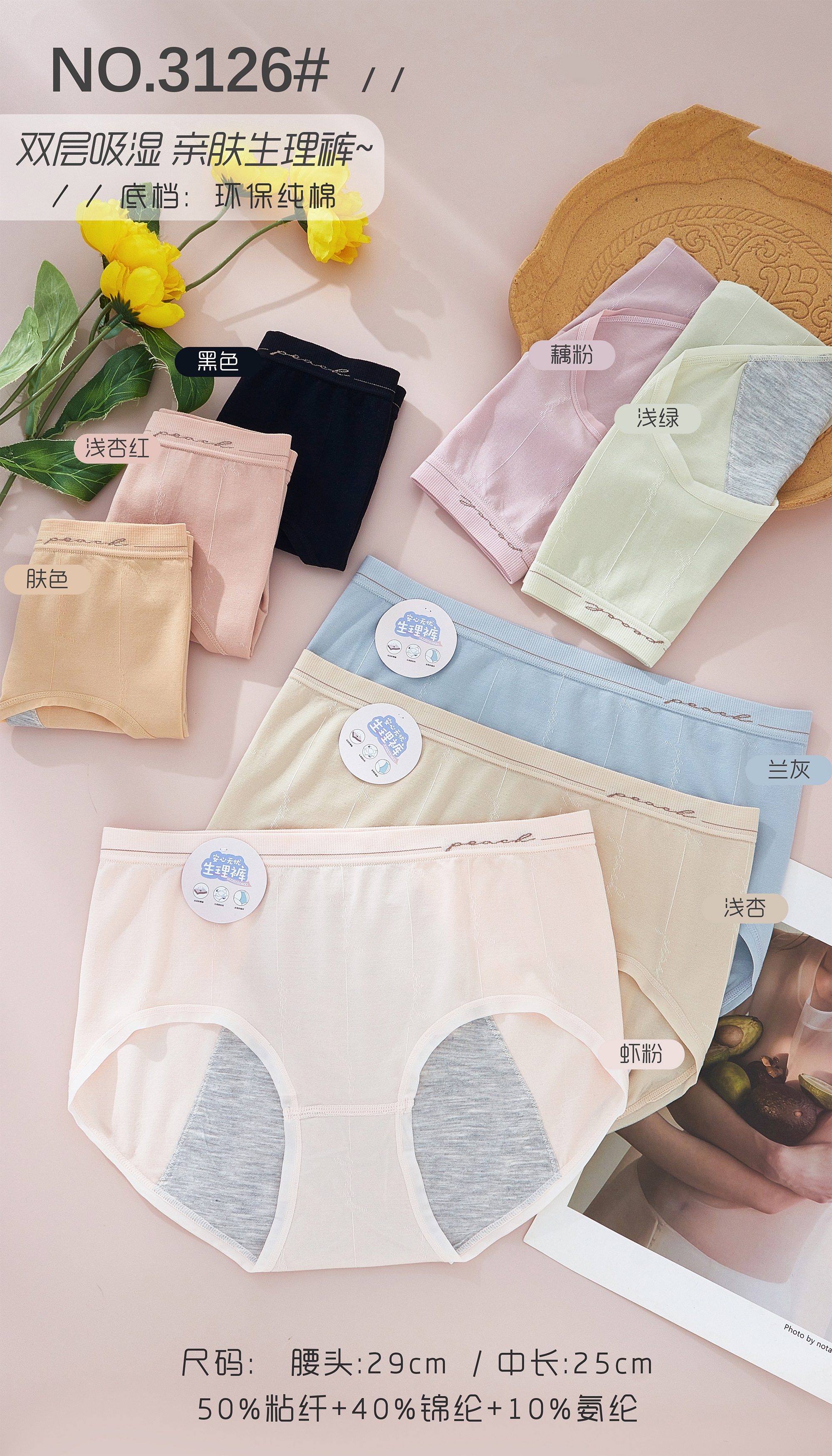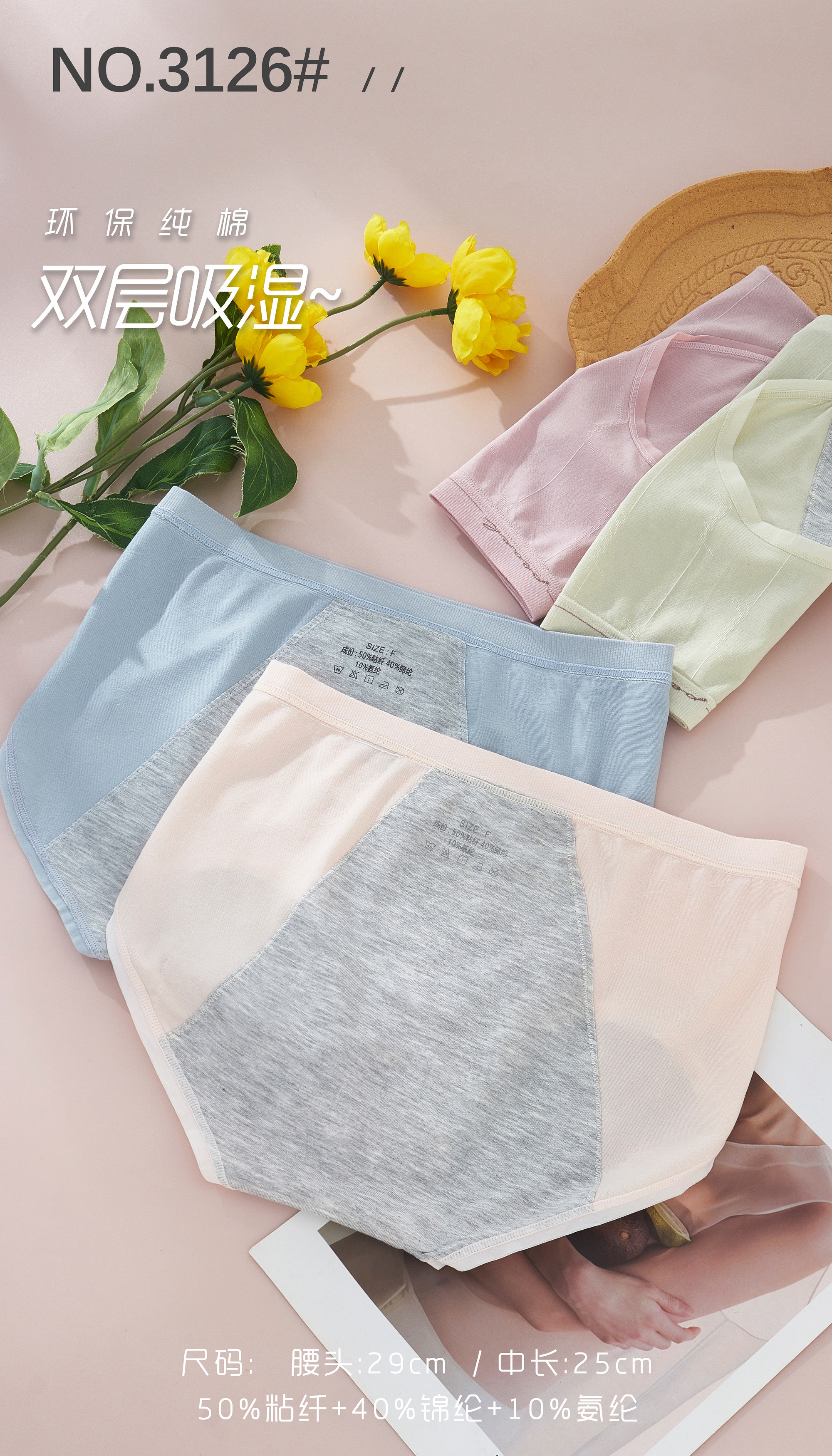 女士莫代尔裸氨无缝生理裤三角内裤2356/3126/B034/C025/D001