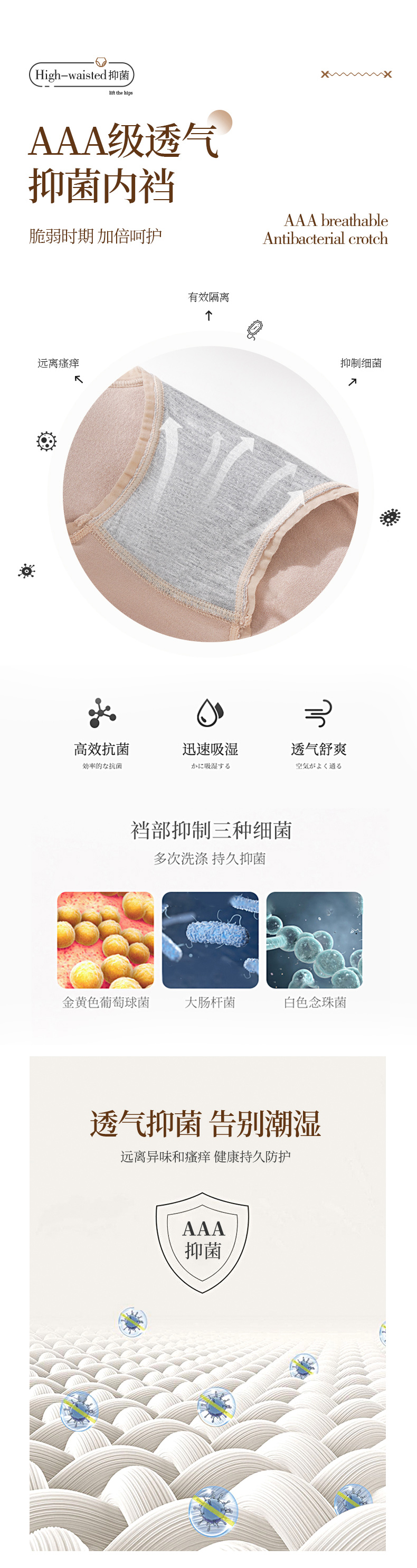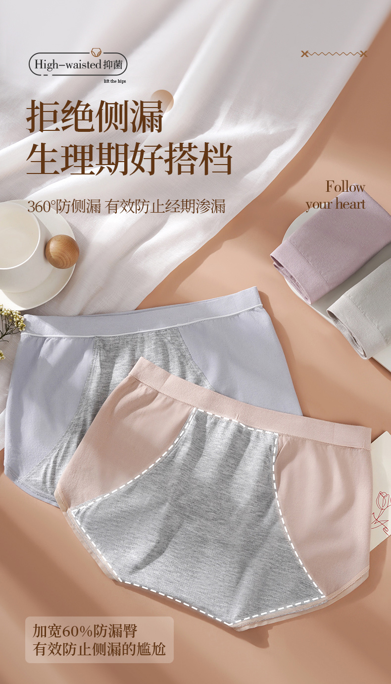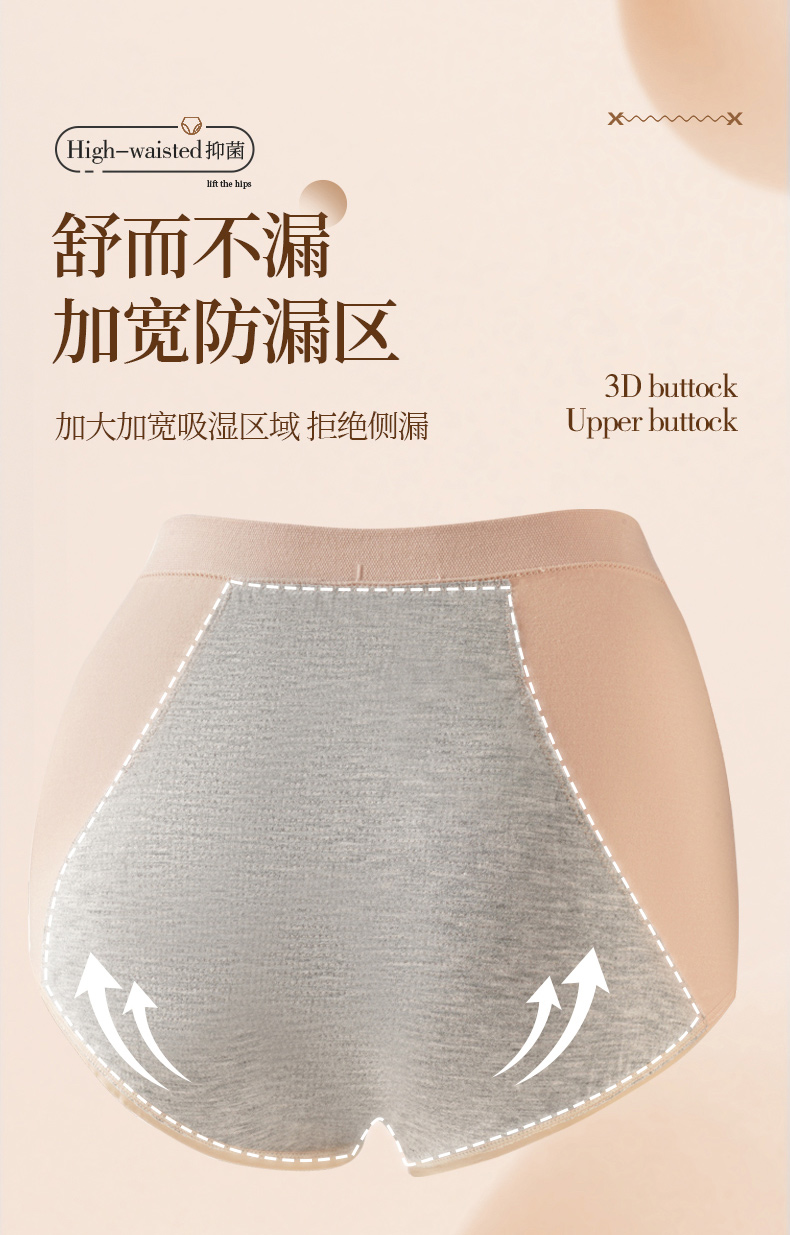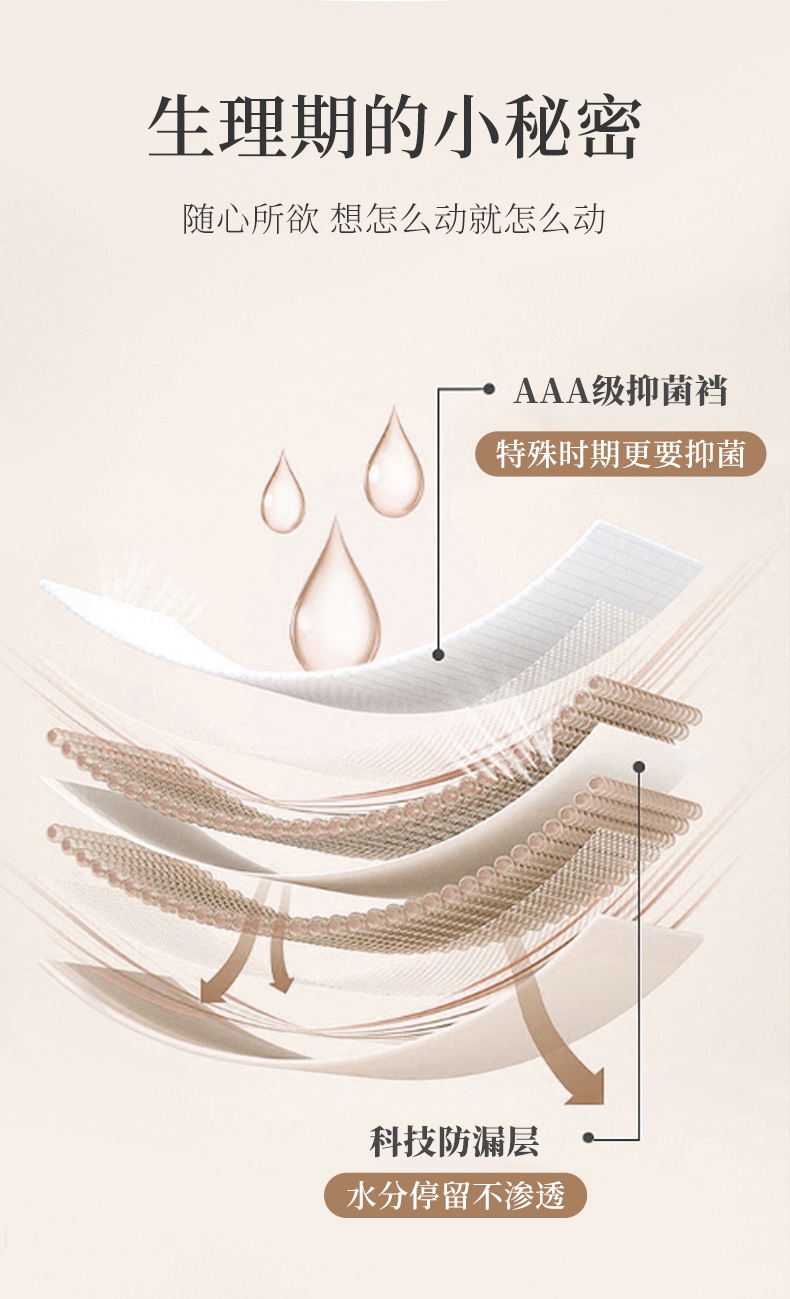女士莫代尔裸氨无缝生理裤三角内裤2356/3126/B034/C025/D001