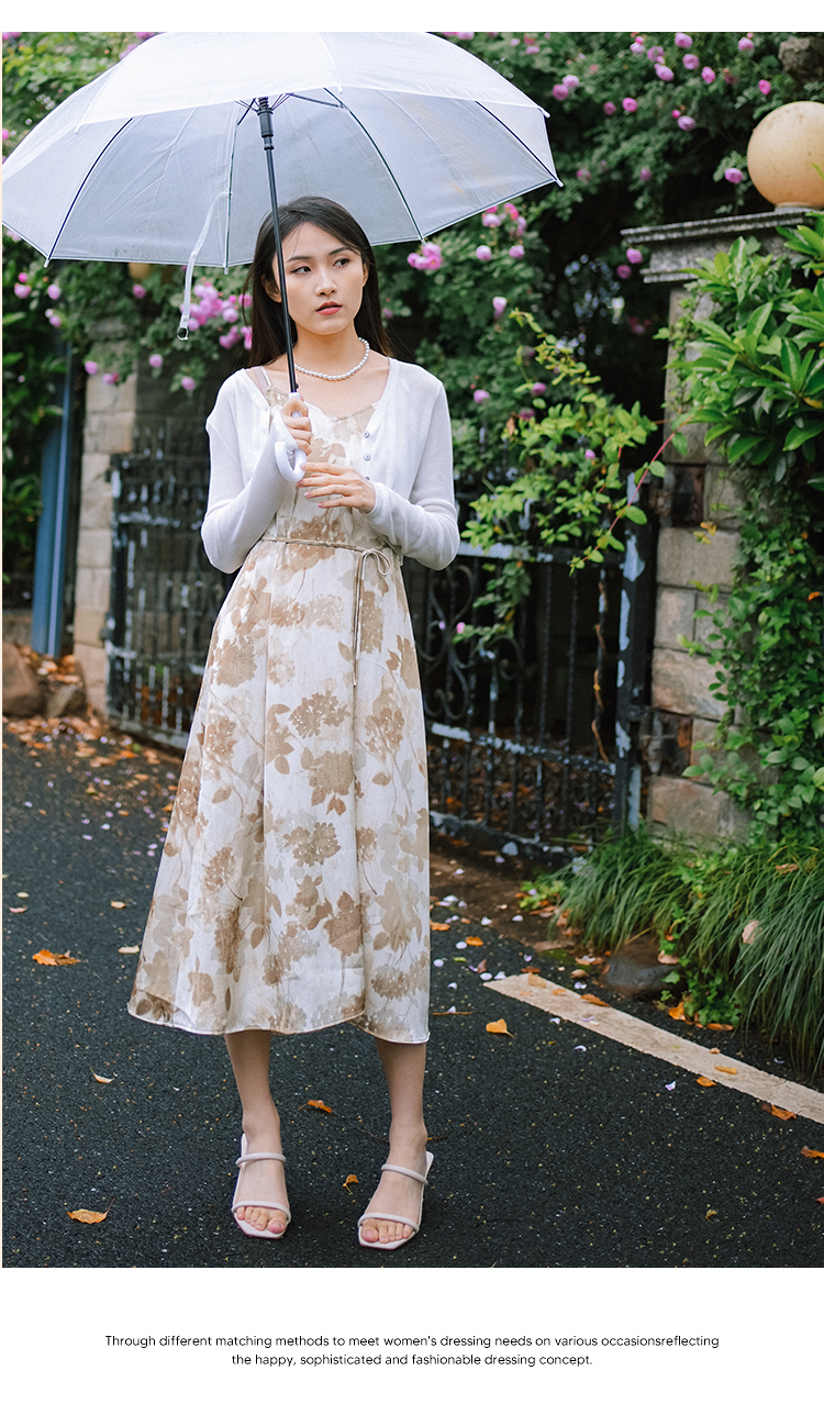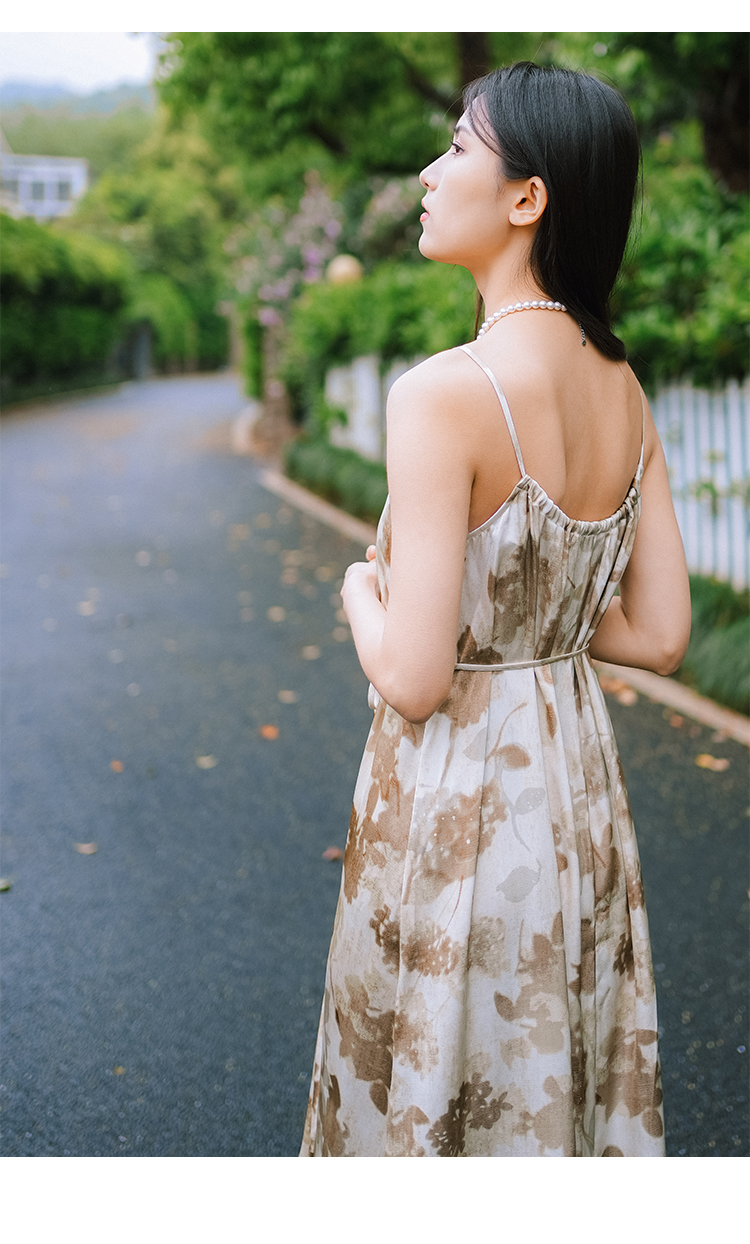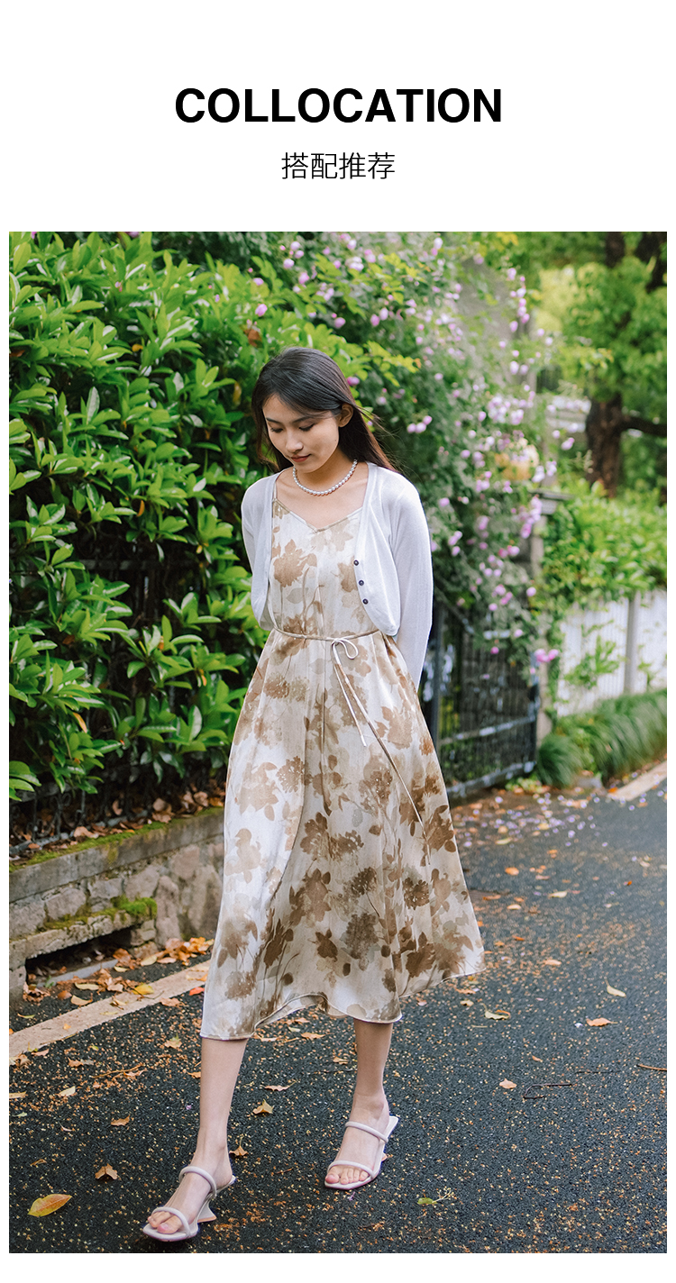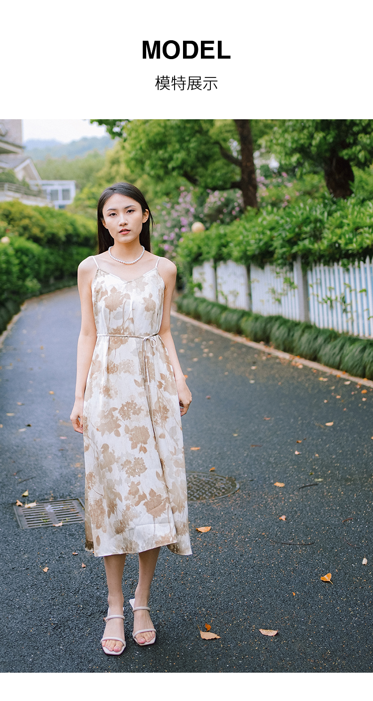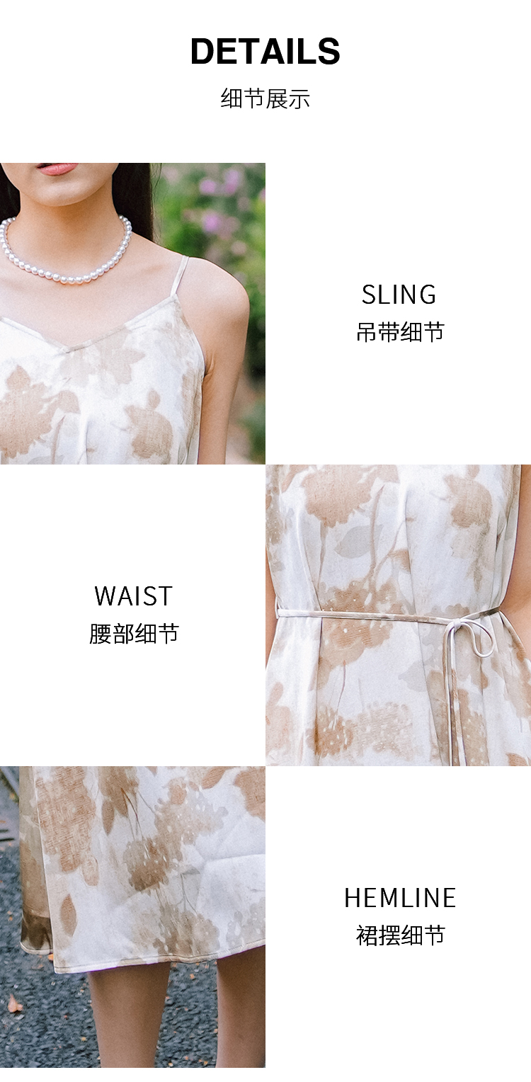 NUTS夏季新品时尚优雅修身气质碎花清新吊带连衣裙422101161