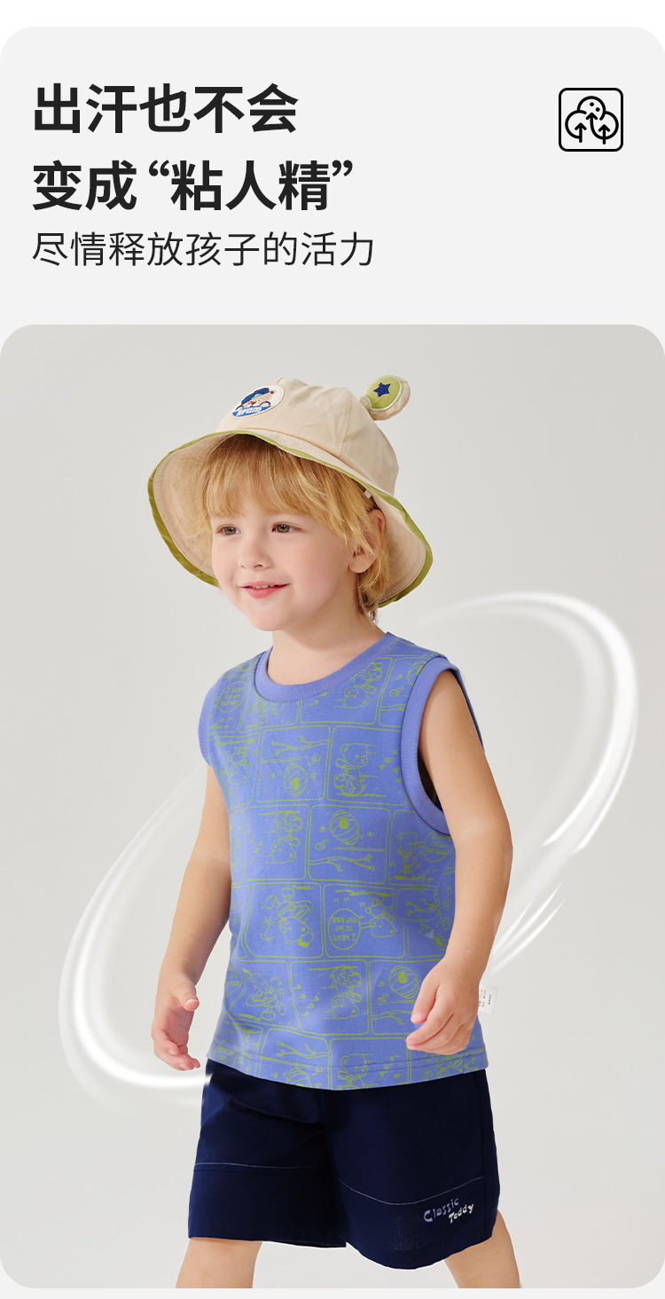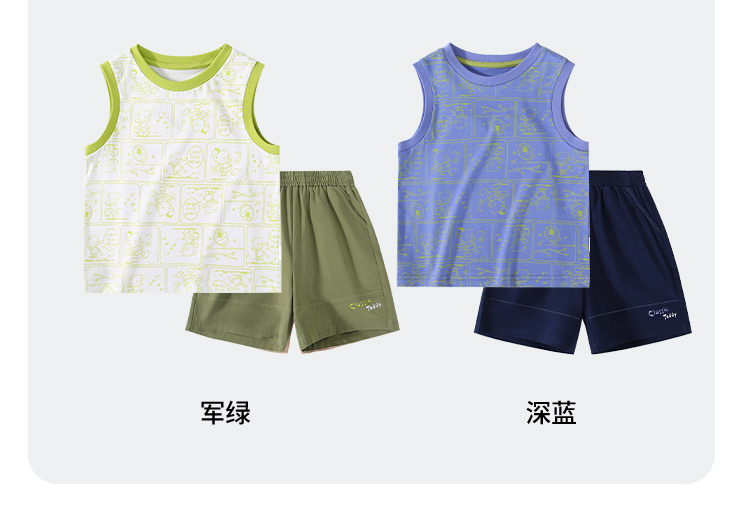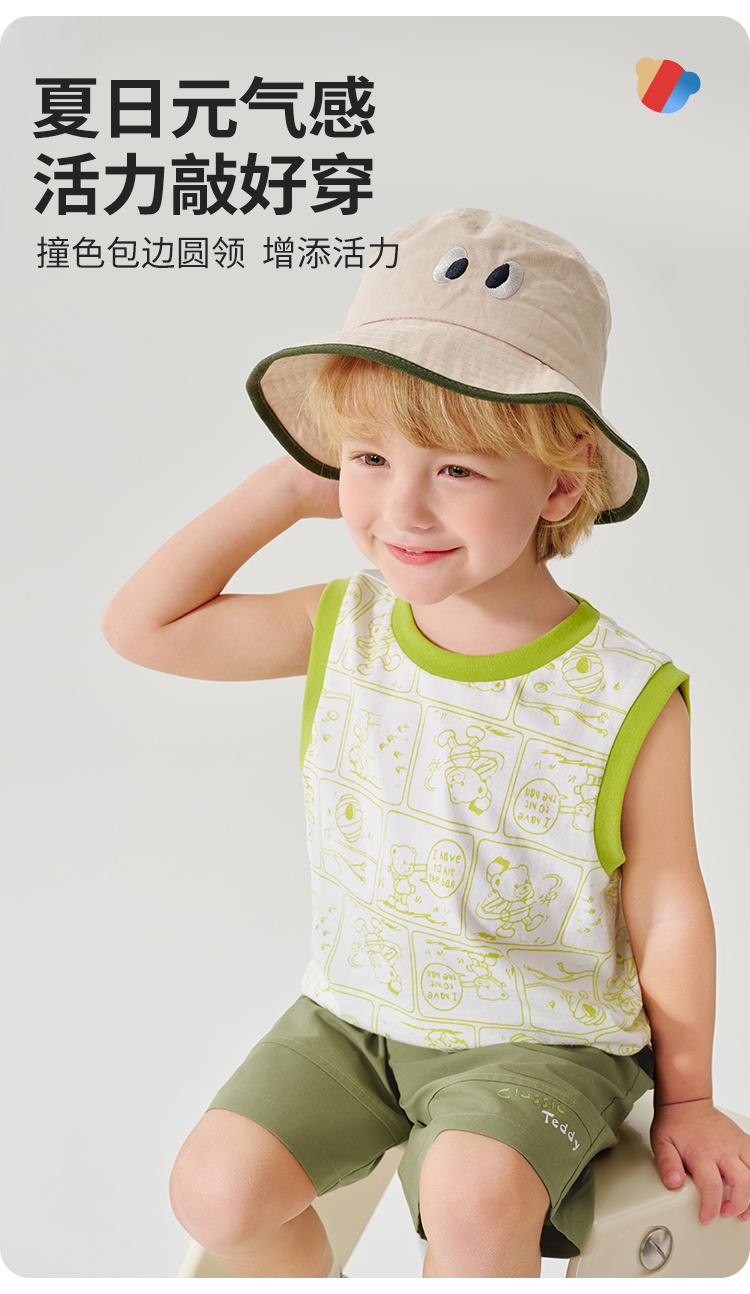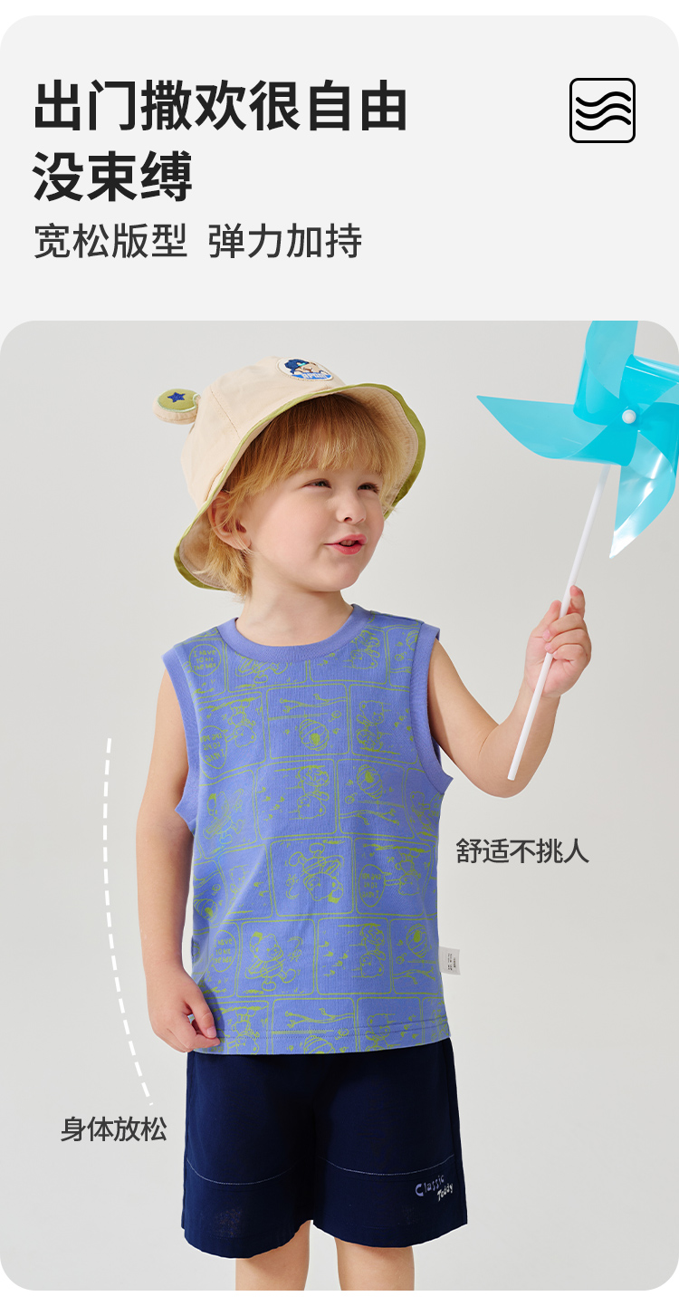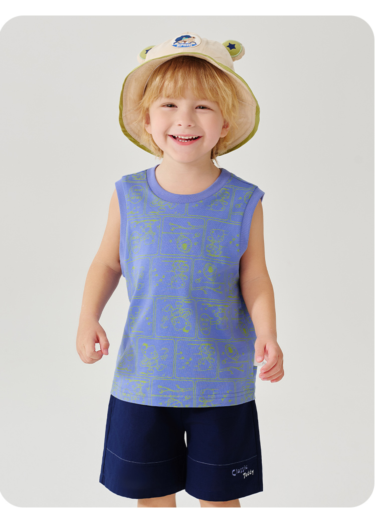 【100%棉 两件套】【90-130】【精典泰迪】男童夏季清凉纯棉背心短裤套装
