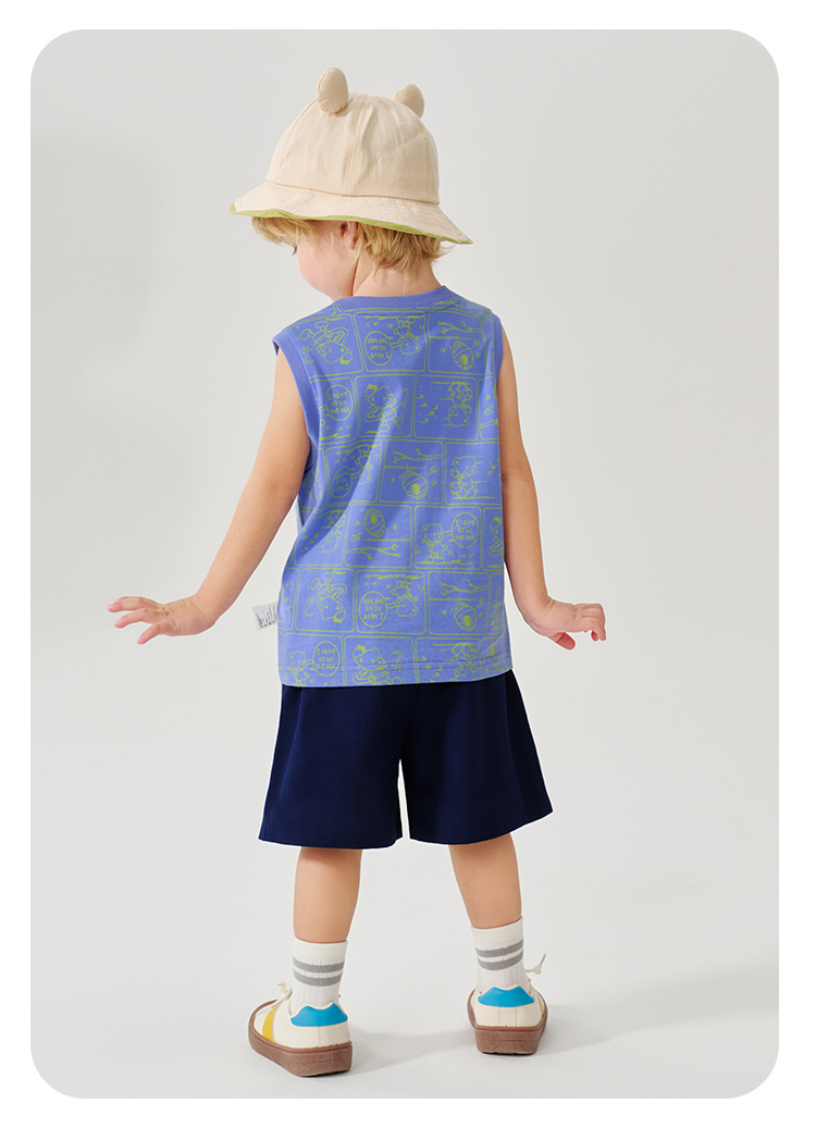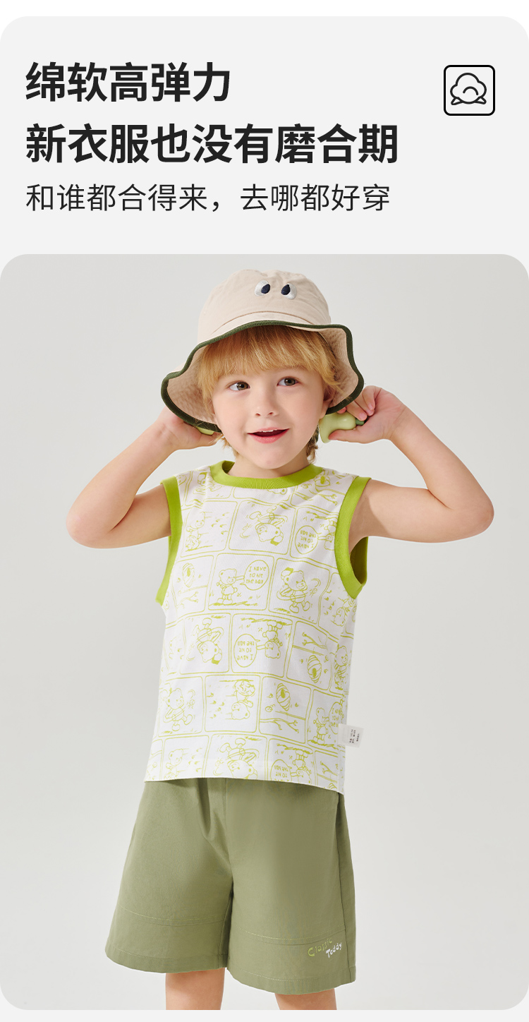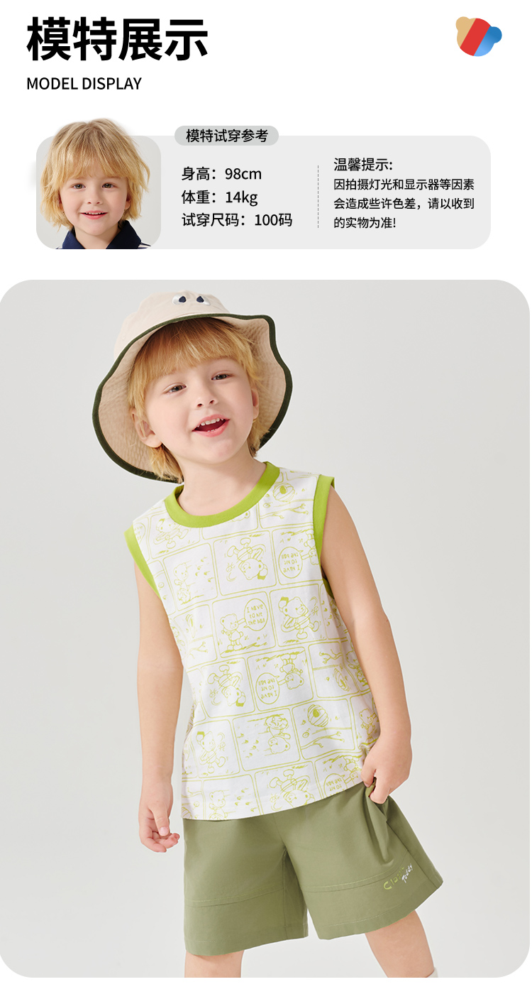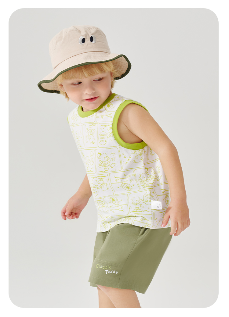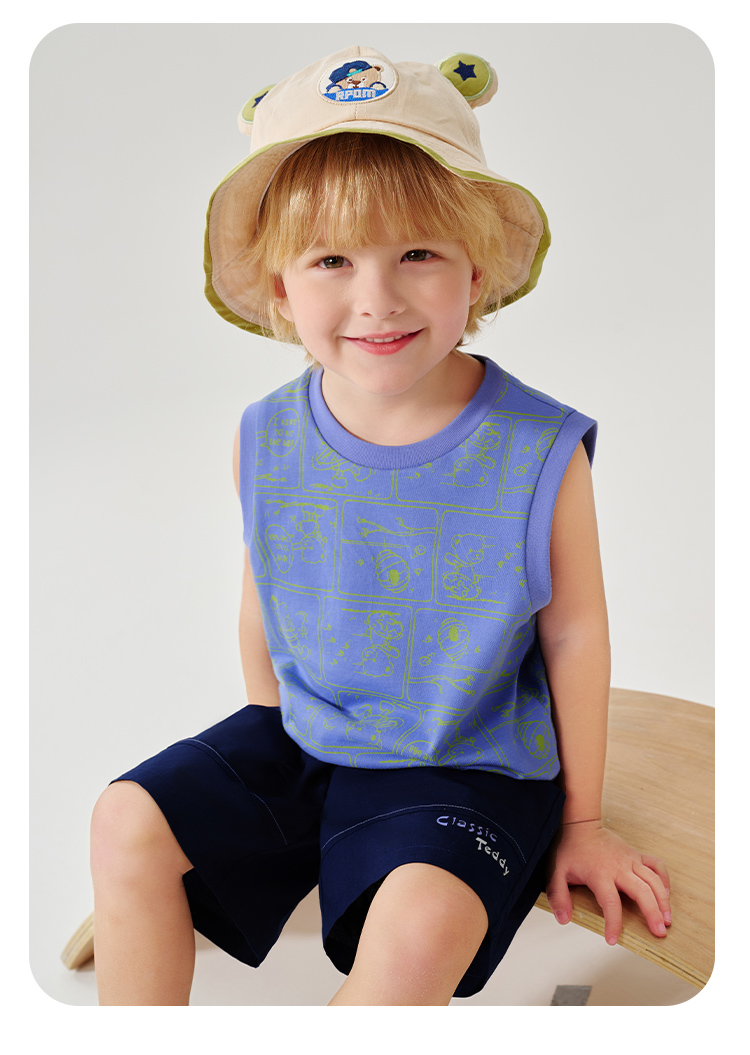 【100%棉 两件套】【90-130】【精典泰迪】男童夏季清凉纯棉背心短裤套装