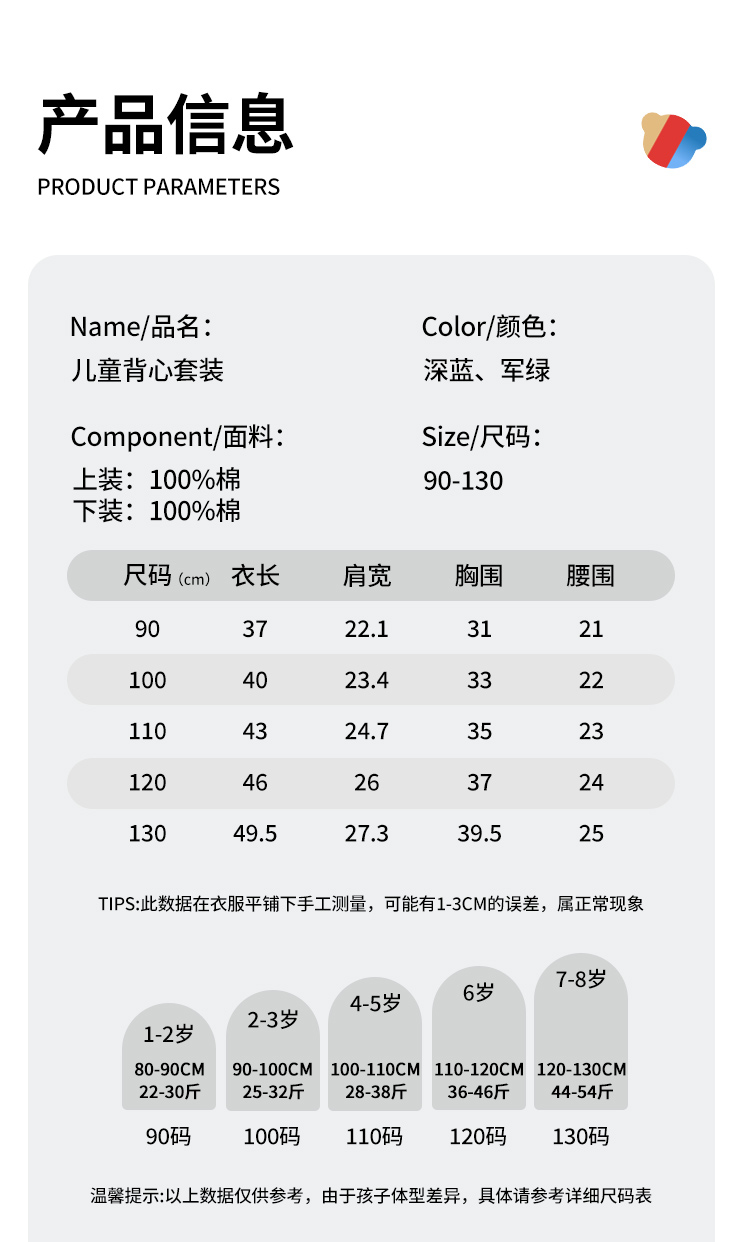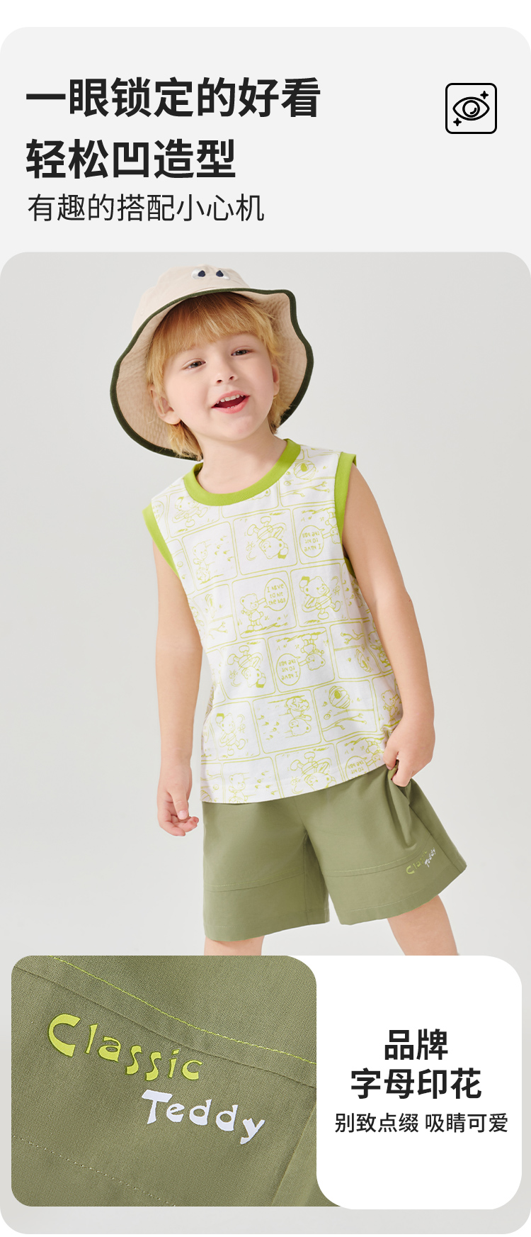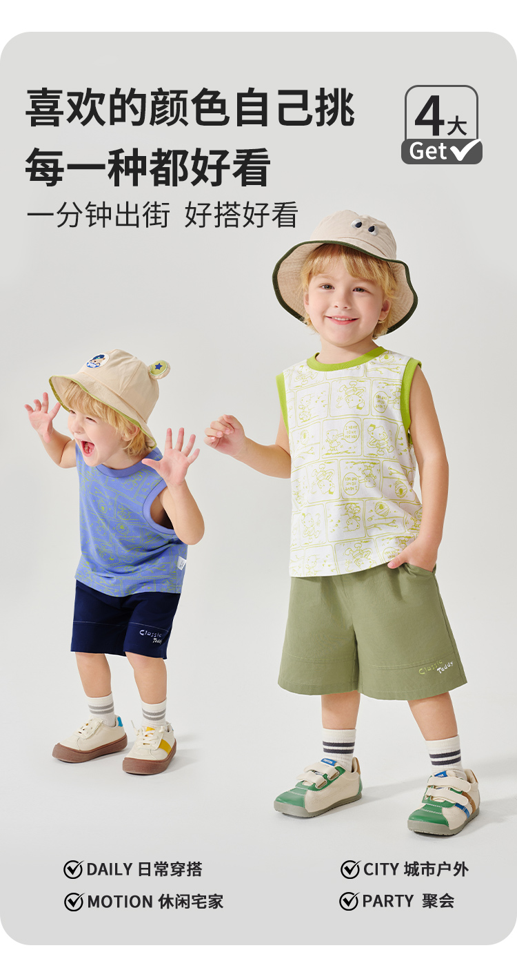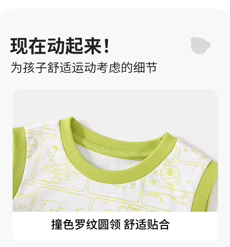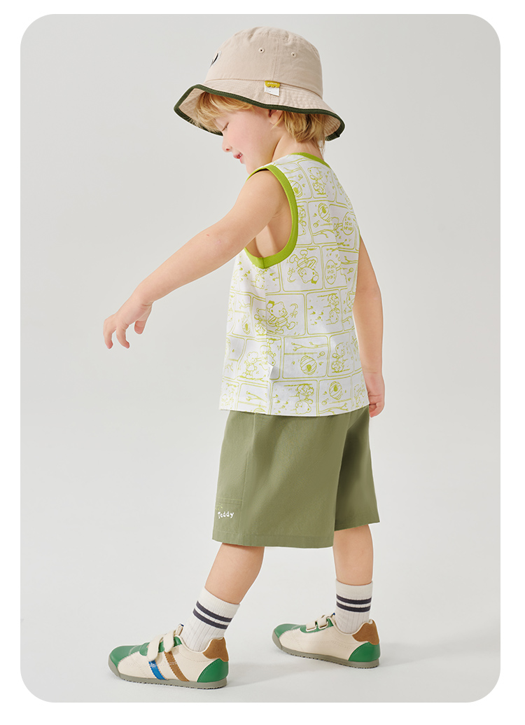 【100%棉 两件套】【90-130】【精典泰迪】男童夏季清凉纯棉背心短裤套装