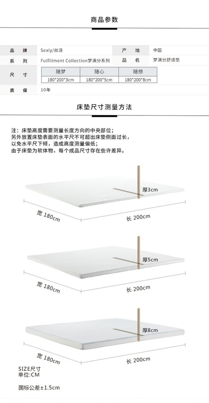 丝涟梦满分Sealy to go系列随心舒适垫 1800*2000*50mm