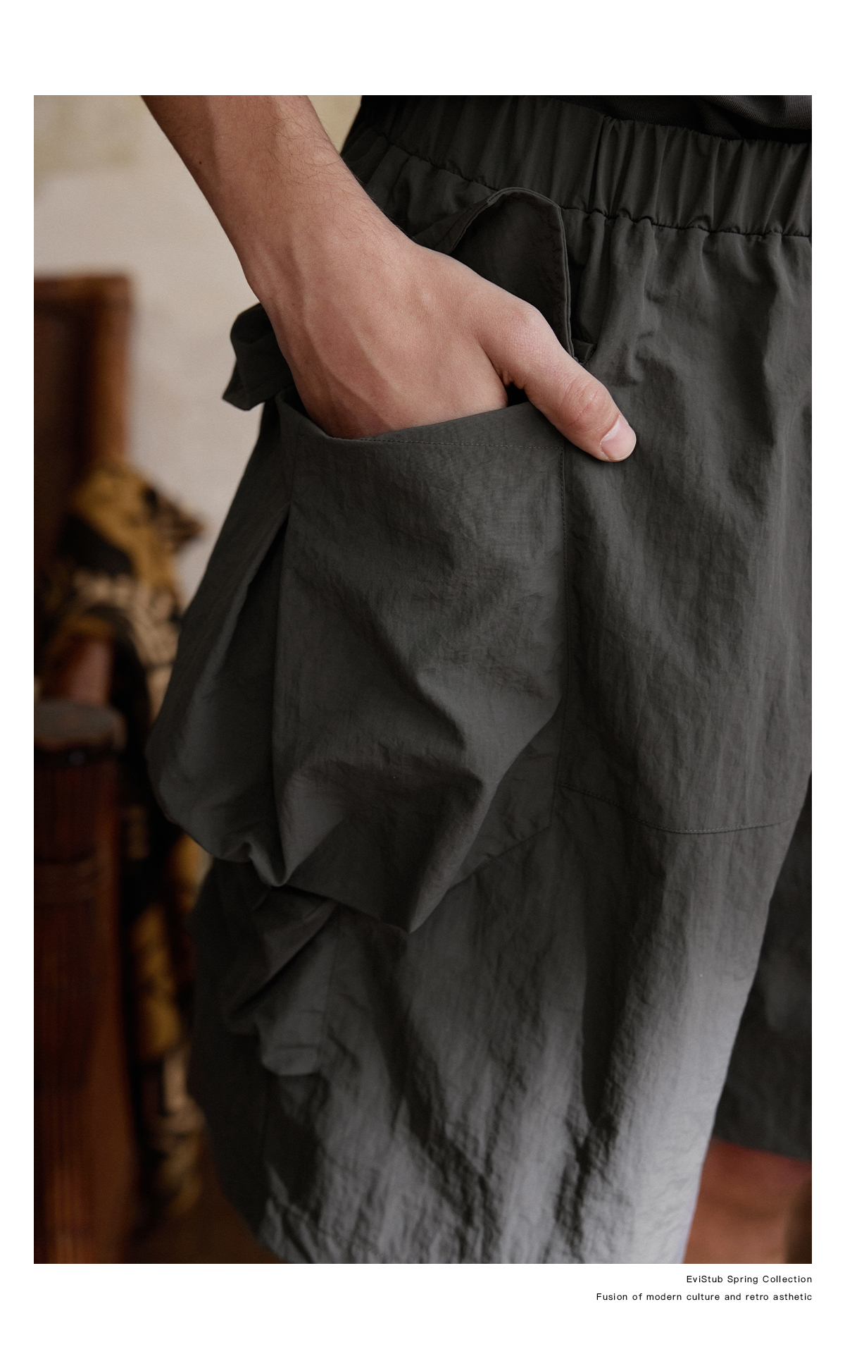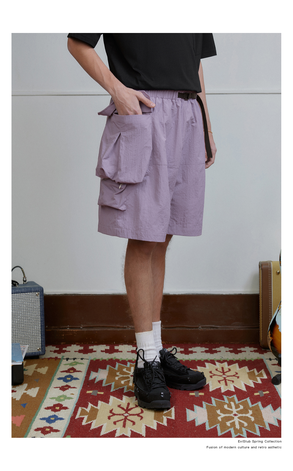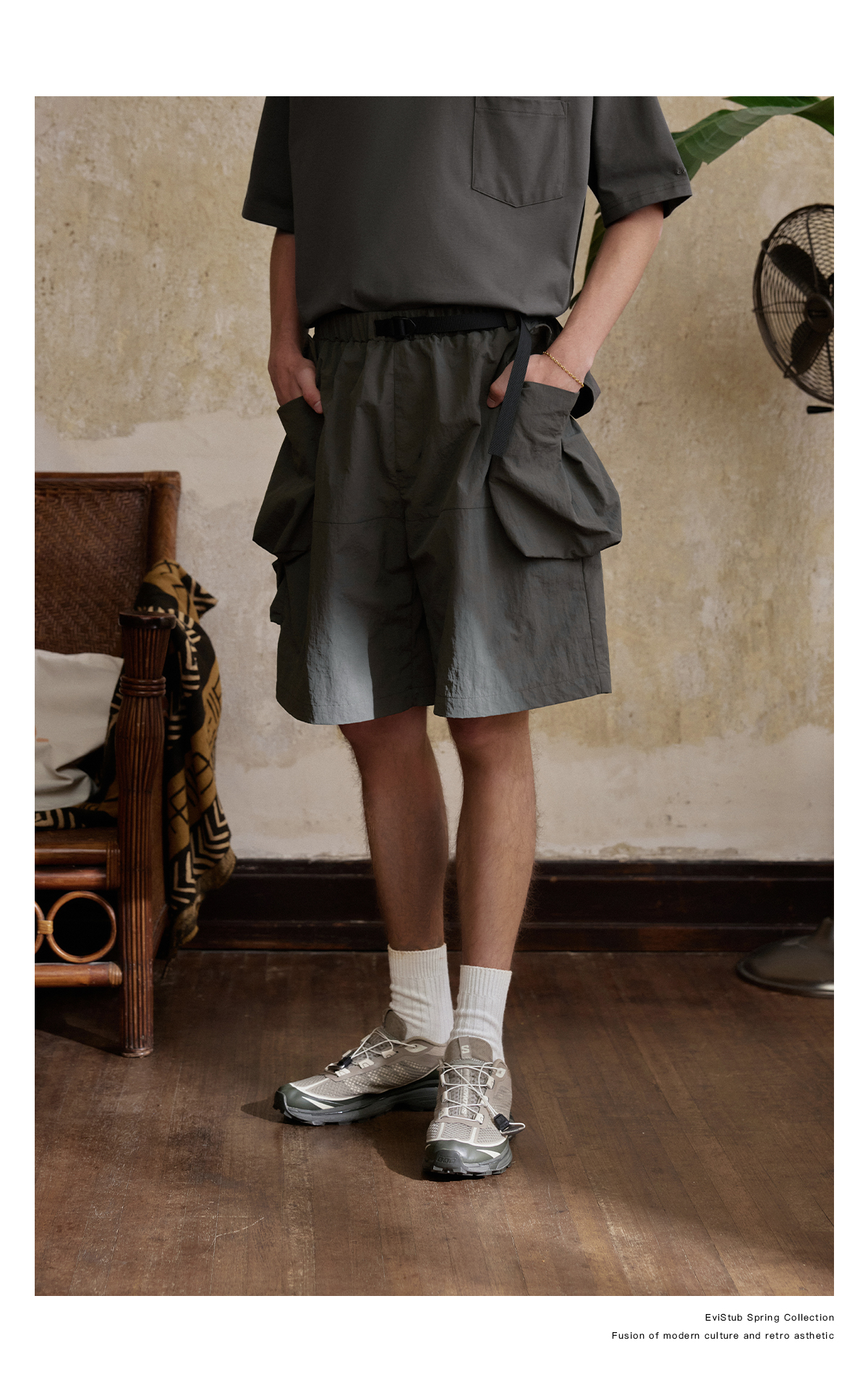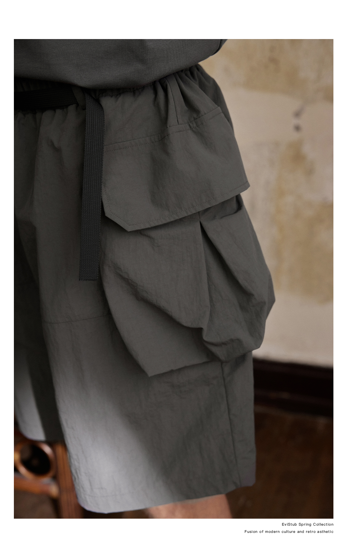 EVISTUB/E-4CDK141/三色复古机能调节口袋防泼工装宽松运动短裤