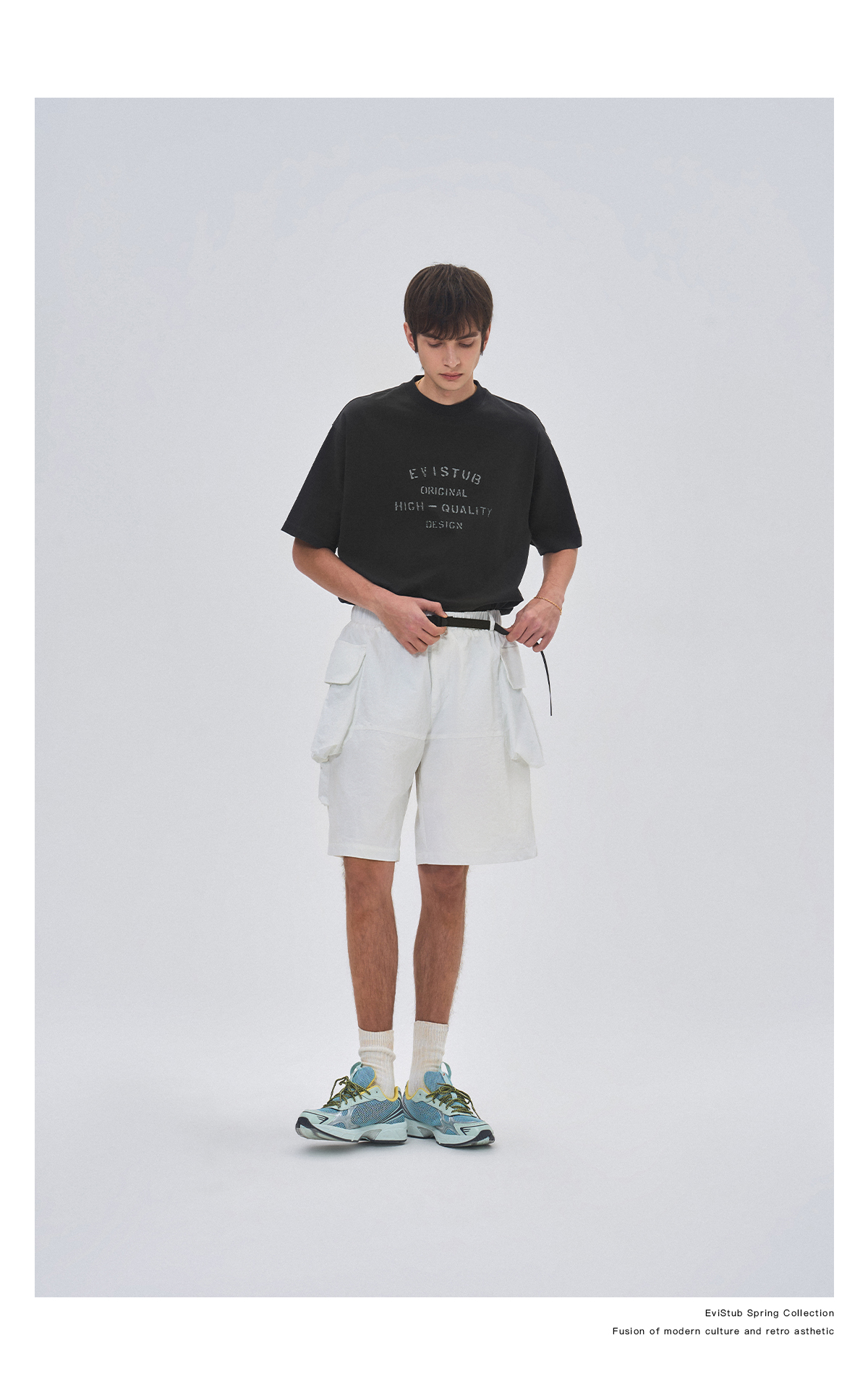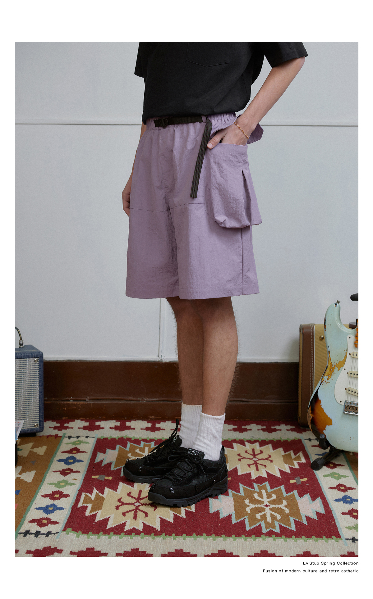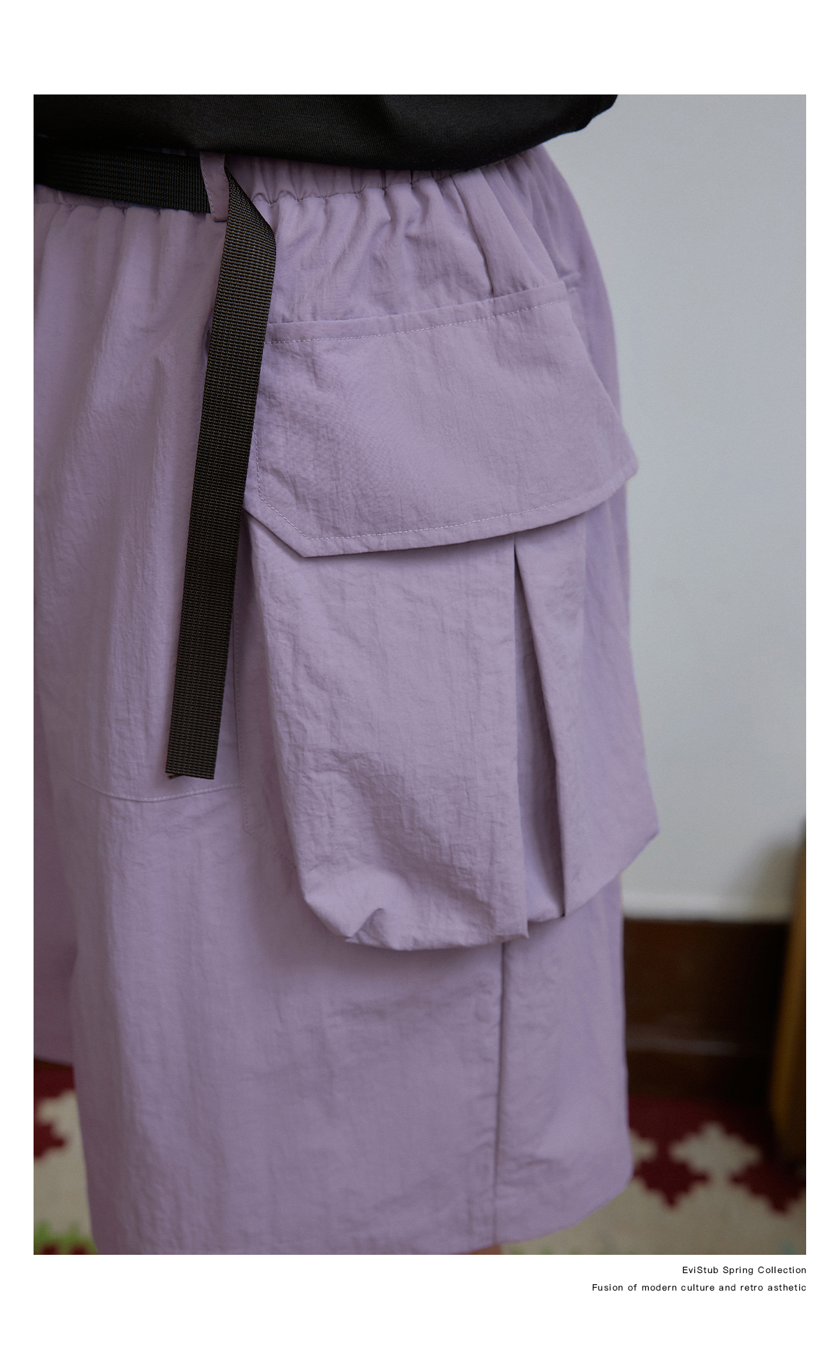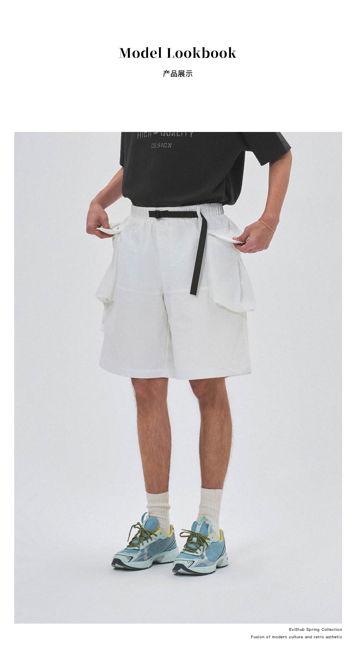EVISTUB/E-4CDK141/三色复古机能调节口袋防泼工装宽松运动短裤