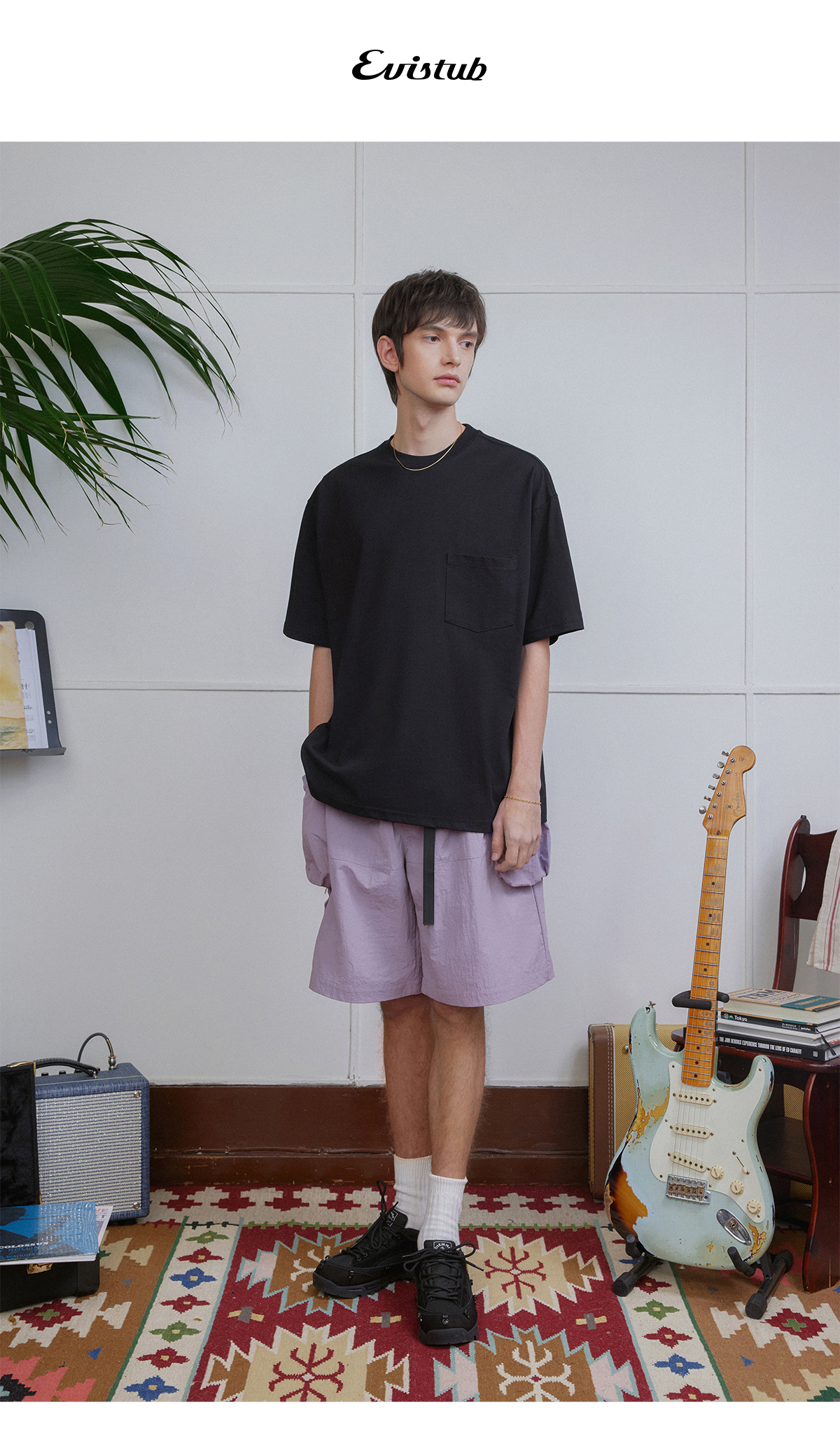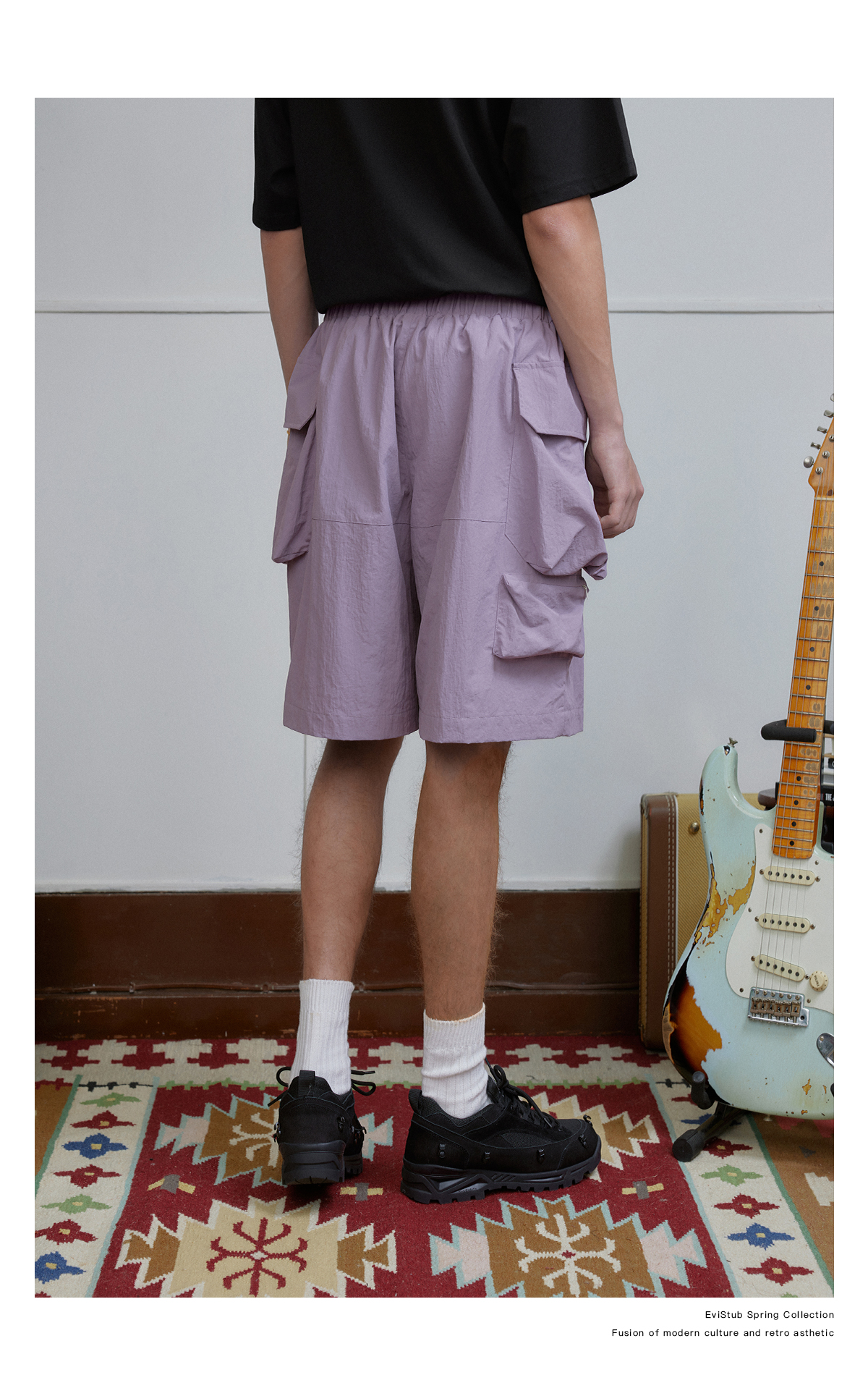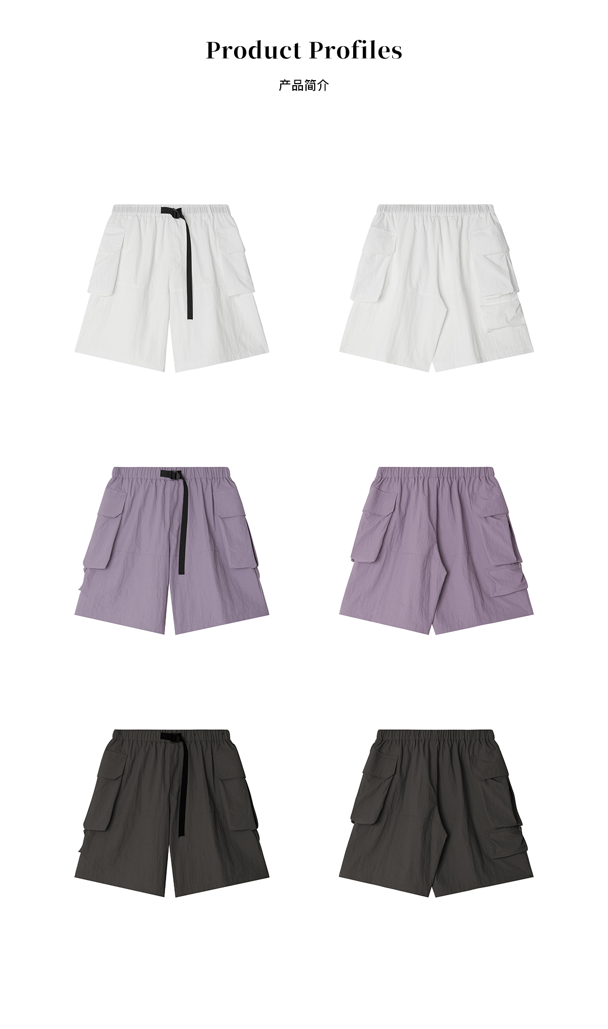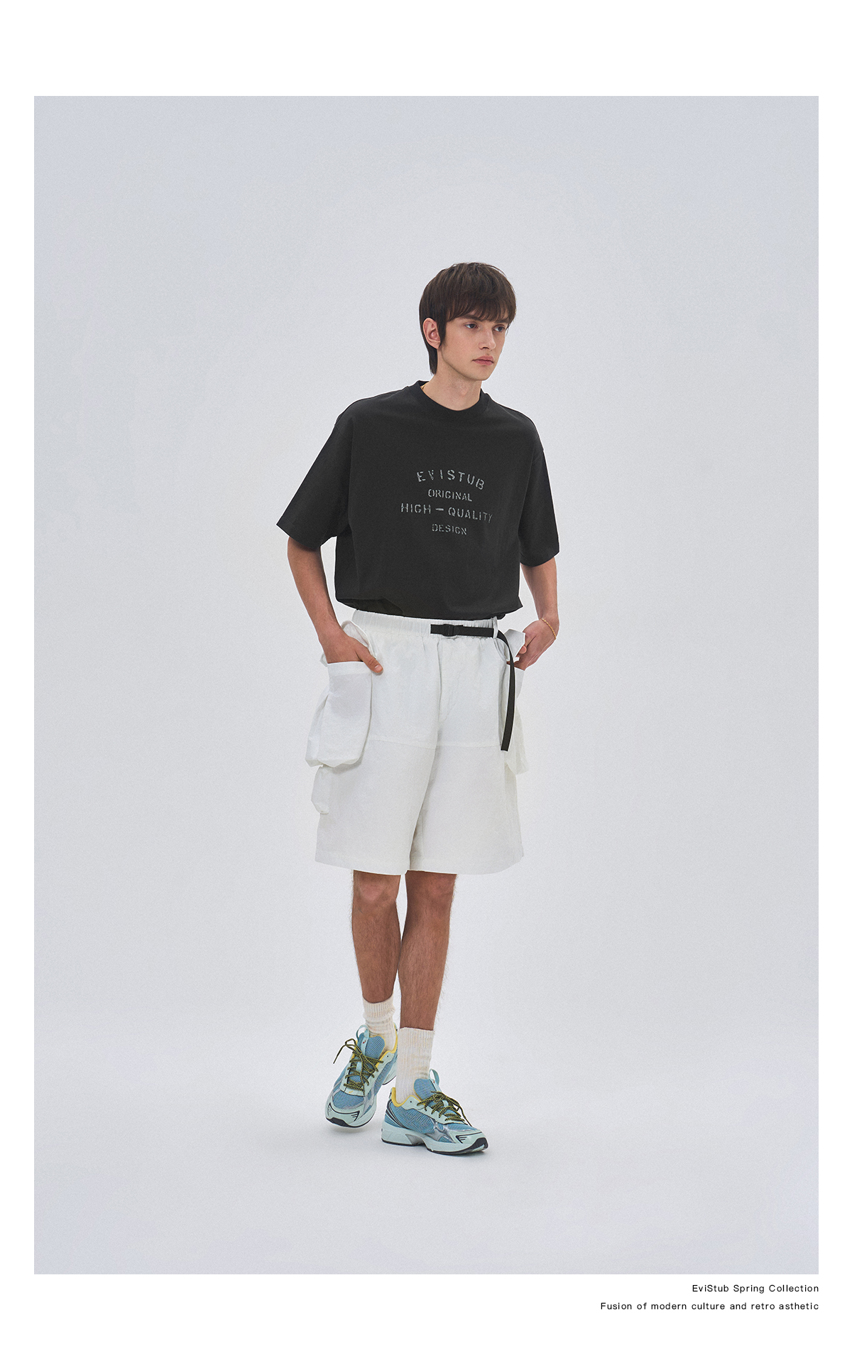 EVISTUB/E-4CDK141/三色复古机能调节口袋防泼工装宽松运动短裤