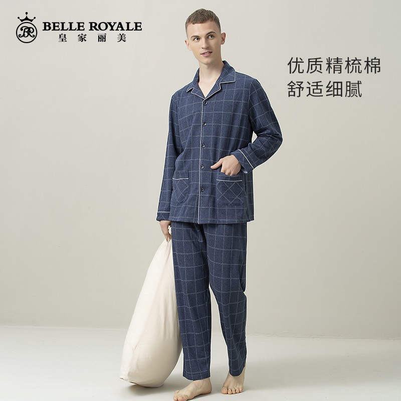 皇家丽美男士春款精梳棉长袖家居服套装JJT9750