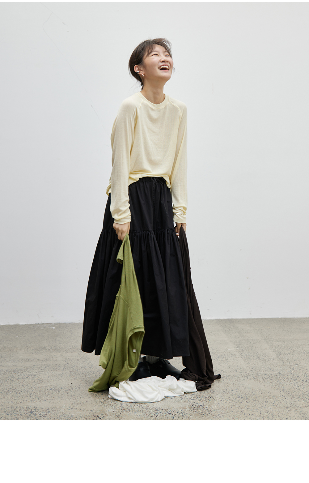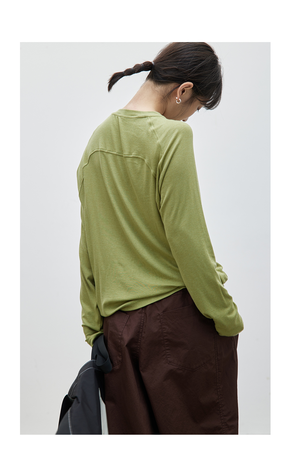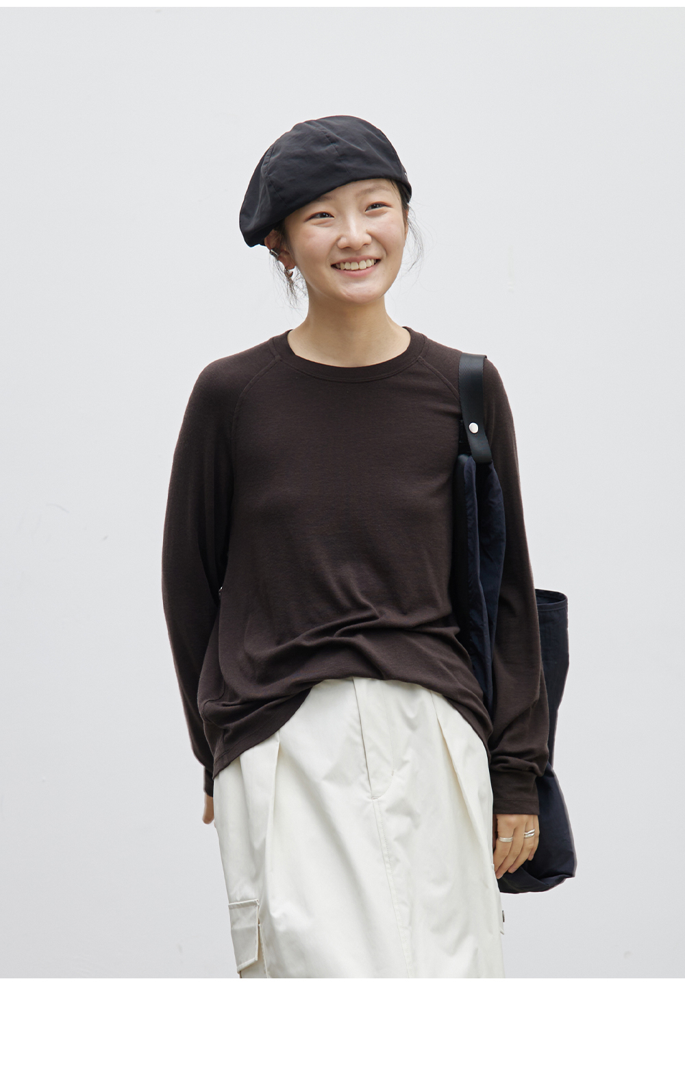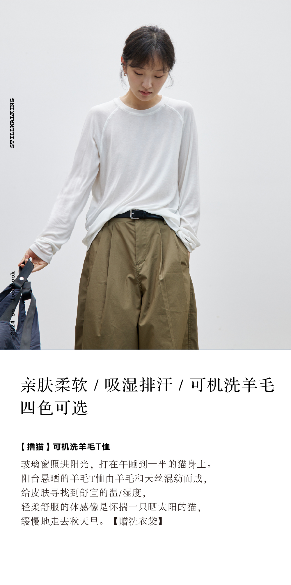 步履不停/4C16065C/圆领柔软薄款羊毛长袖T恤