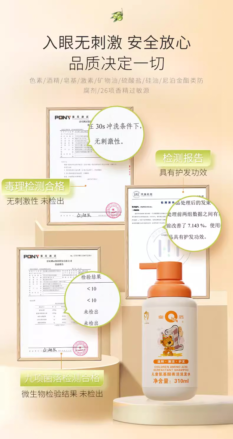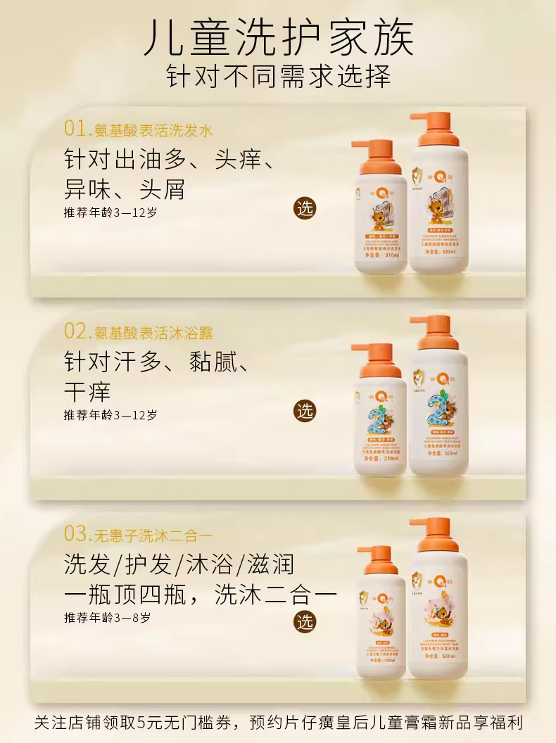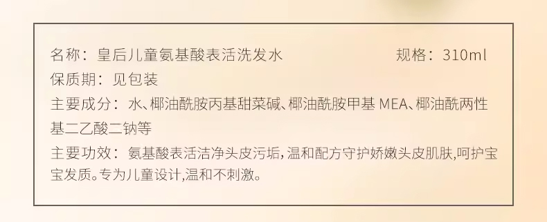 片仔癀皇后牌儿童氨基酸表活洗发水310ml520ml温和洗发水男女孩通用