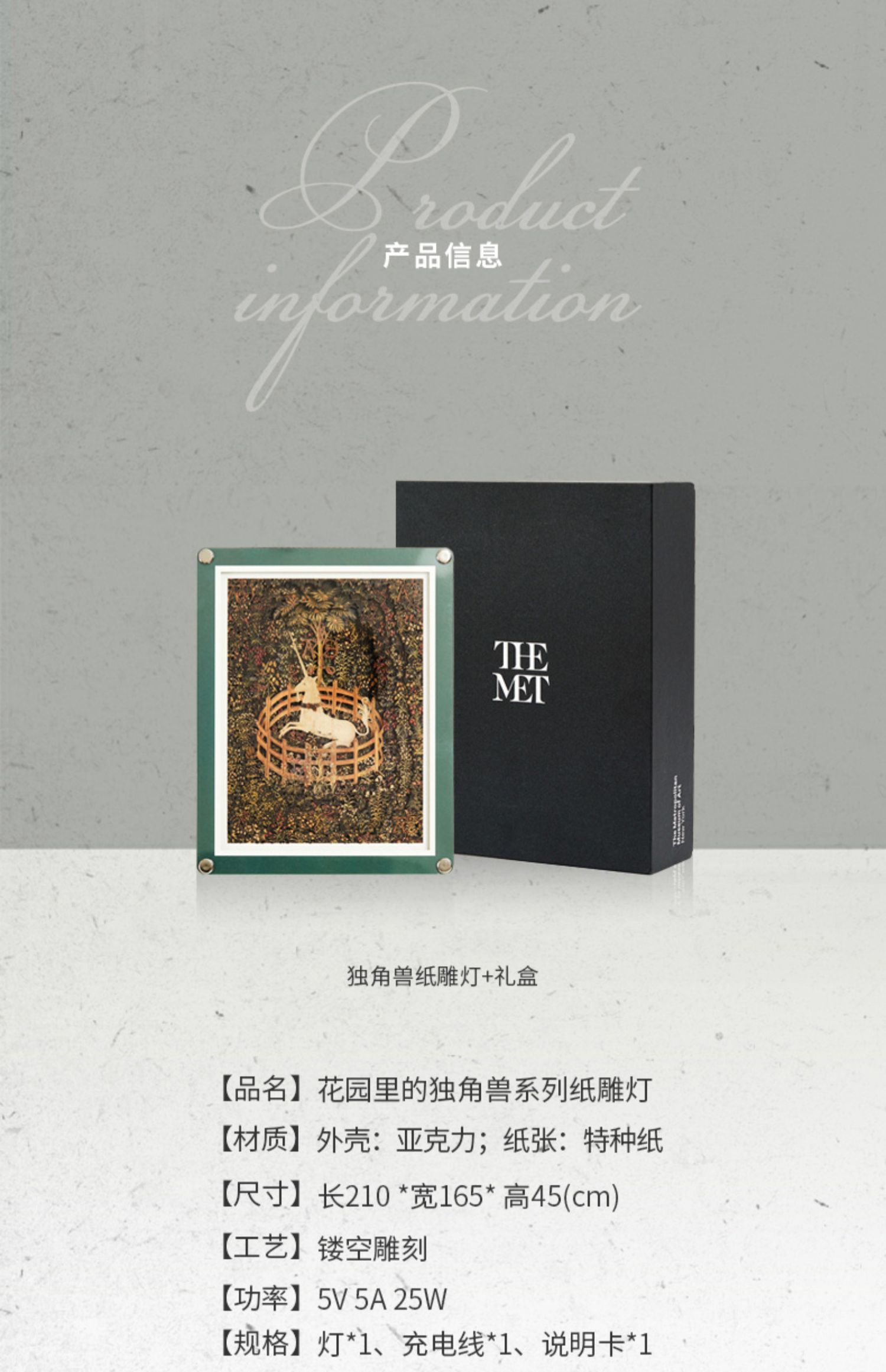 大都会艺术博物馆独角兽纸雕灯创意摆件礼品中秋节送闺蜜女友生日礼物