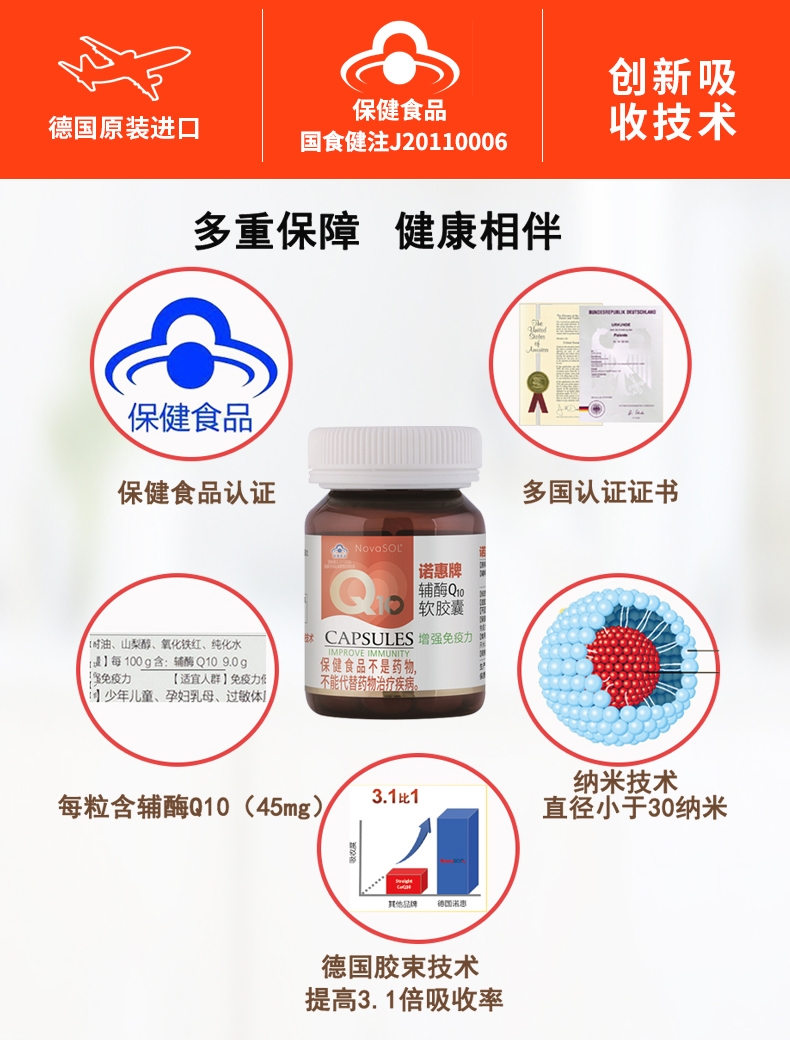 德国诺惠牌辅酶Q10软胶囊60粒