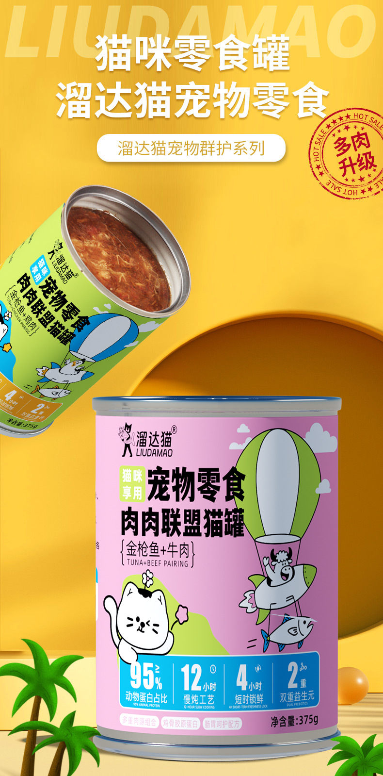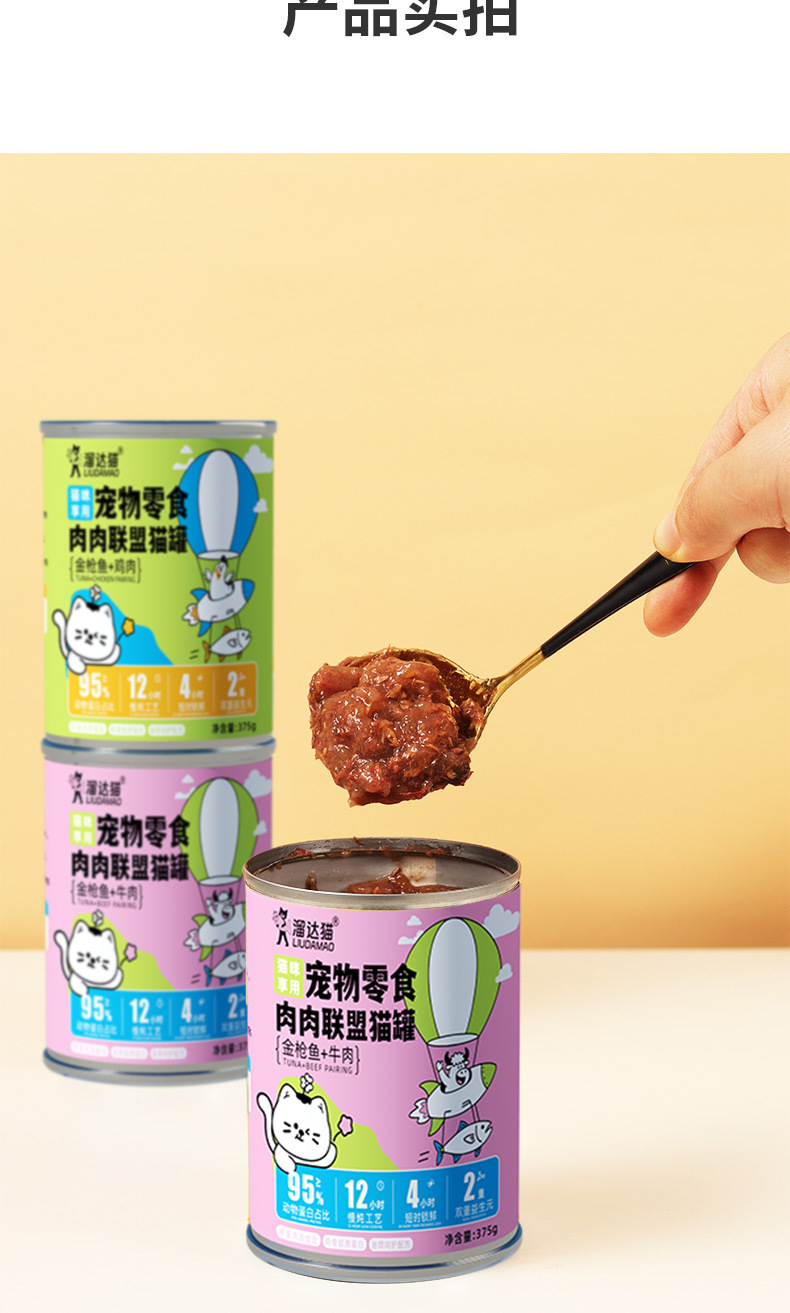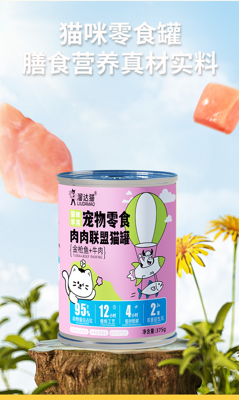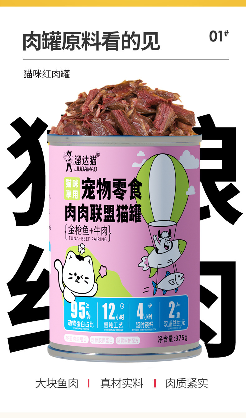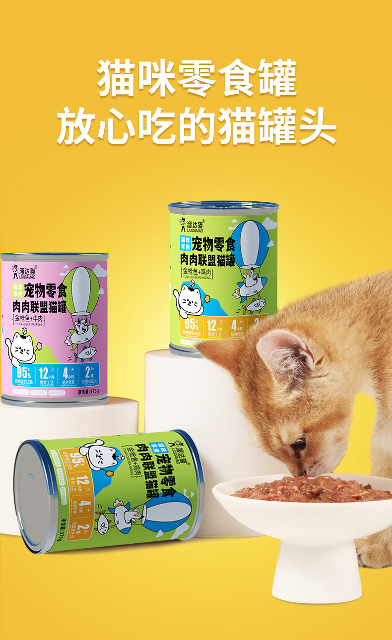 溜达猫猫咪红肉罐头 375g*6罐箱装 2种口味 低脂高蛋白 补水零食罐
