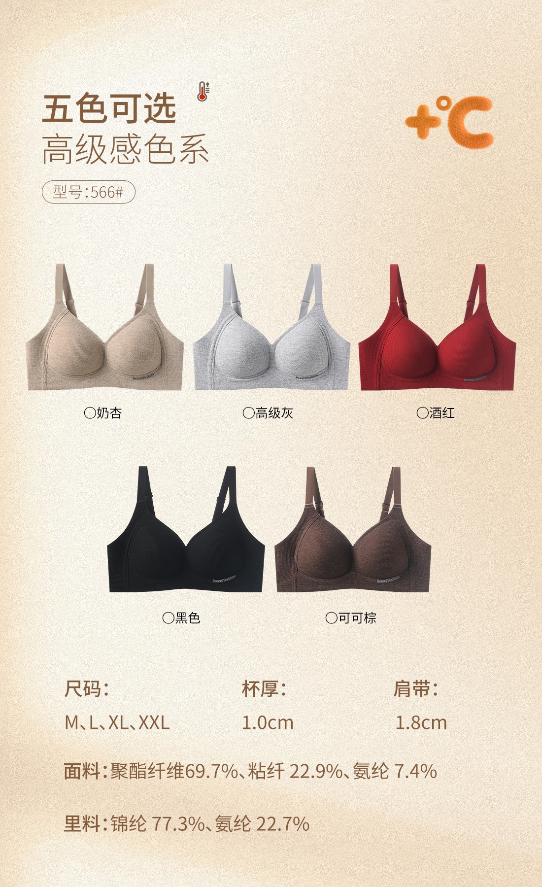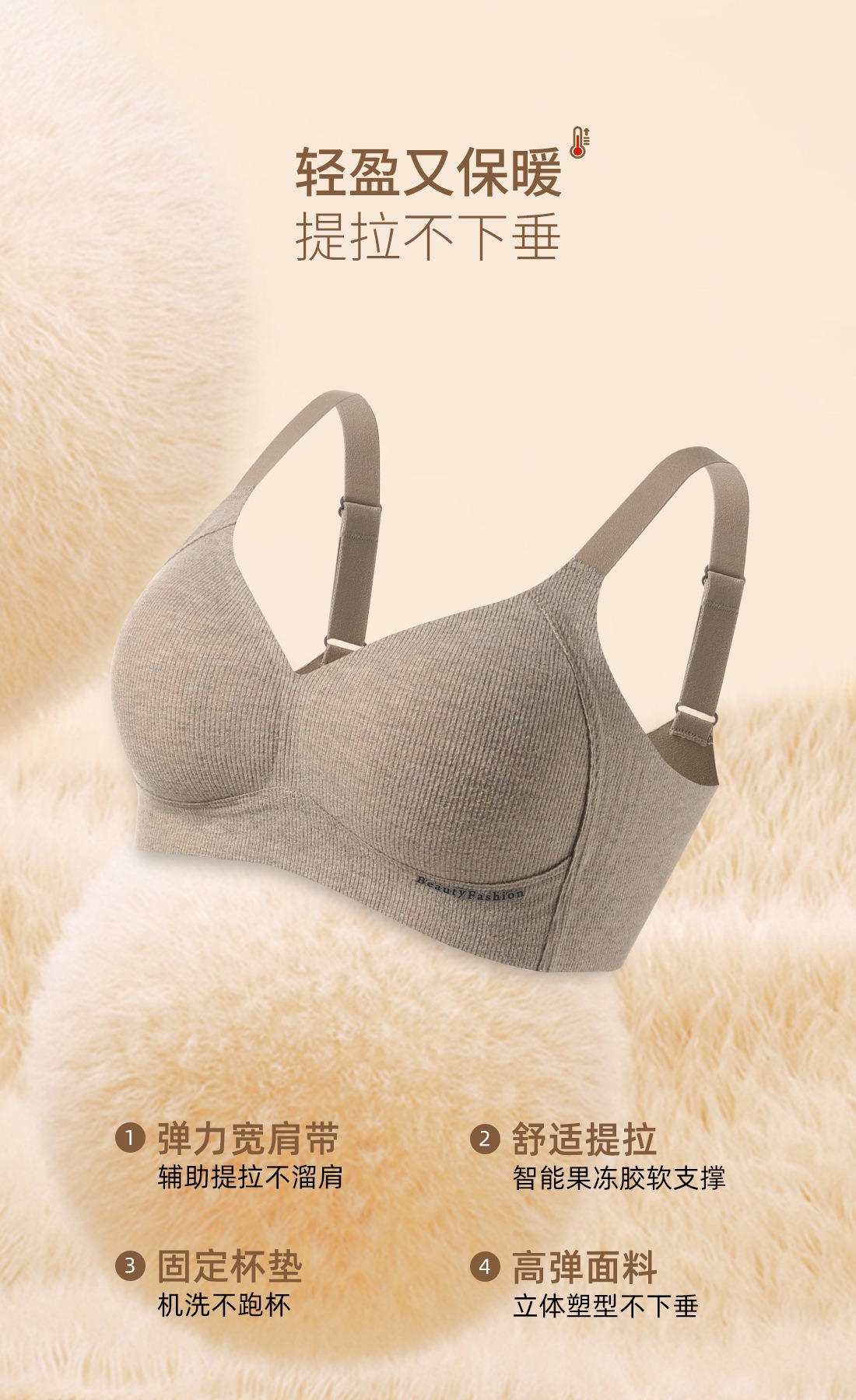 【超值69元2件!】秋冬果冻胶条软支撑无痕内衣 反重力提拉 爆改下垂胸 秋冬磨毛暖融融 轻薄固定杯 不显臃肿 5色可选