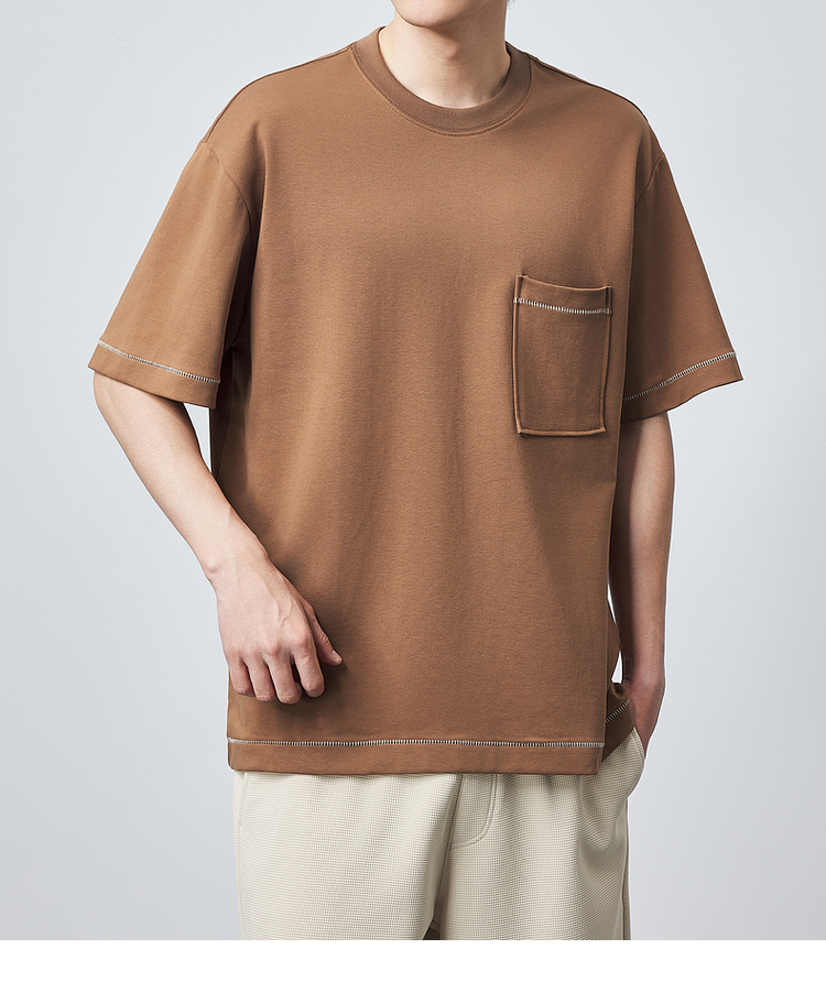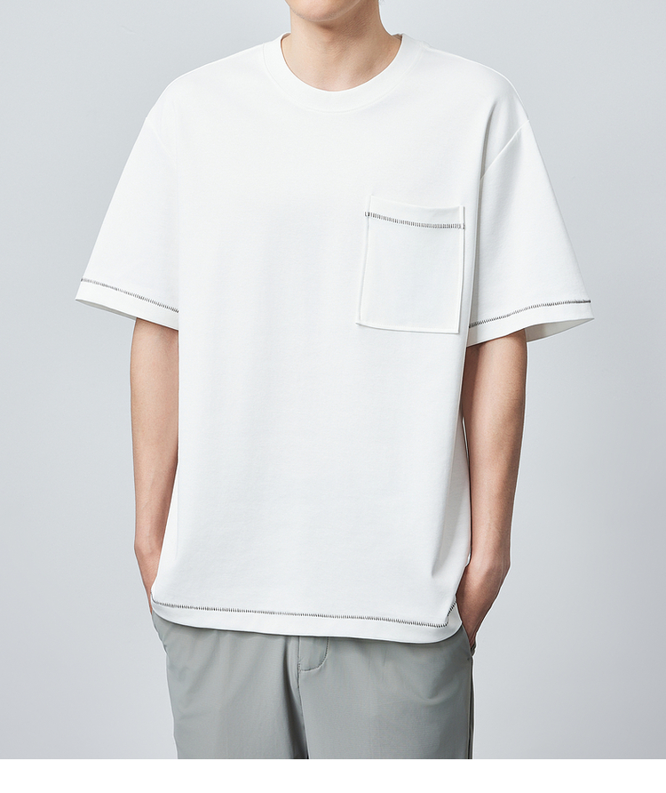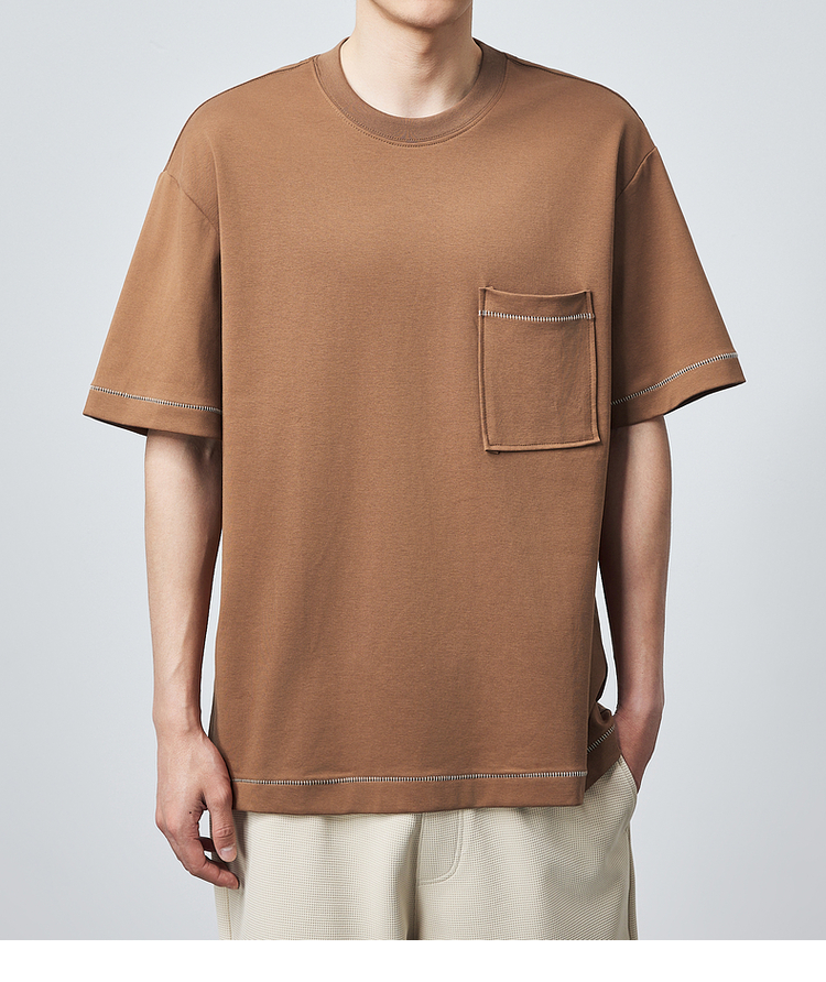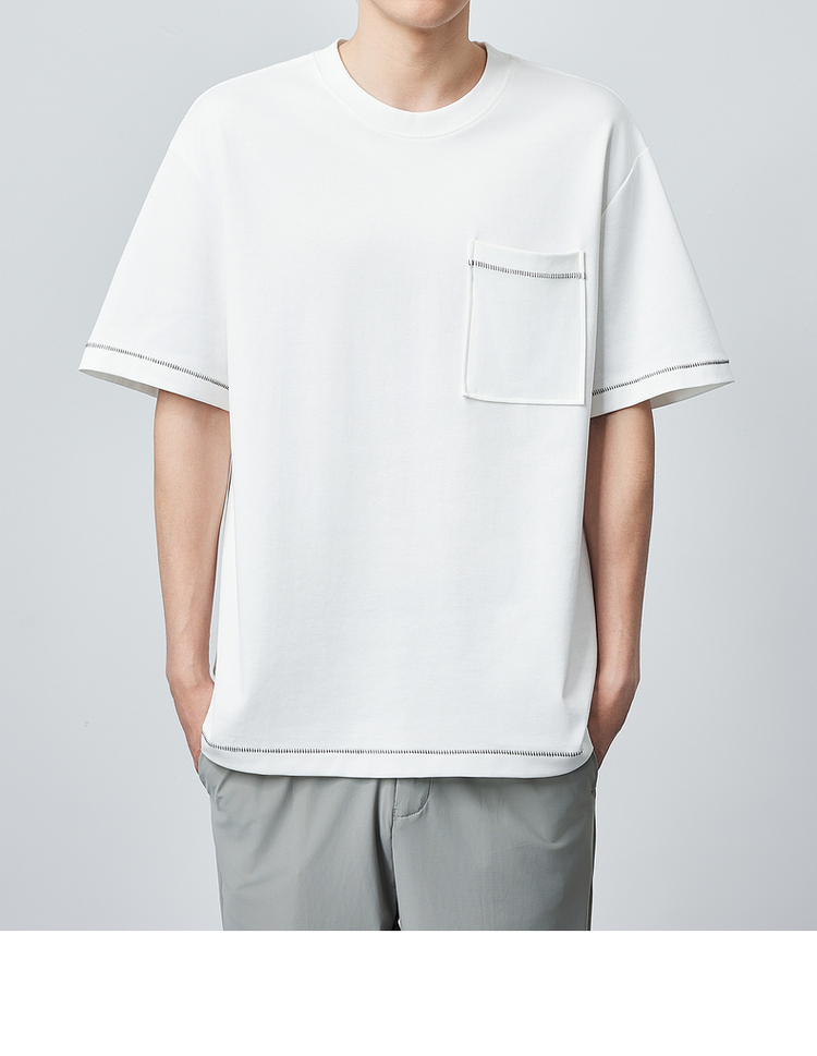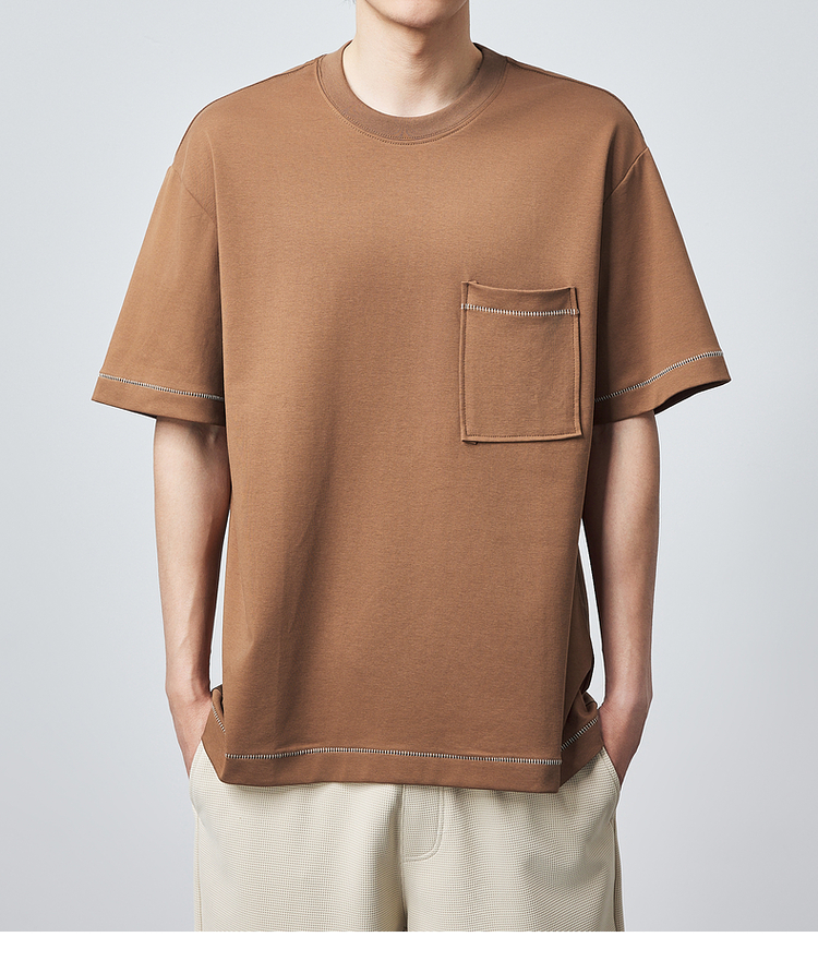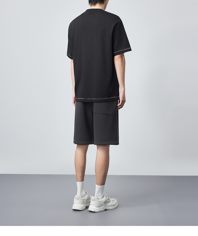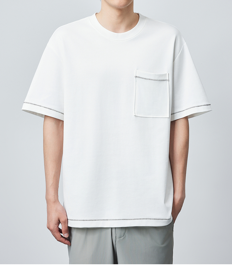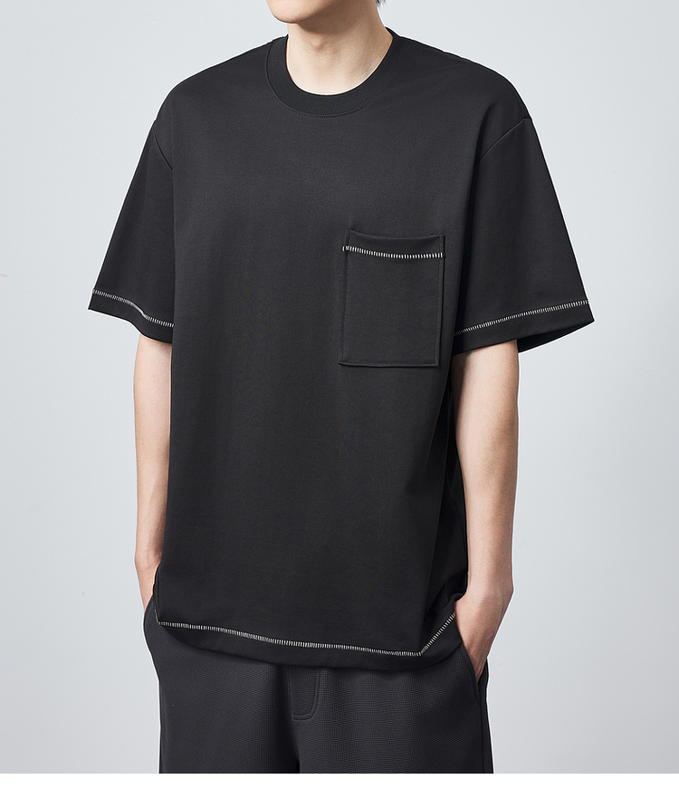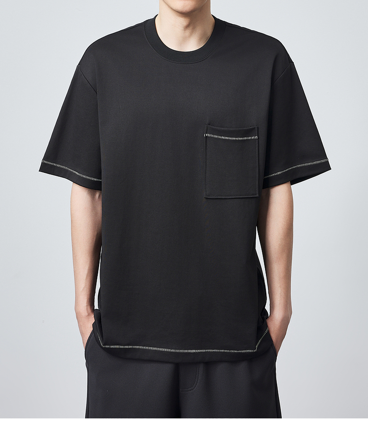 墨麦客男装双面针织圆领短袖男士2024夏季新款明线串缝上衣t恤男