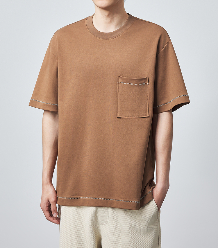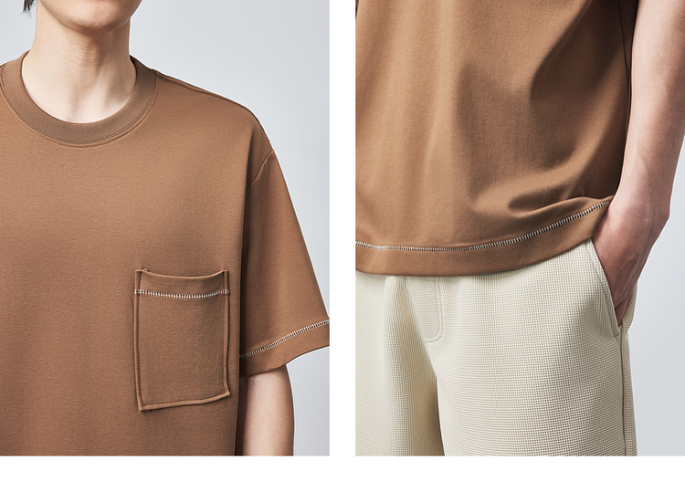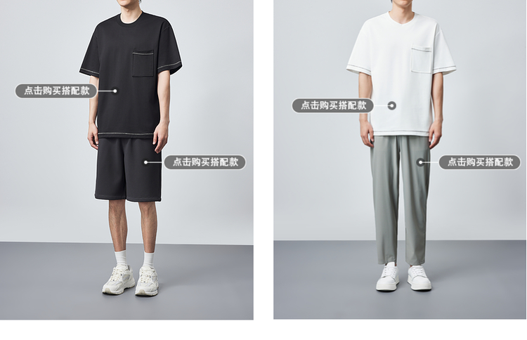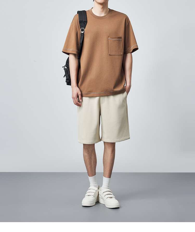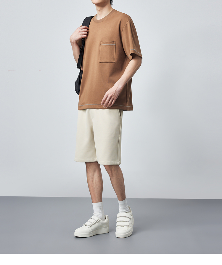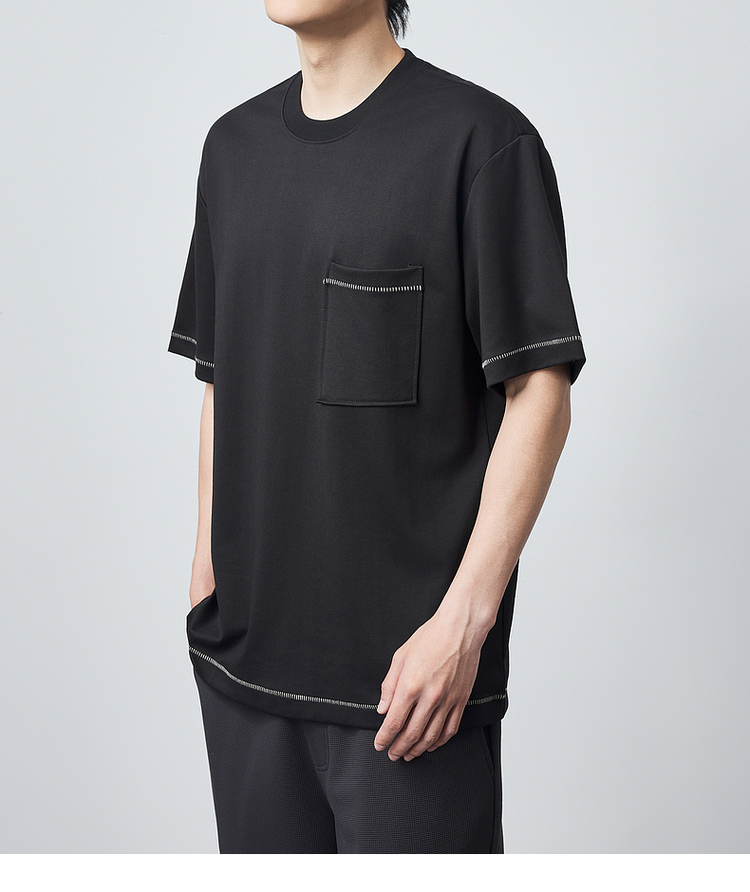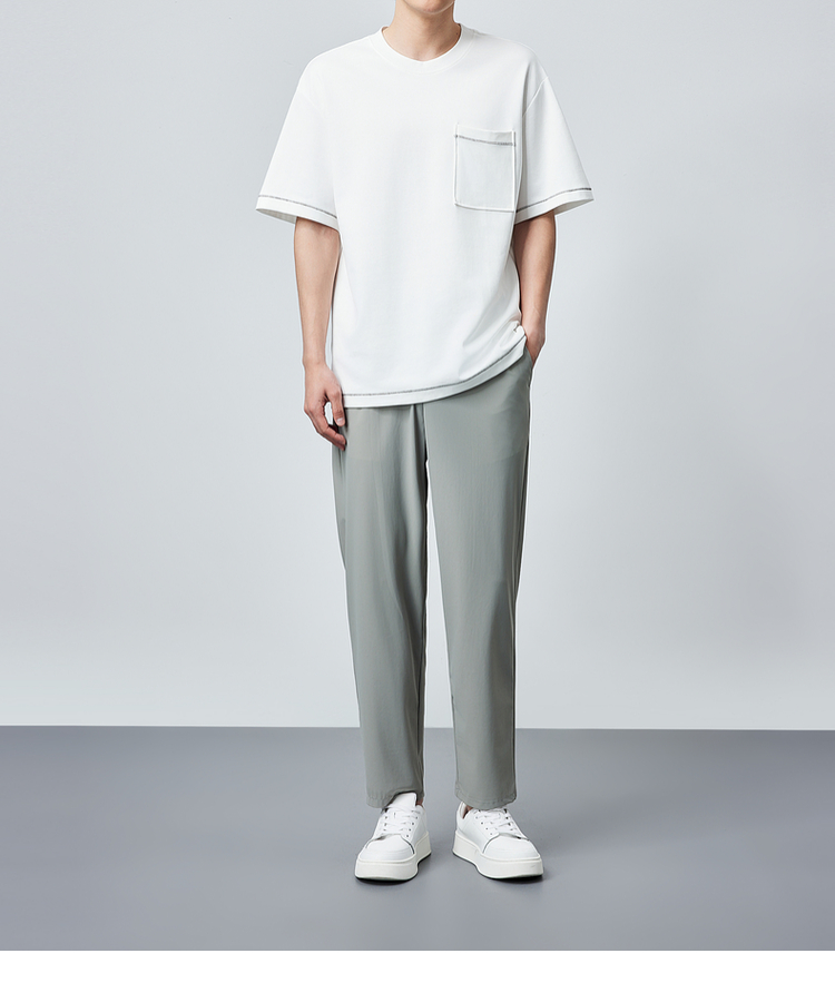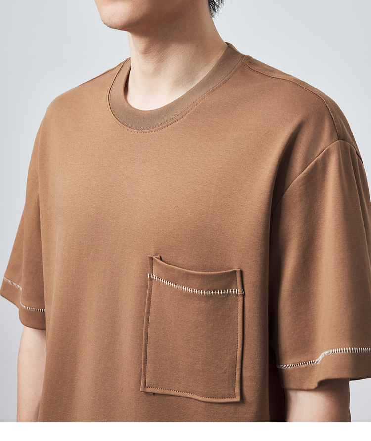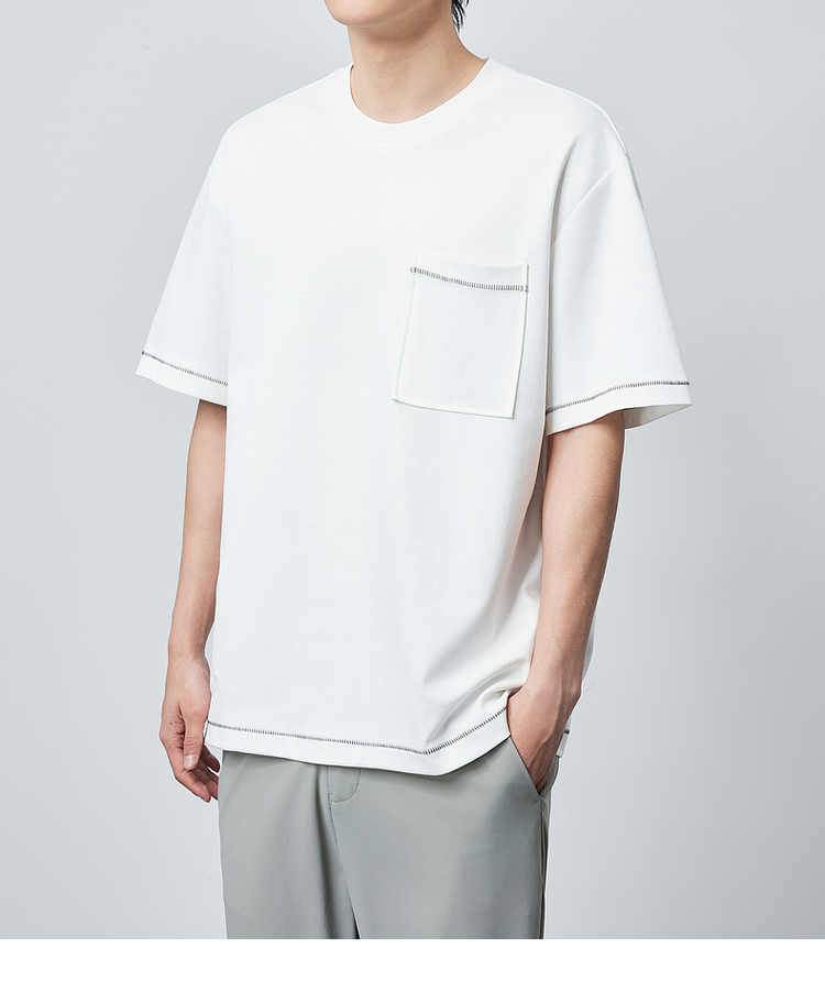 墨麦客男装双面针织圆领短袖男士2024夏季新款明线串缝上衣t恤男