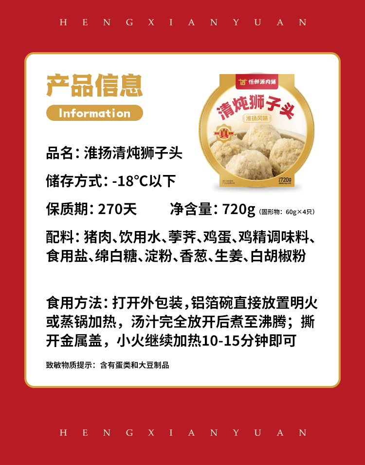 【精品装】淮扬清炖狮子头720g/盒