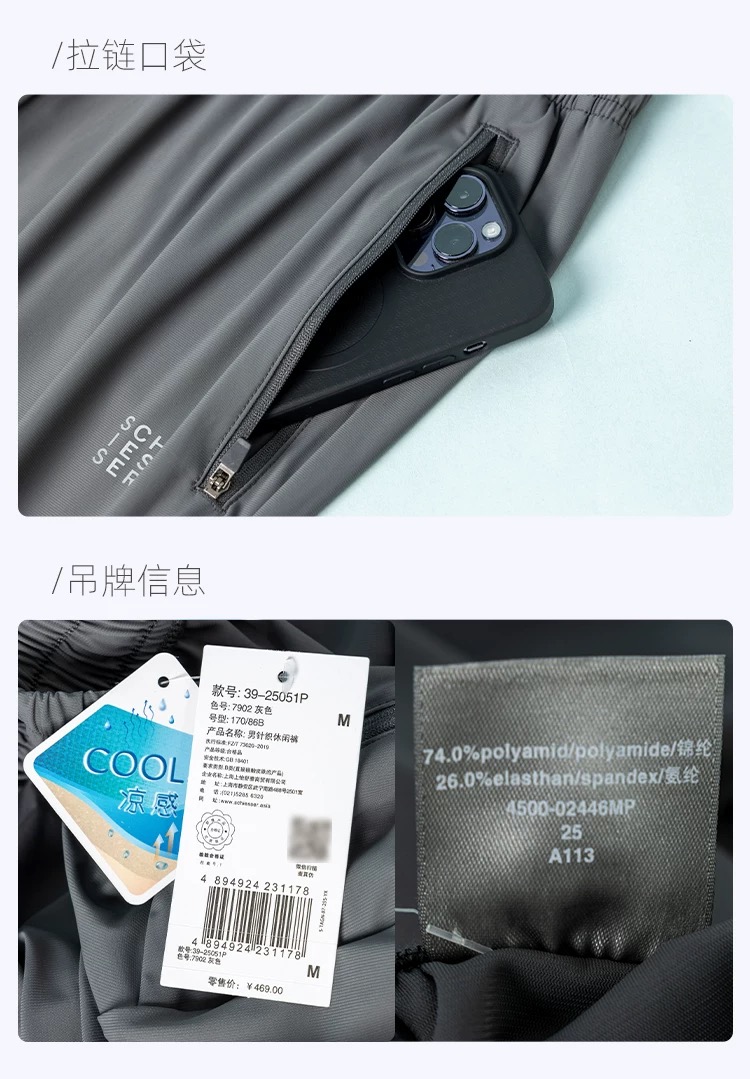【COOL凉感速干】SCHIESSSER德国舒雅男士凉感吸湿速干防晒收脚口长裤39/25051P