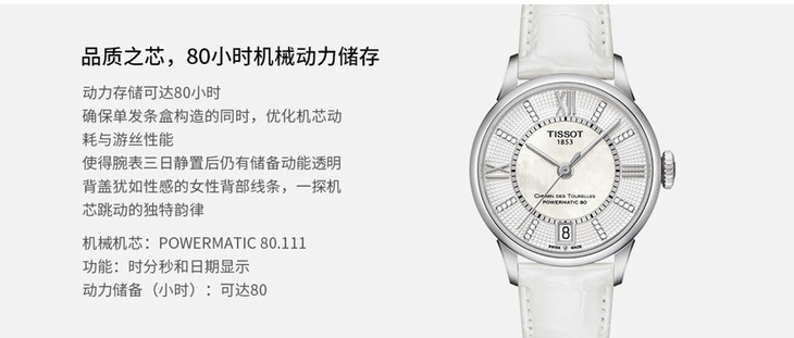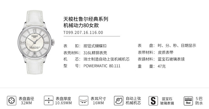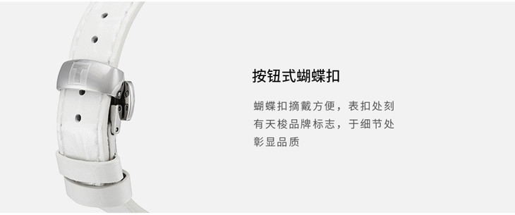 | 防水 | 50 m | 表带 | 白色真皮表带 按钮式蝴蝶扣 |