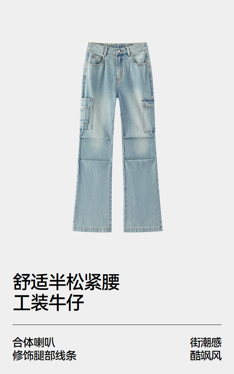 商场同款|森马牛仔裤女春喇叭长裤2026新款炸街酷飒风美式工装裤